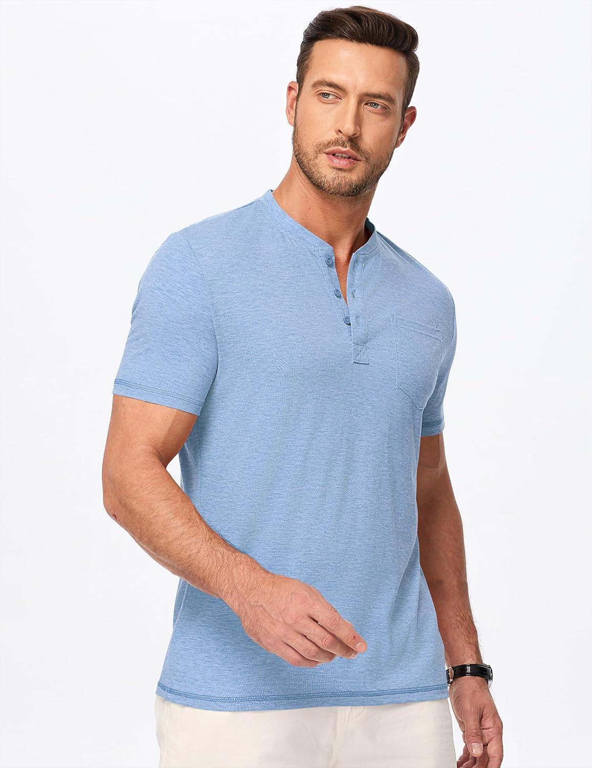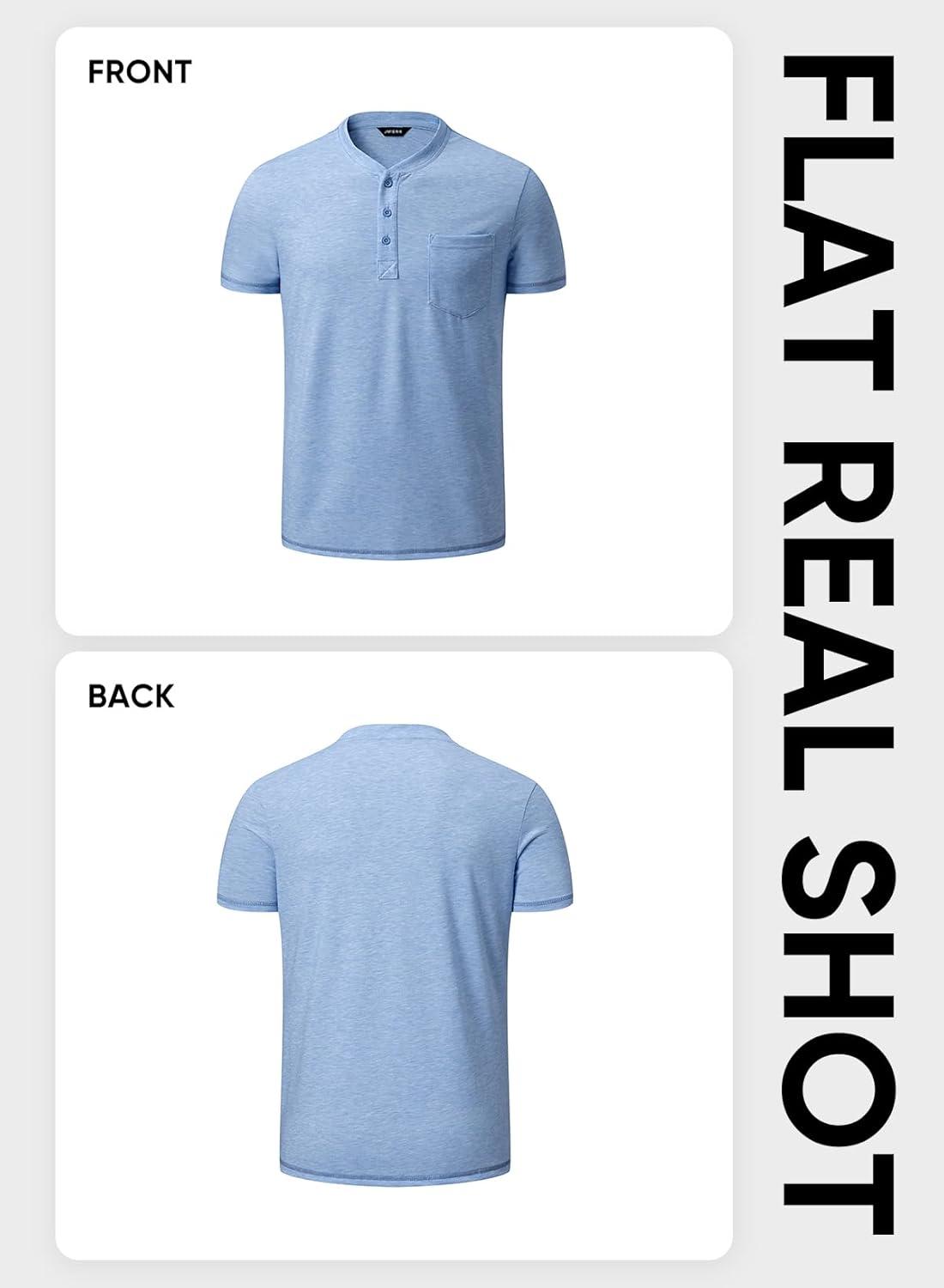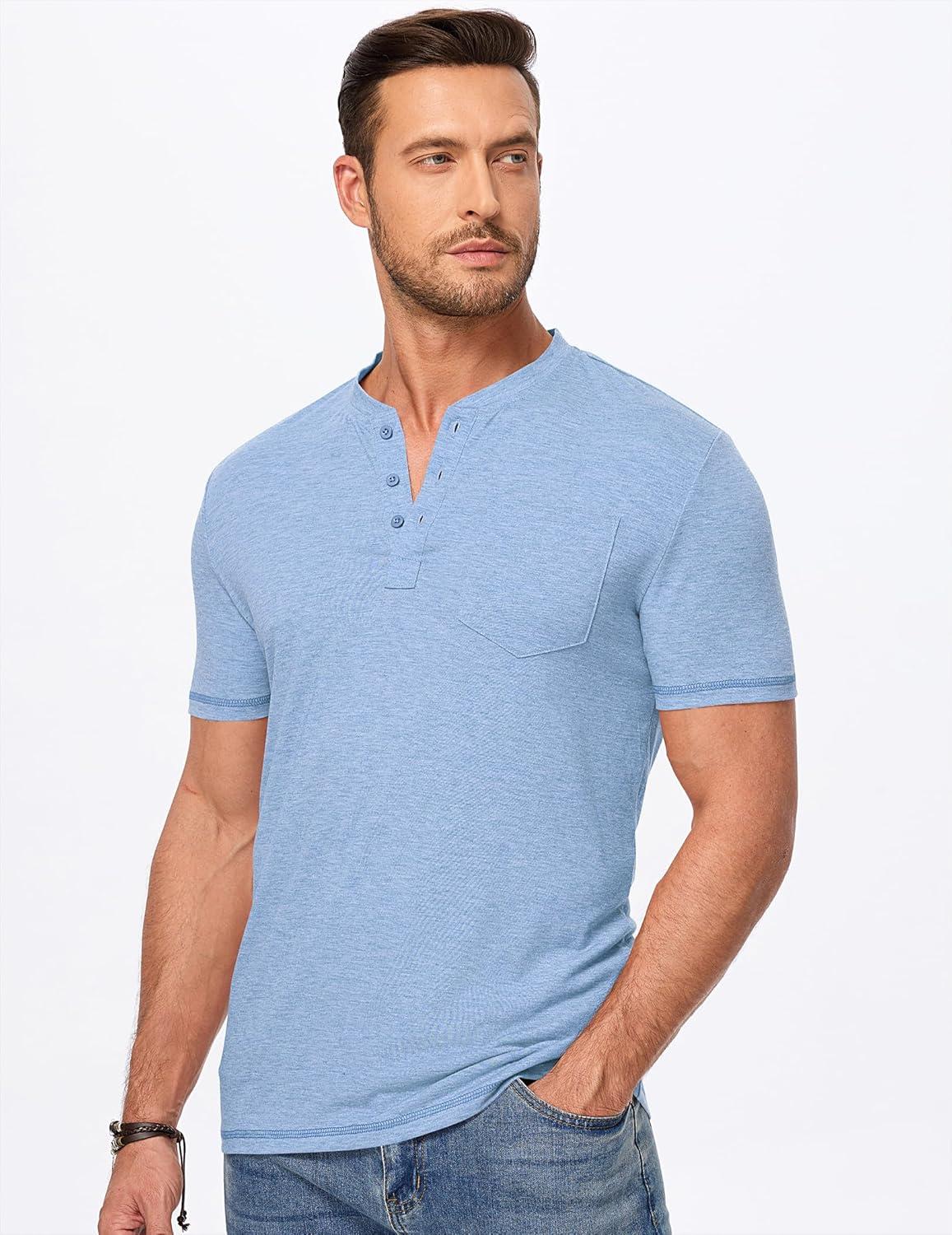 JMIERR Mens Henley Shirts Short Sleeve Casual Basic Button Up Tees Pocket T Shirts for Men(Beau Blue)