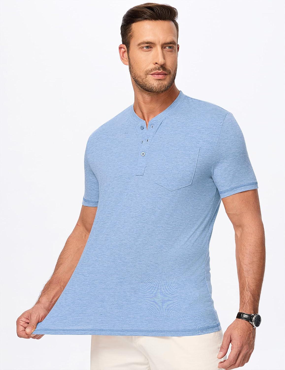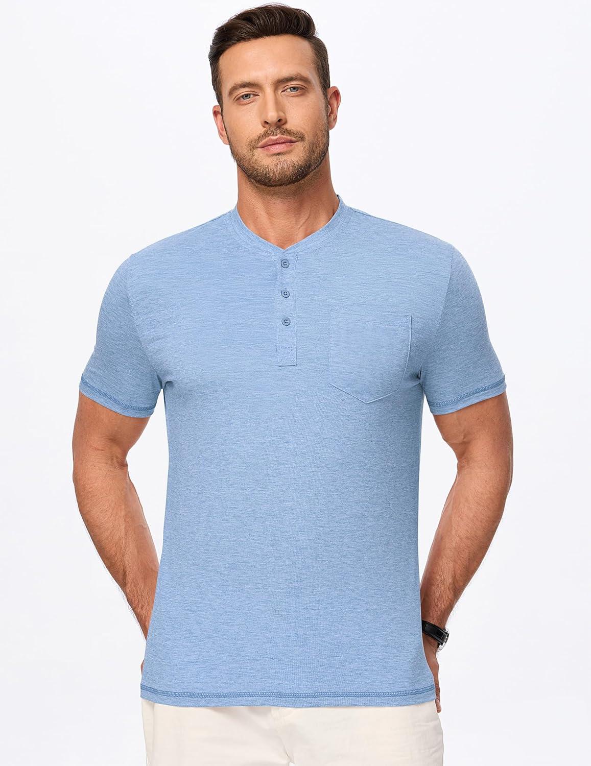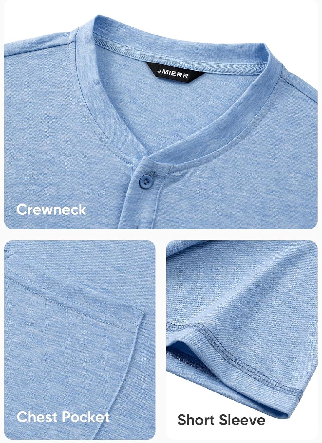 JMIERR Mens Henley Shirts Short Sleeve Casual Basic Button Up Tees Pocket T Shirts for Men(Beau Blue)