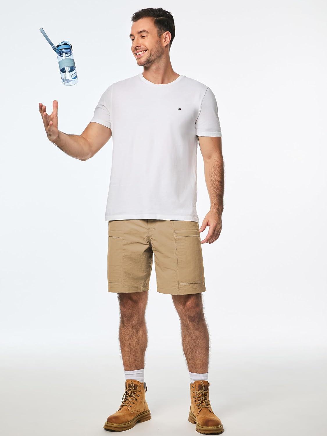 JMIERR Mens Hiking Cargo Shorts Casual Stretch Water Resistant Quick-Dry Lightweight Shorts Mens Golf Shorts with 5 Pockets(Pale Khaki)