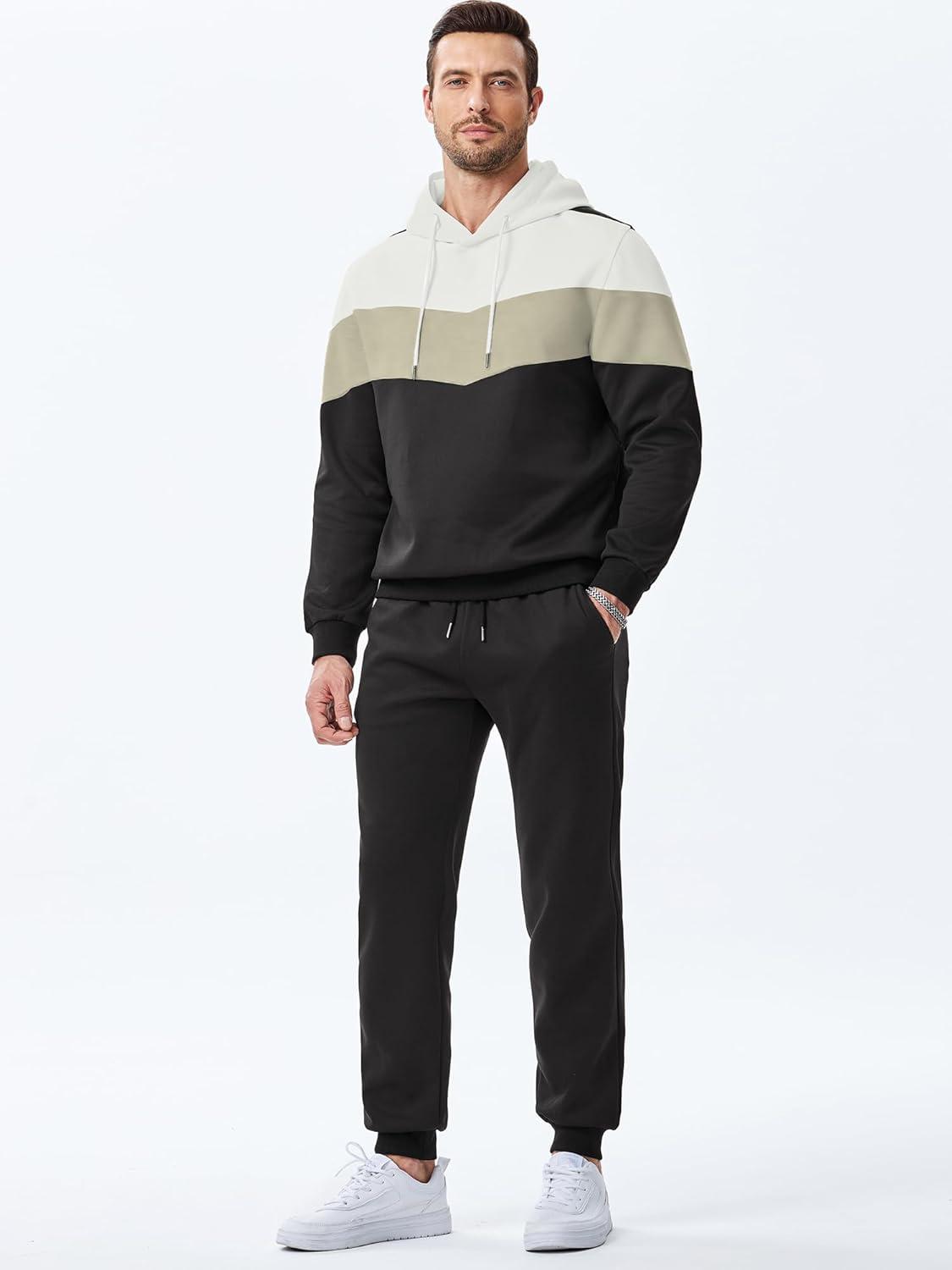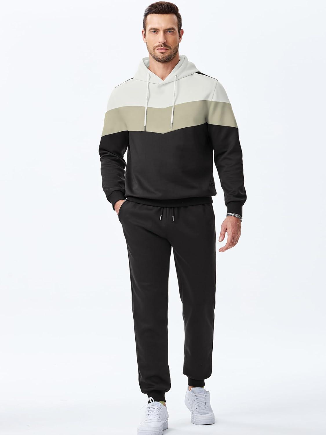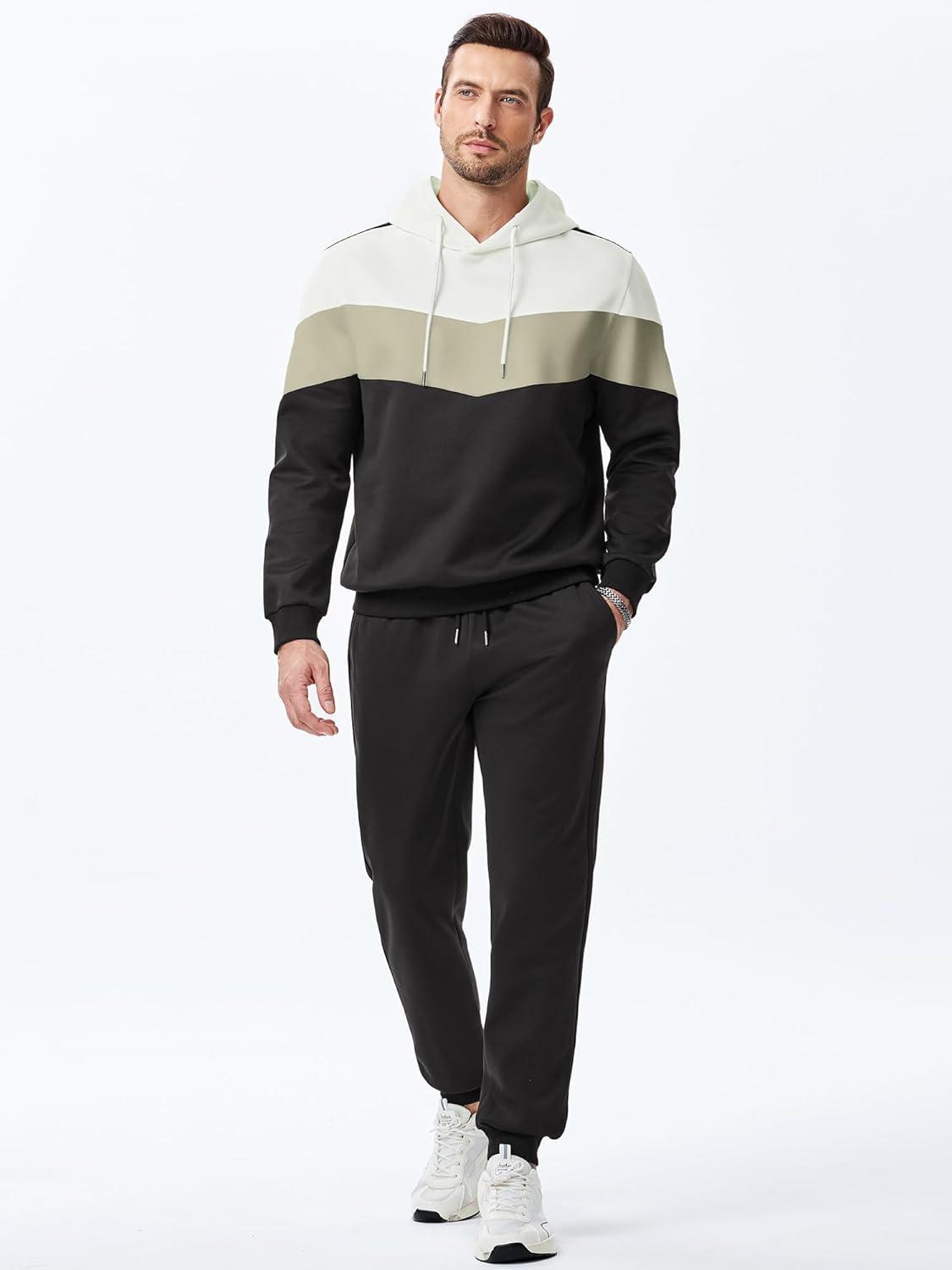 JMIERR Men’s Hoodie Tracksuit 2 Pieces Set Novelty Color Block Pullover Fleece Hoodies Long Sleeve Casual Sweatshirt(Black)