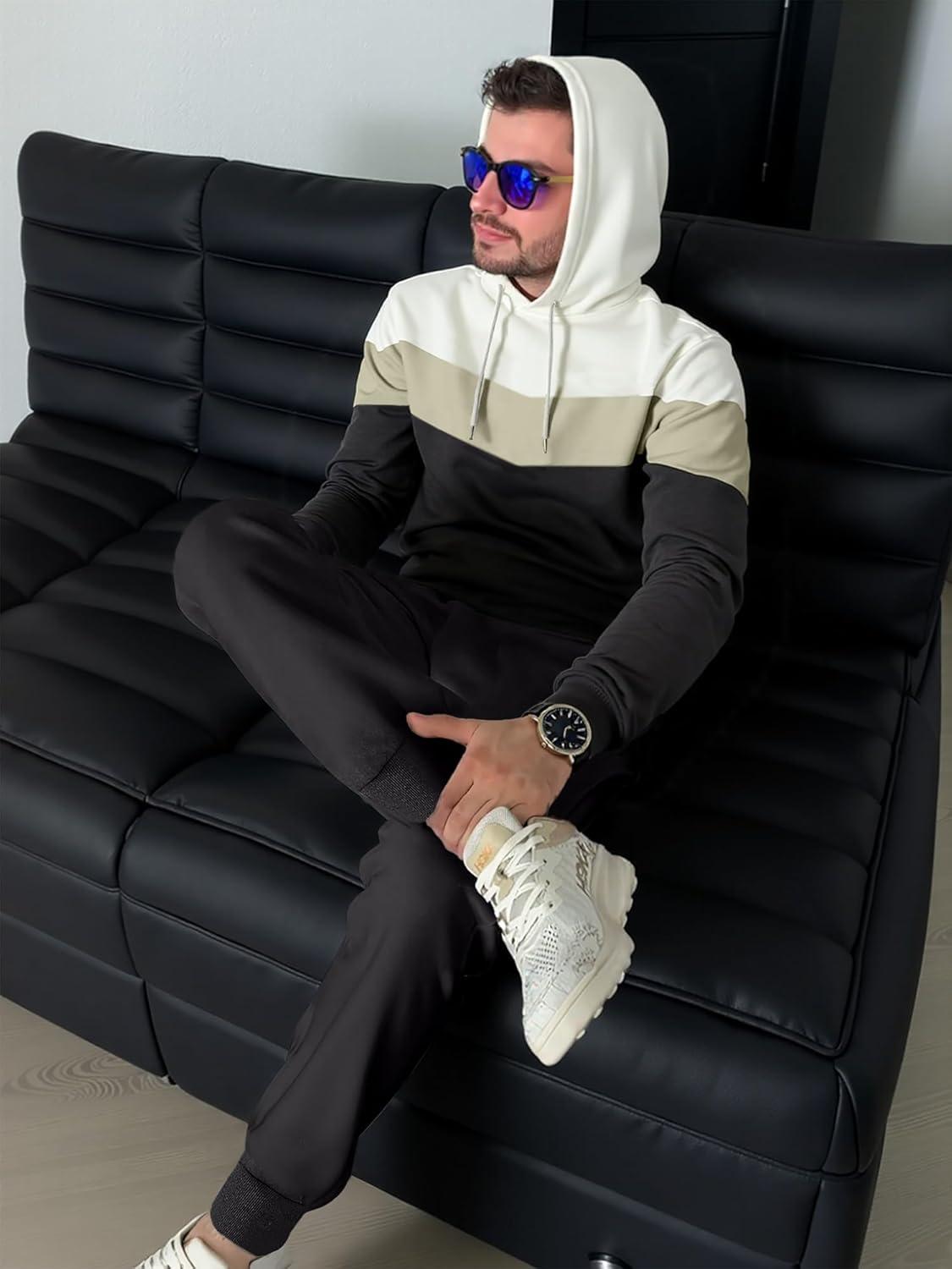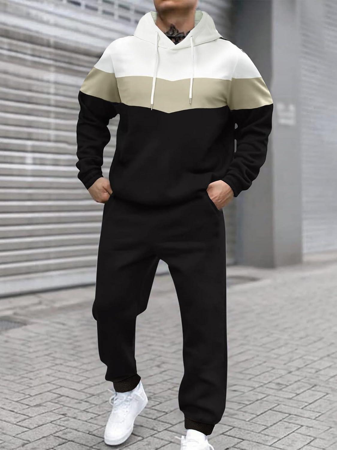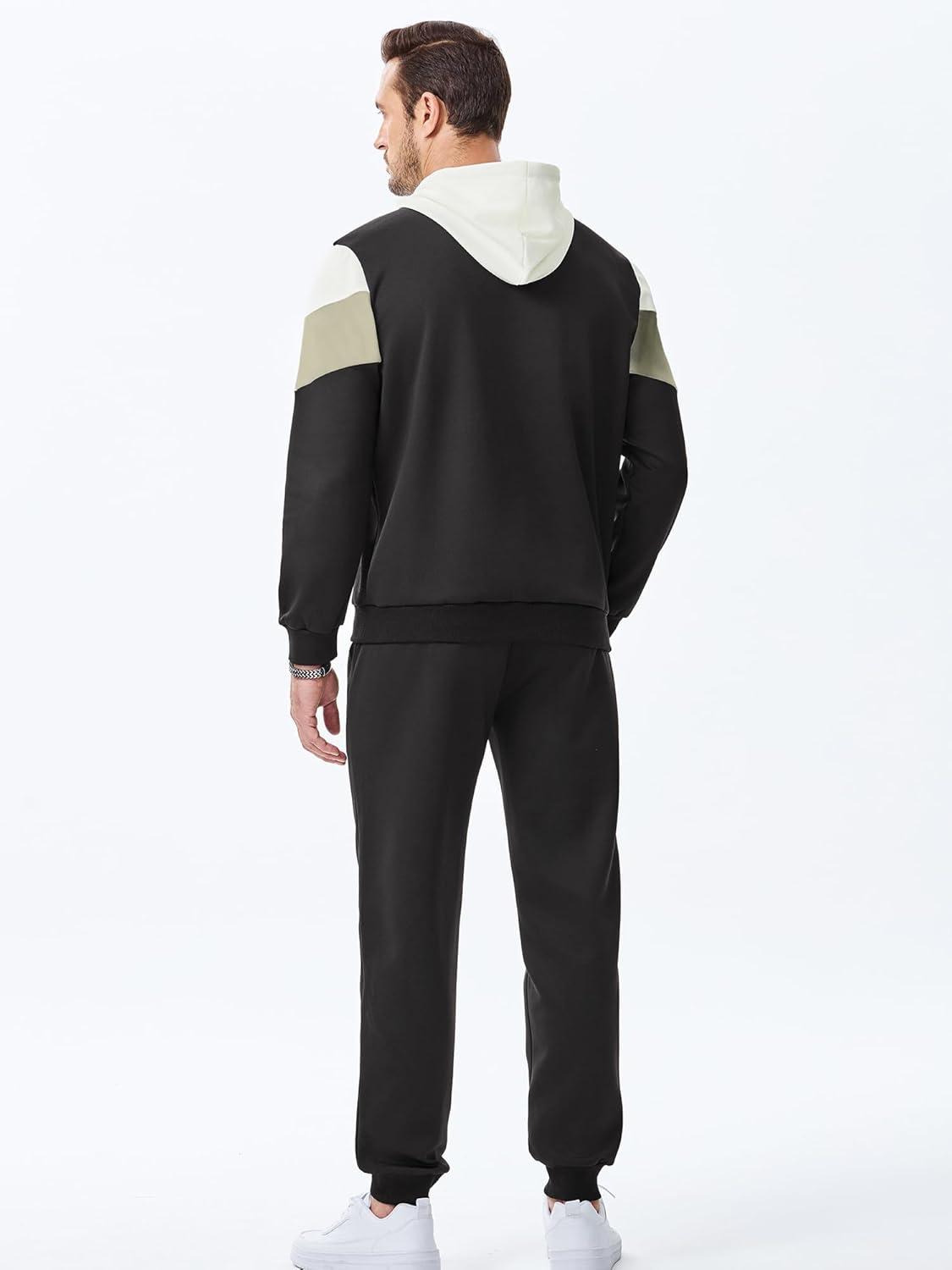JMIERR Men’s Hoodie Tracksuit 2 Pieces Set Novelty Color Block Pullover Fleece Hoodies Long Sleeve Casual Sweatshirt(Black)