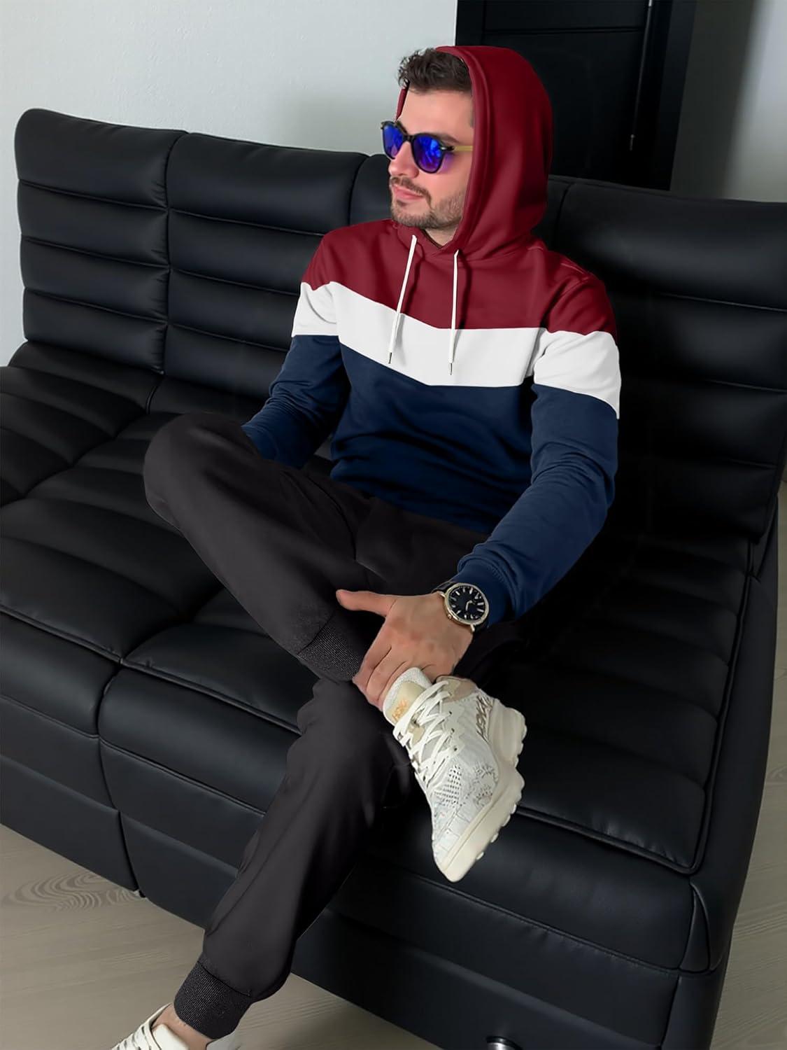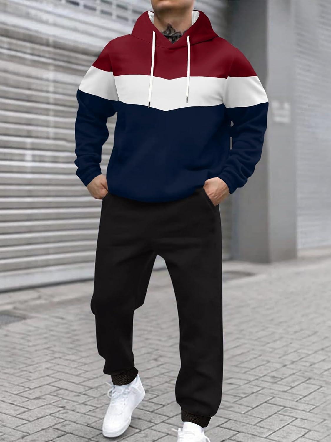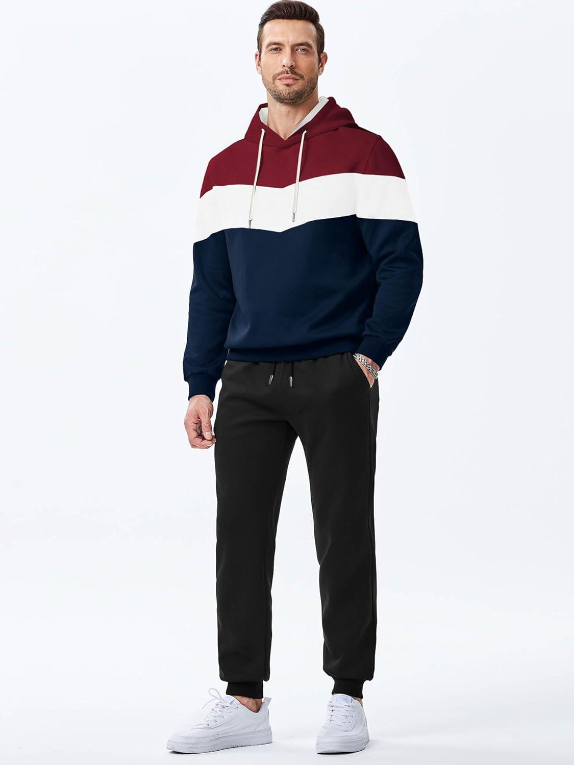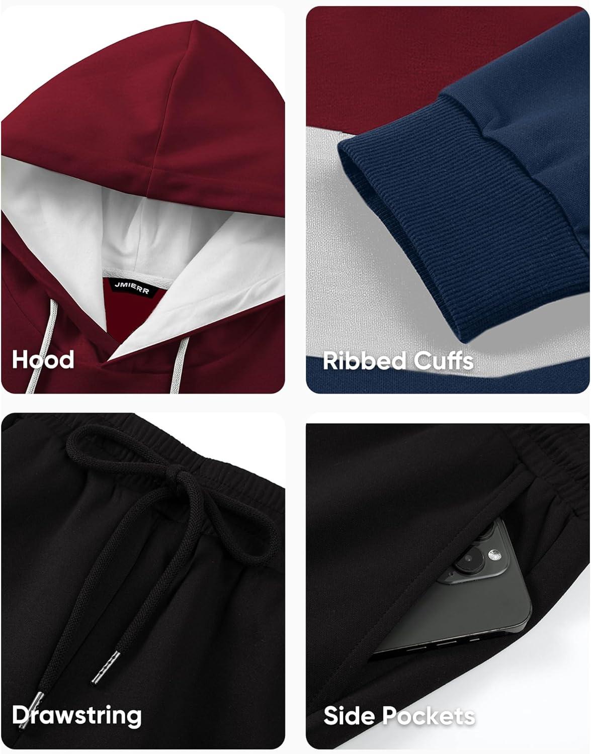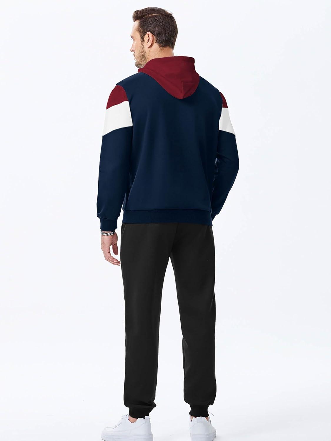 JMIERR Men’s Hoodie Tracksuit 2 Pieces Set Novelty Color Block Pullover Fleece Hoodies Long Sleeve Casual Sweatshirt(Navy Blue)