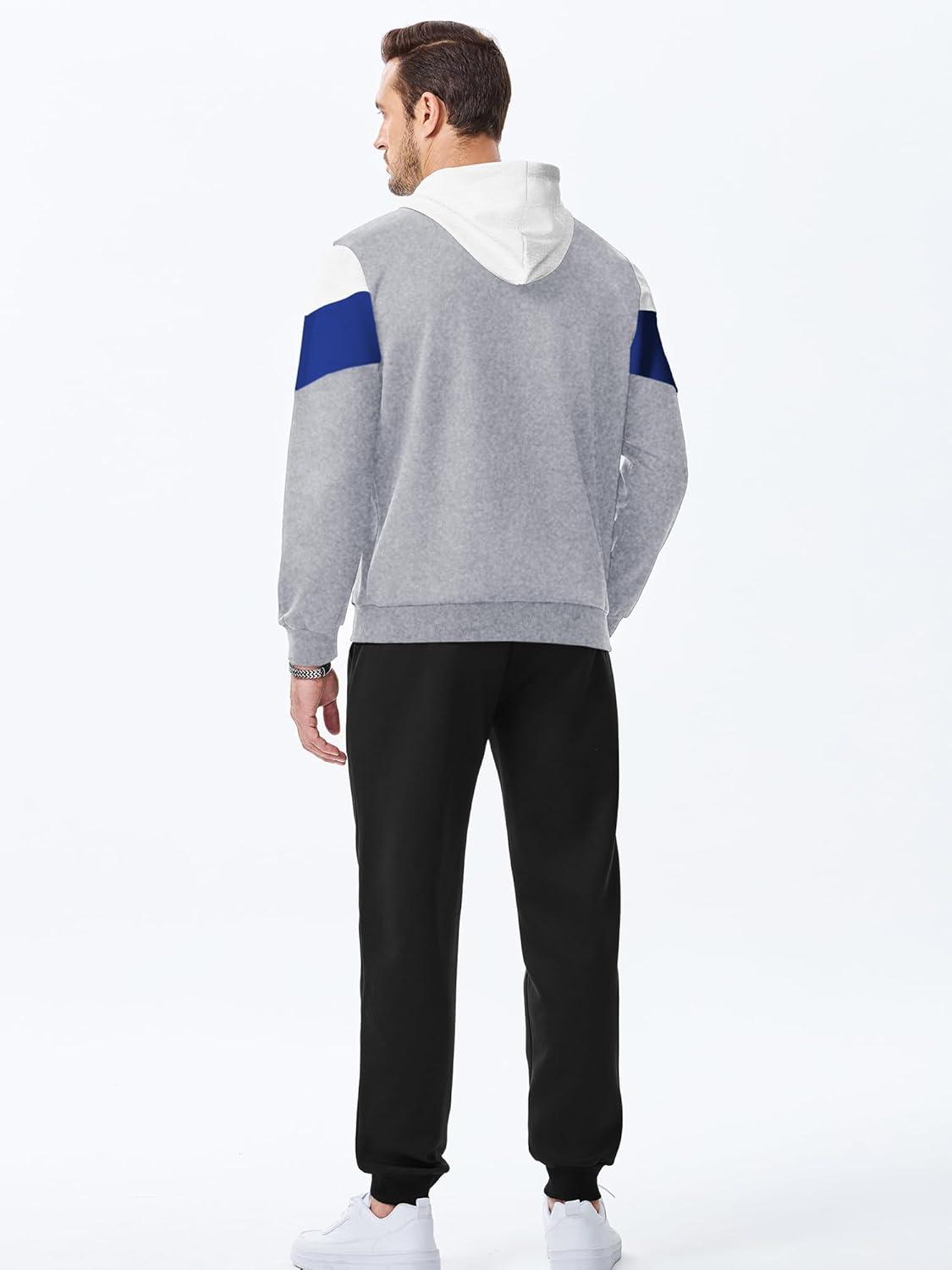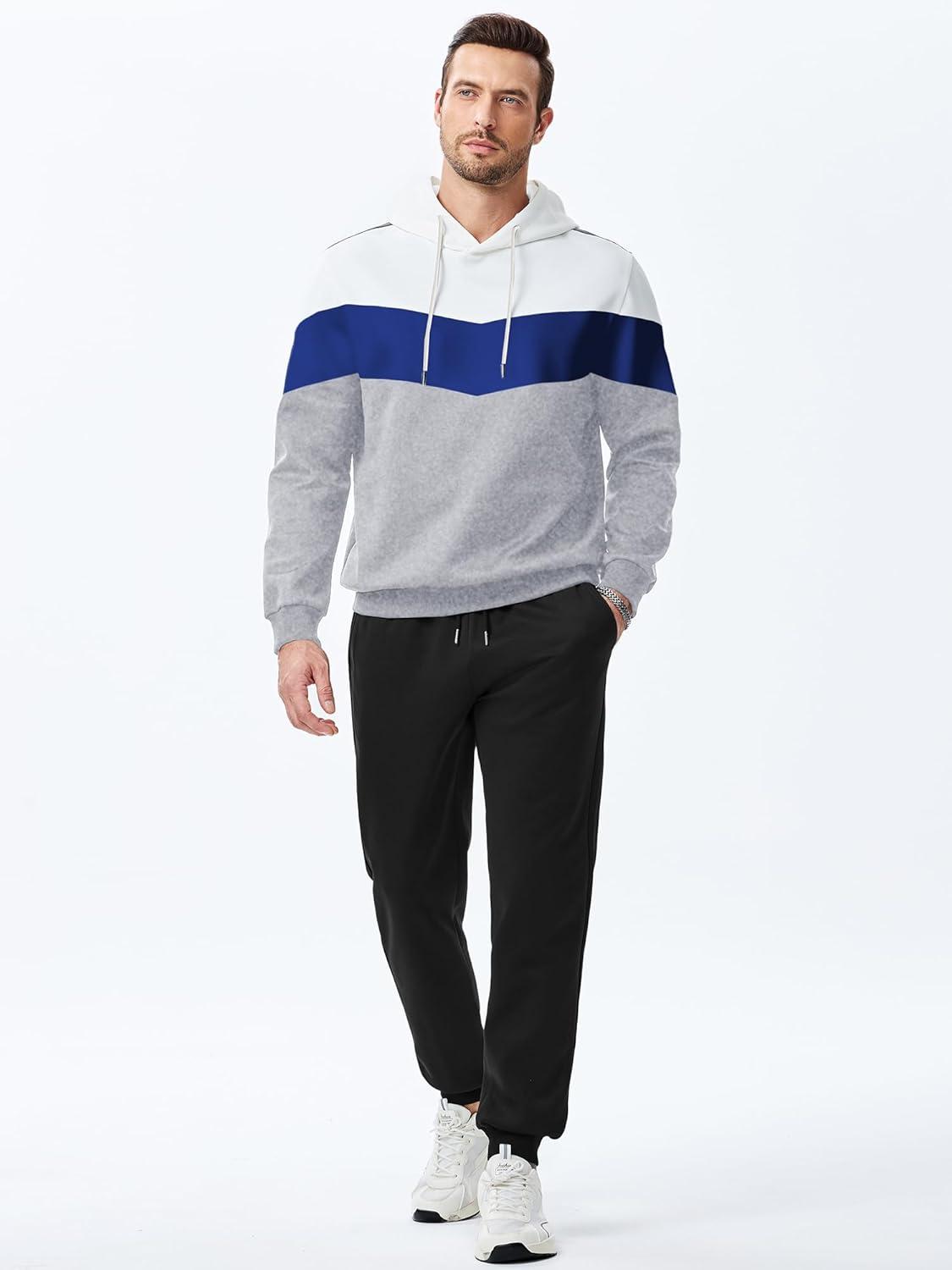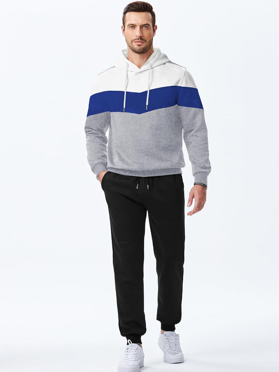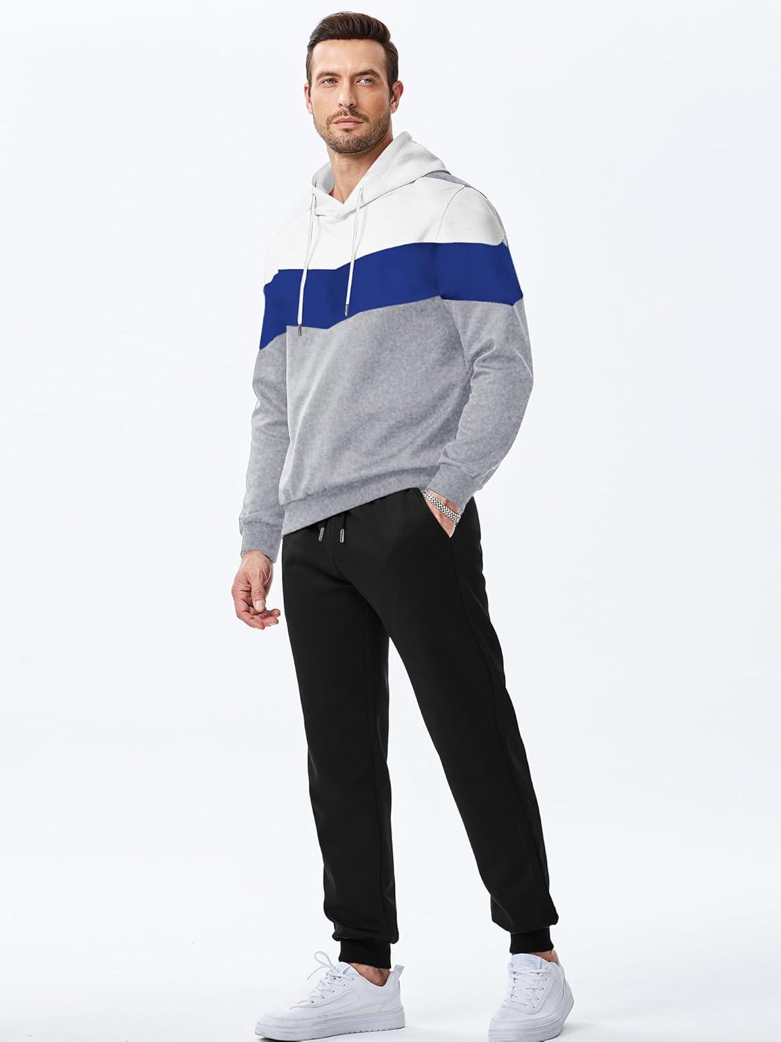 JMIERR Men’s Hoodie Tracksuit 2 Pieces Set Novelty Color Block Pullover Fleece Hoodies Long Sleeve Casual Sweatshirt(Powder Blue)