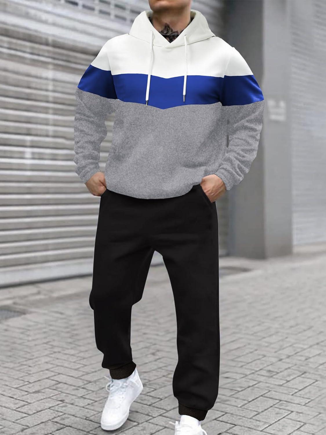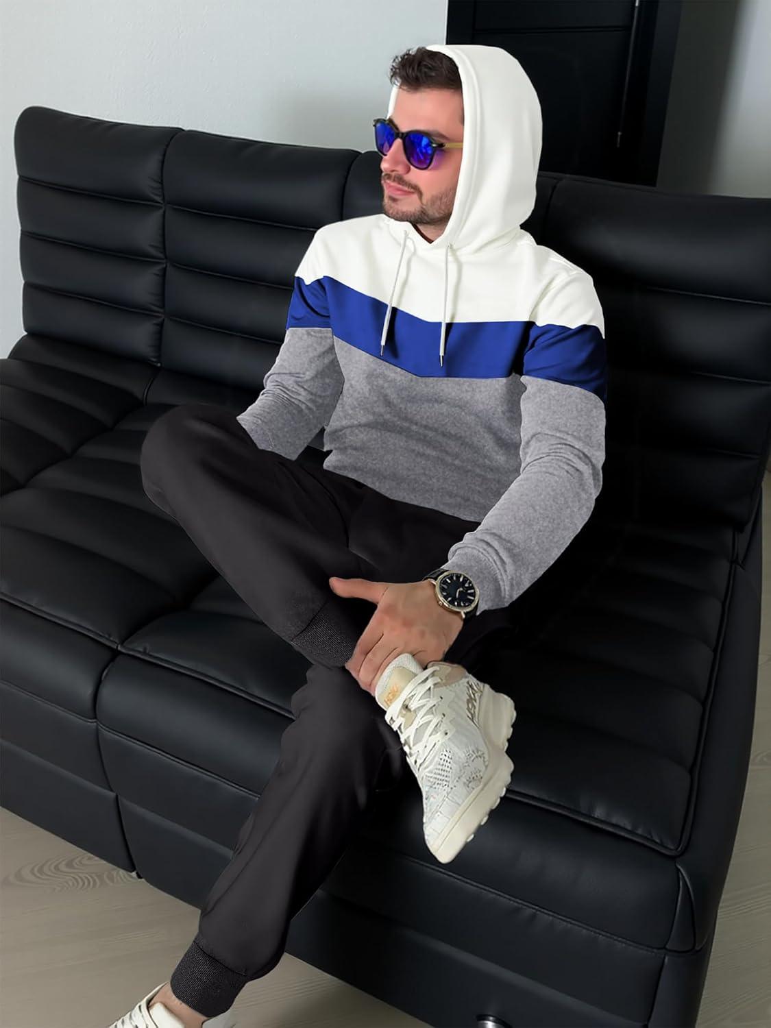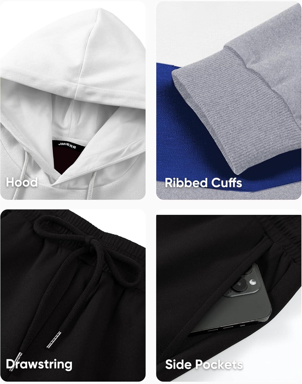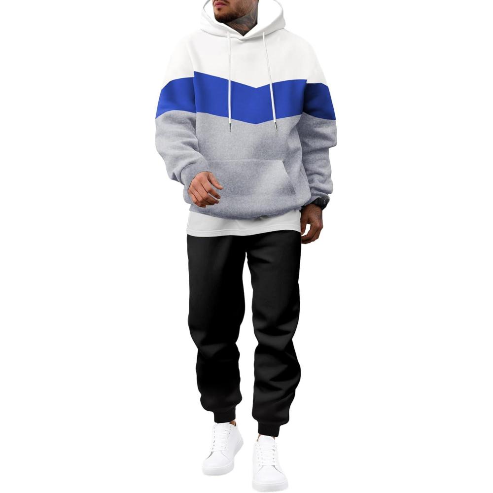 JMIERR Men’s Hoodie Tracksuit 2 Pieces Set Novelty Color Block Pullover Fleece Hoodies Long Sleeve Casual Sweatshirt(Powder Blue)