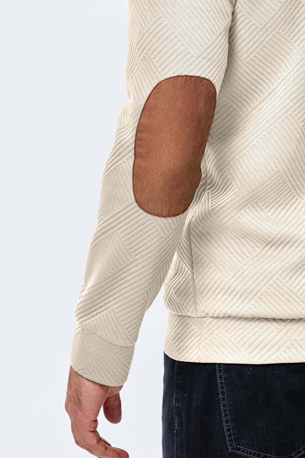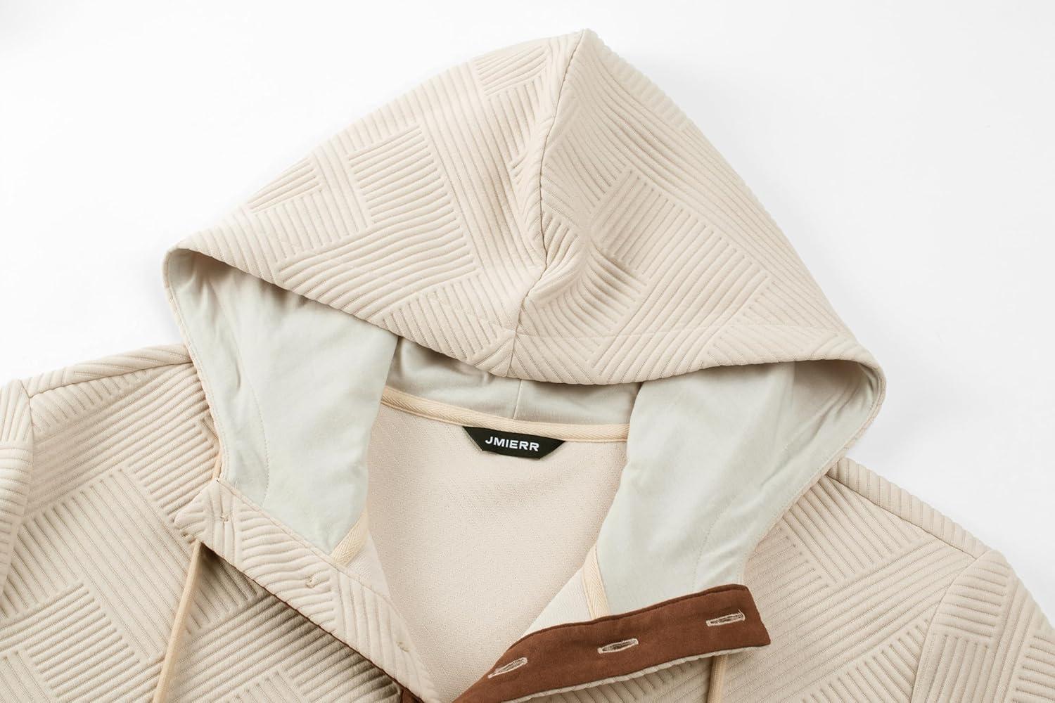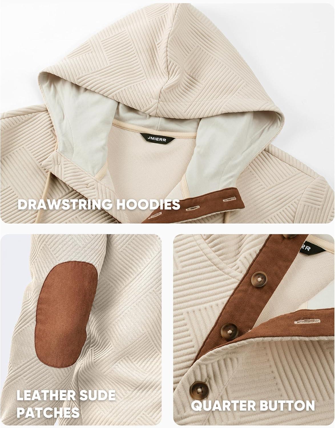 JMIERR Mens Hoodies Fall Casual Cotton Textured Long Sleeve Half Button Pullover Hooded Sweatshirts(Beige)