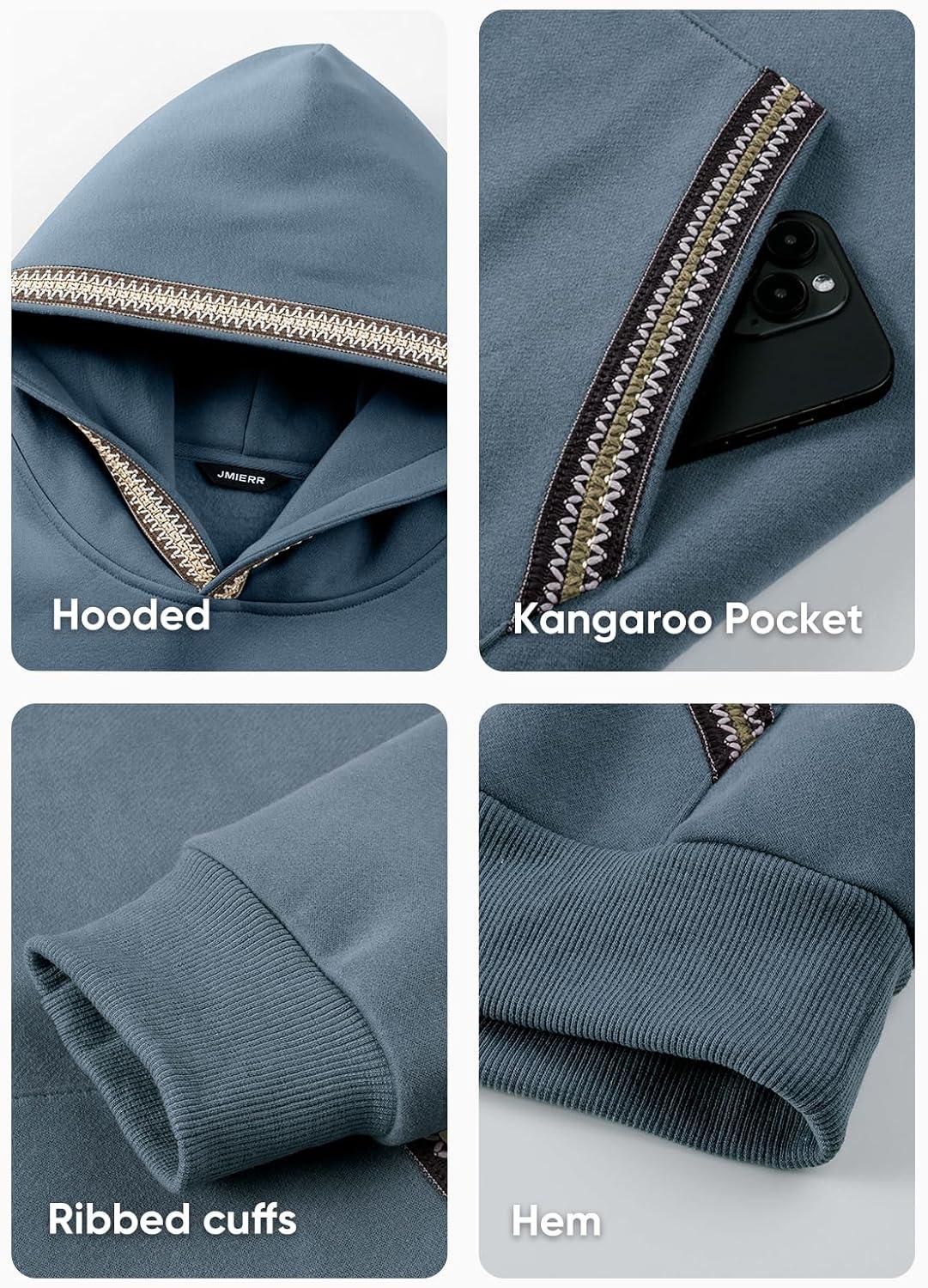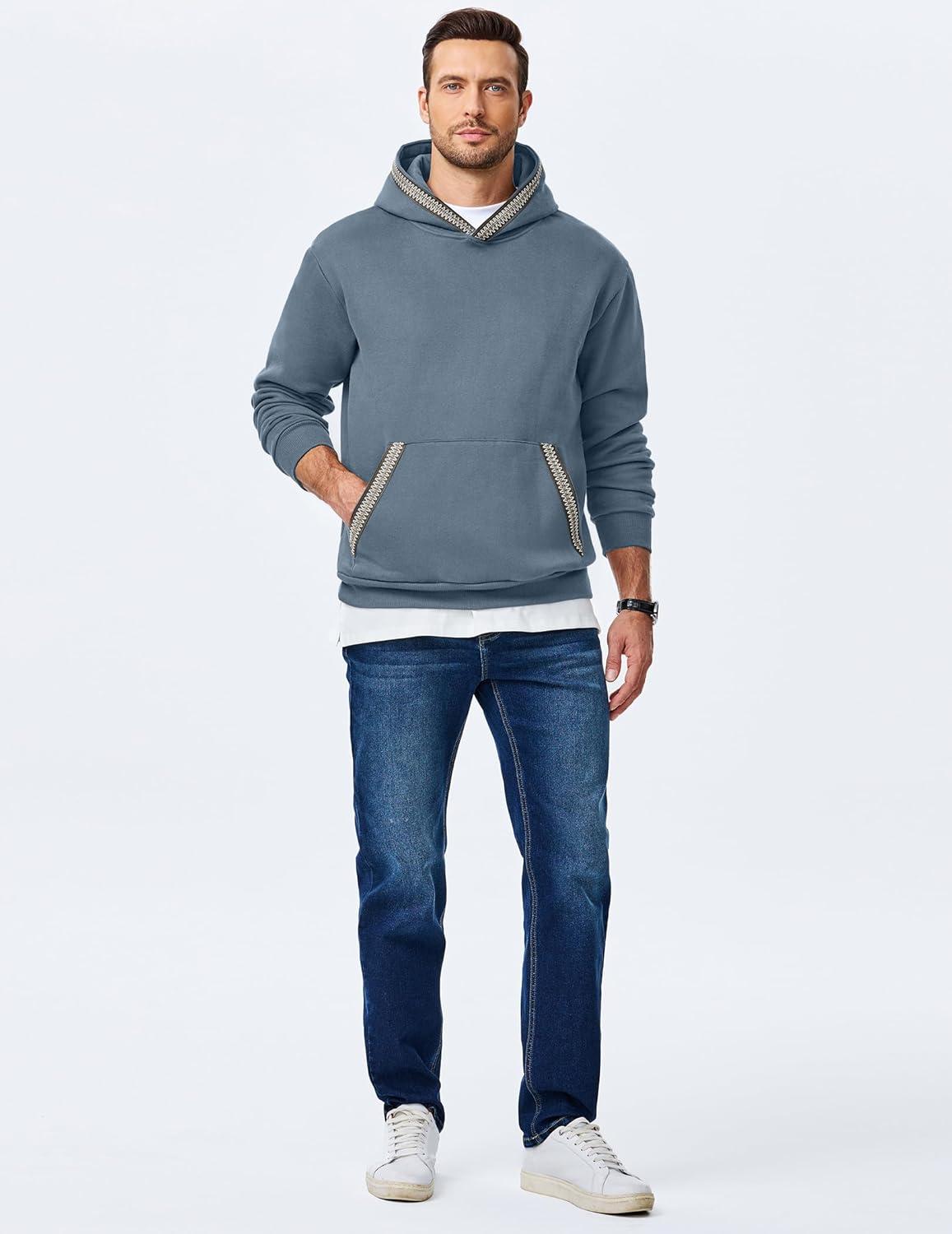 JMIERR Mens Hoodies Pullover Casual Cotton Fleece Hooded Sweatshirts Long Sleeve Shirts(Blue)