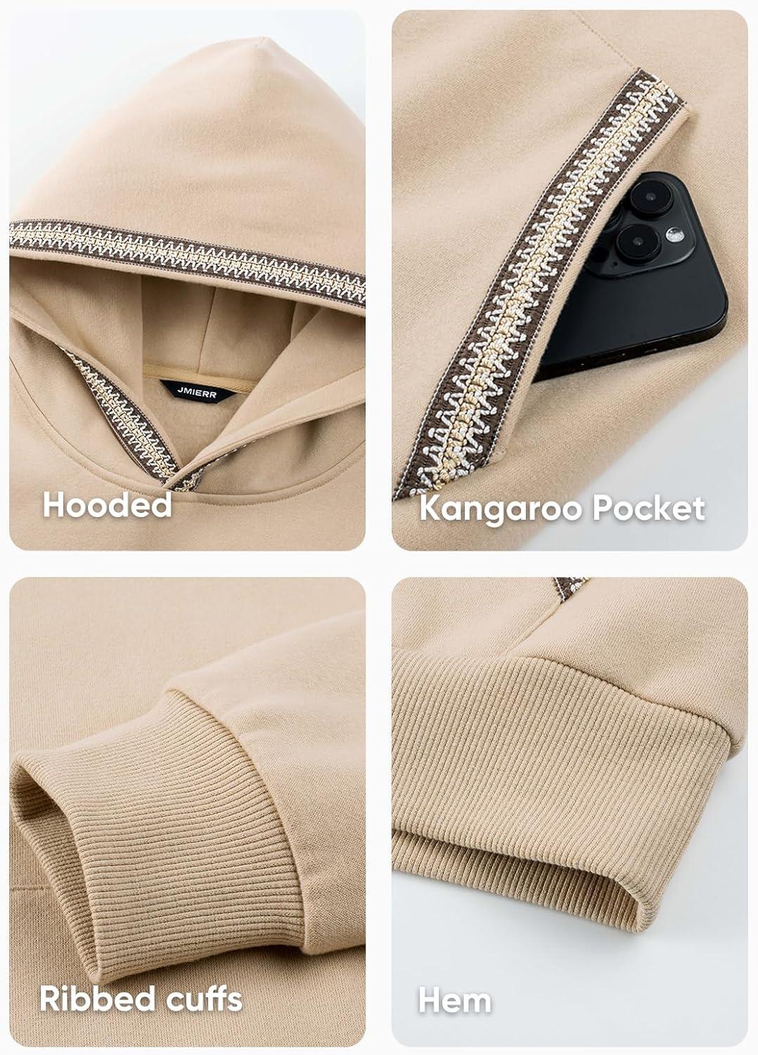 JMIERR Mens Hoodies Pullover Casual Cotton Fleece Hooded Sweatshirts Long Sleeve Shirts(Khaki)