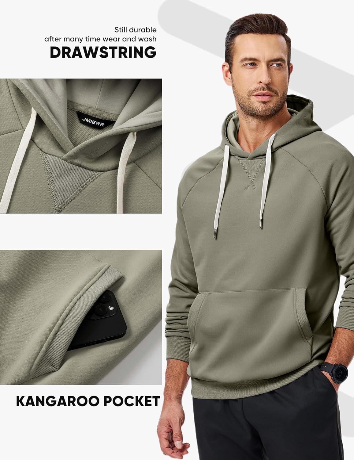 JMIERR Mens Hoodies Sweatshirt Casual Ribbed V-stitch Neckline Solid Drawstring Pullover Sweatshirts 2025 Fall Fasion(Sage Green)