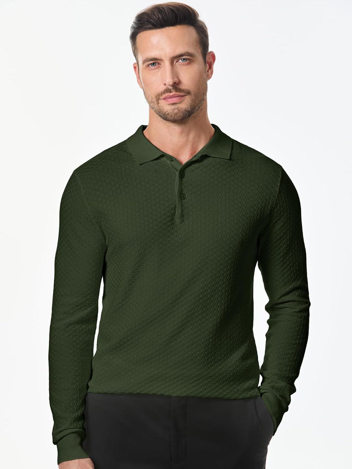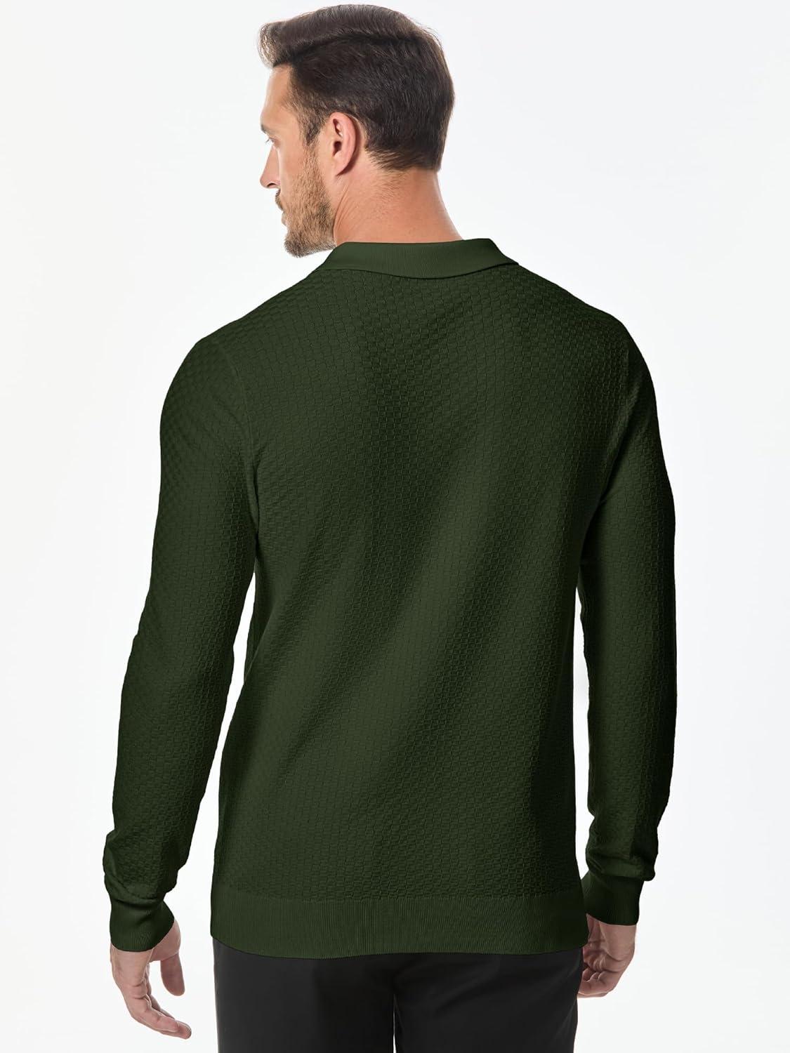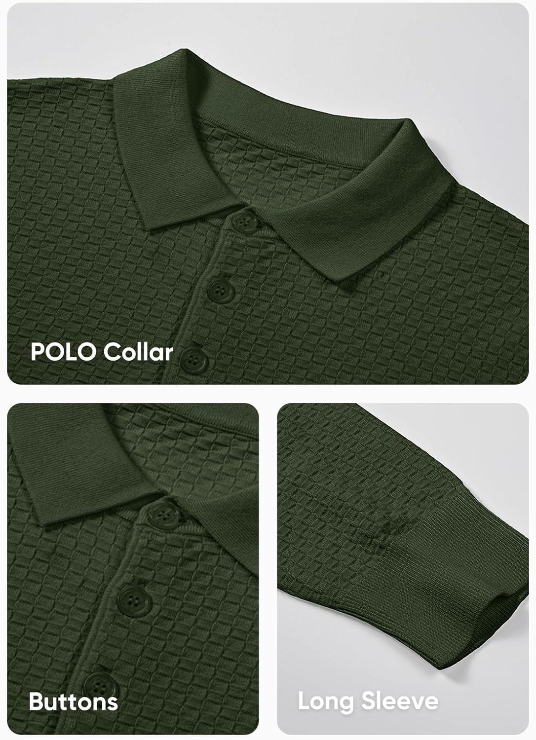 JMIERR Mens Knit Polo Shirts Casual Button Down Long Sleeve Dress Shirts Winter Lightweight Pullover Sweater(Green)