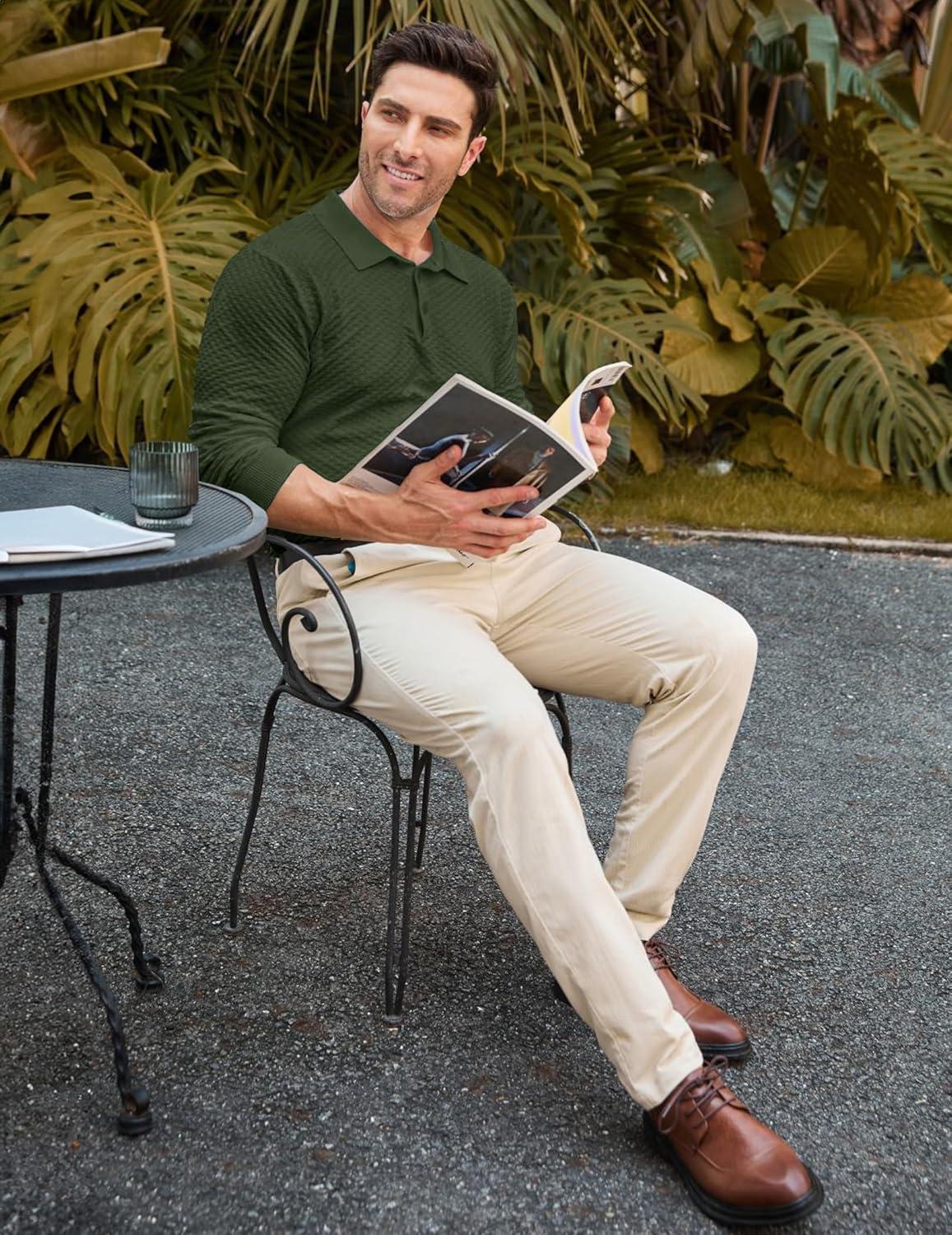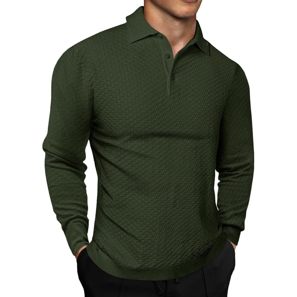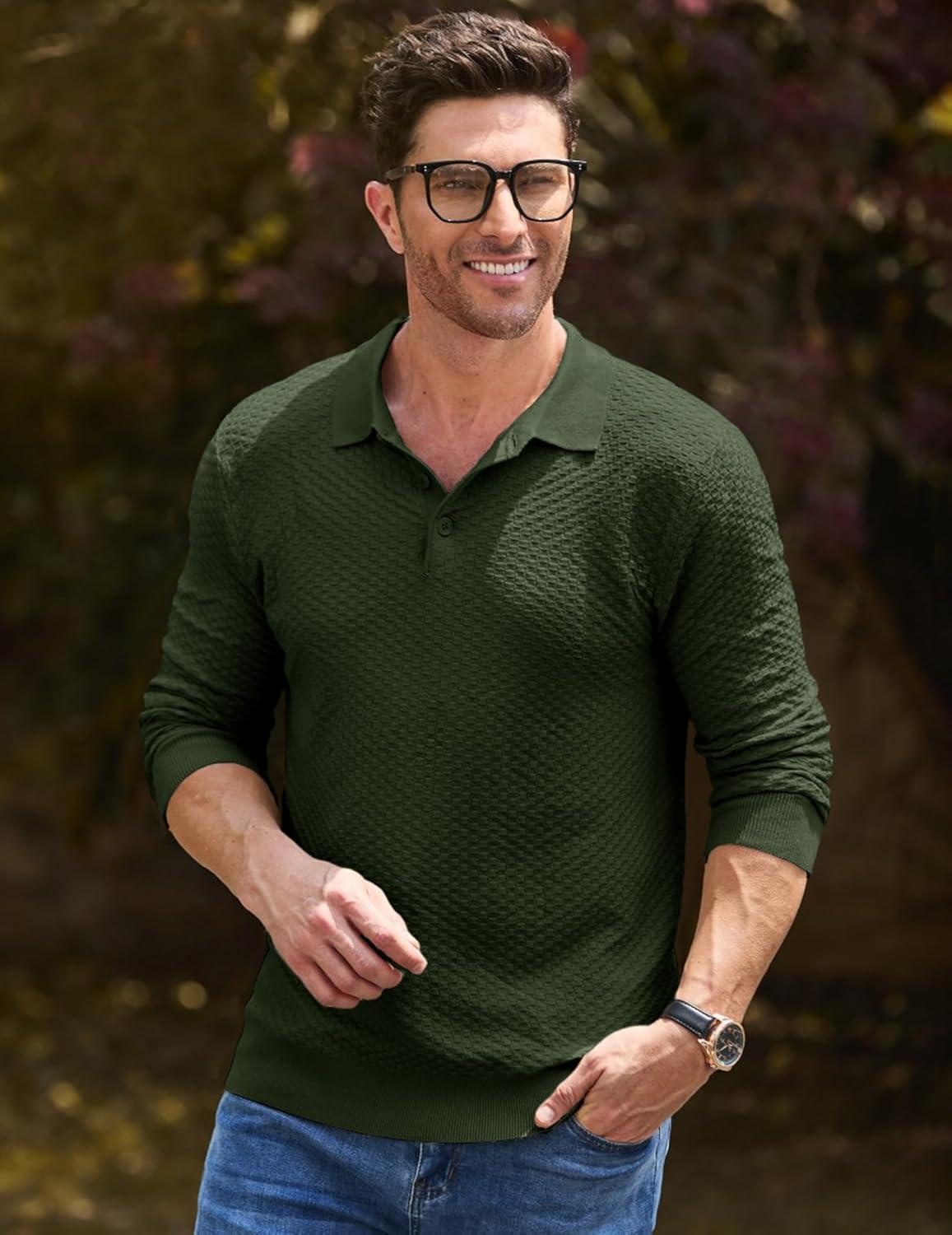 JMIERR Mens Knit Polo Shirts Casual Button Down Long Sleeve Dress Shirts Winter Lightweight Pullover Sweater(Green)