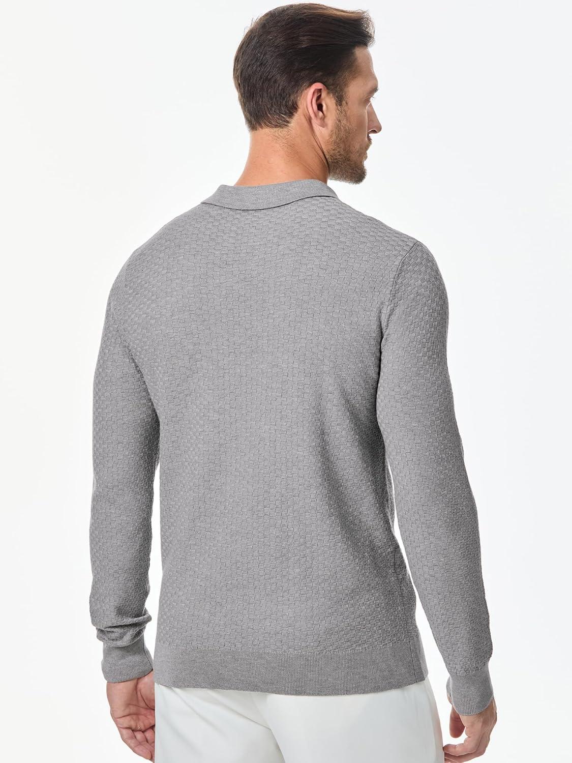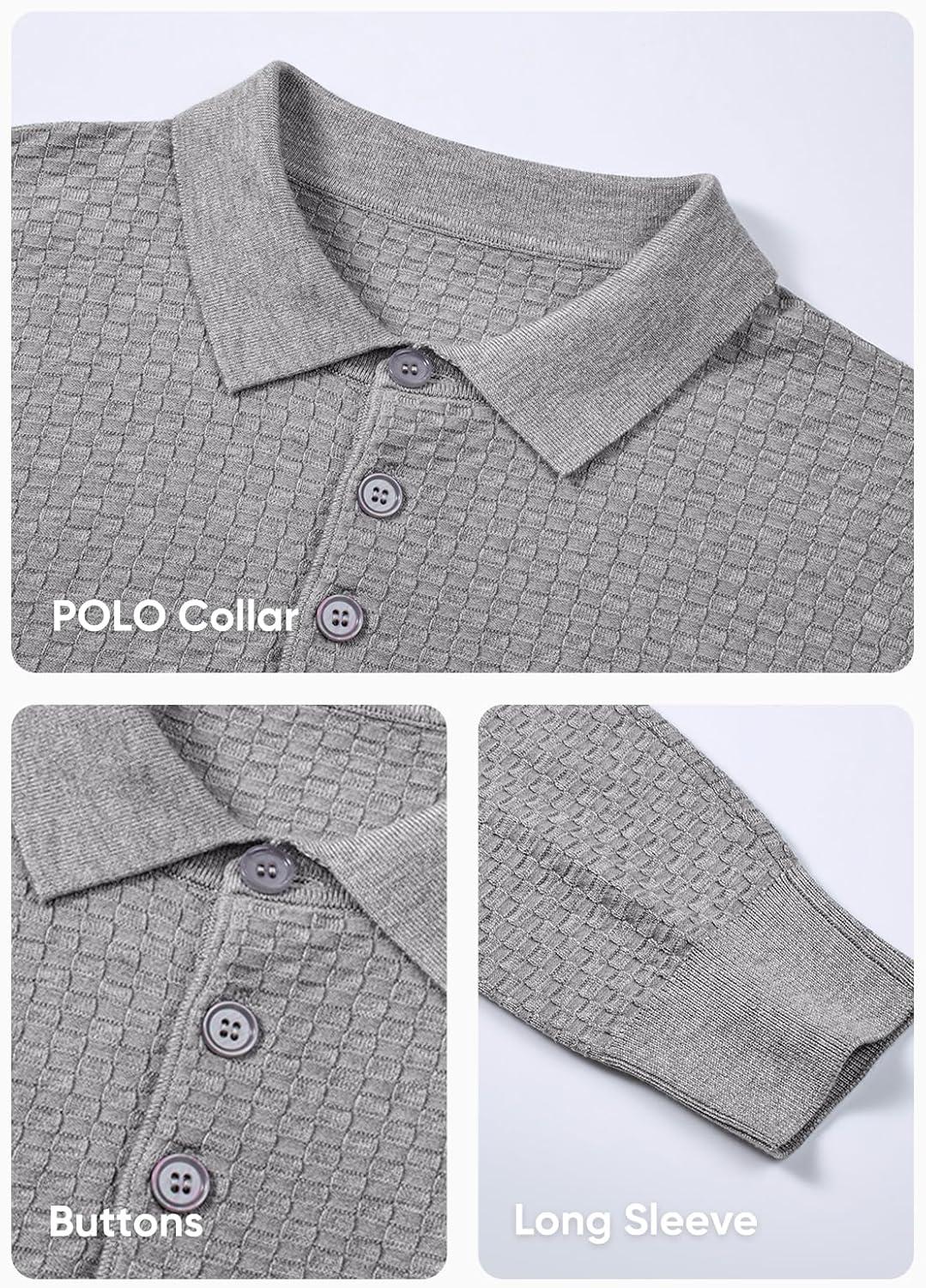 JMIERR Mens Knit Polo Shirts Casual Button Down Long Sleeve Dress Shirts Winter Lightweight Pullover Sweater(Grey)