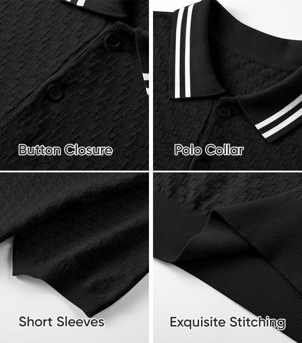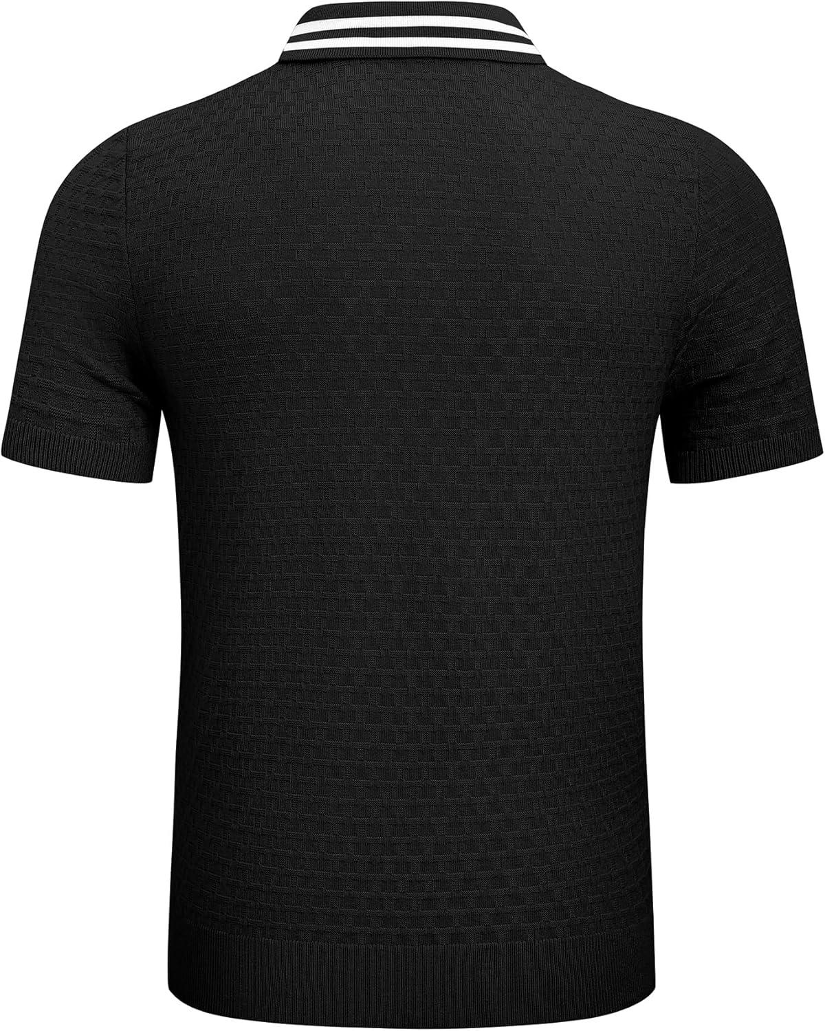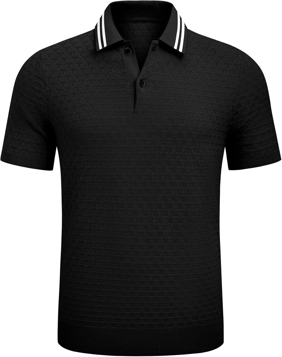 JMIERR Men’s Knit Polo Shirts Casual Short Sleeve Button Lightweight Shirt(Black)