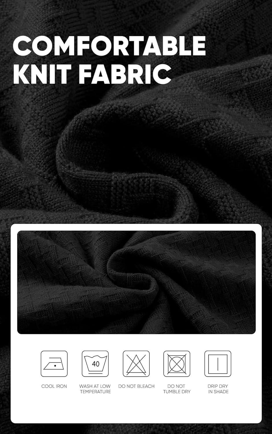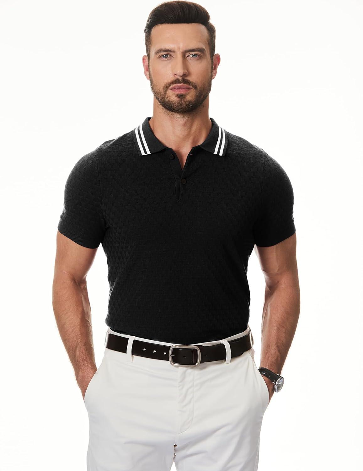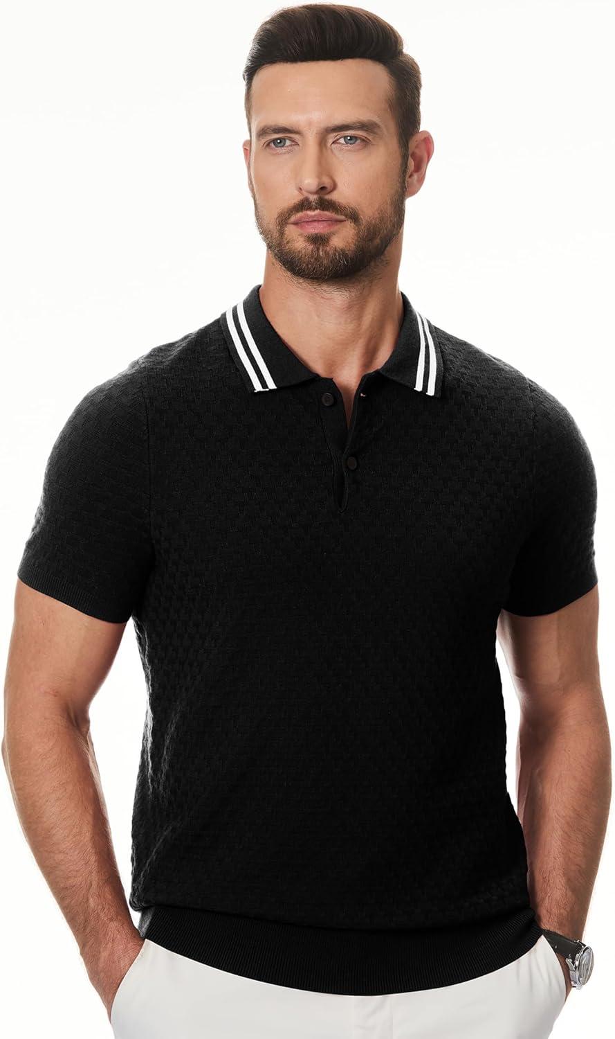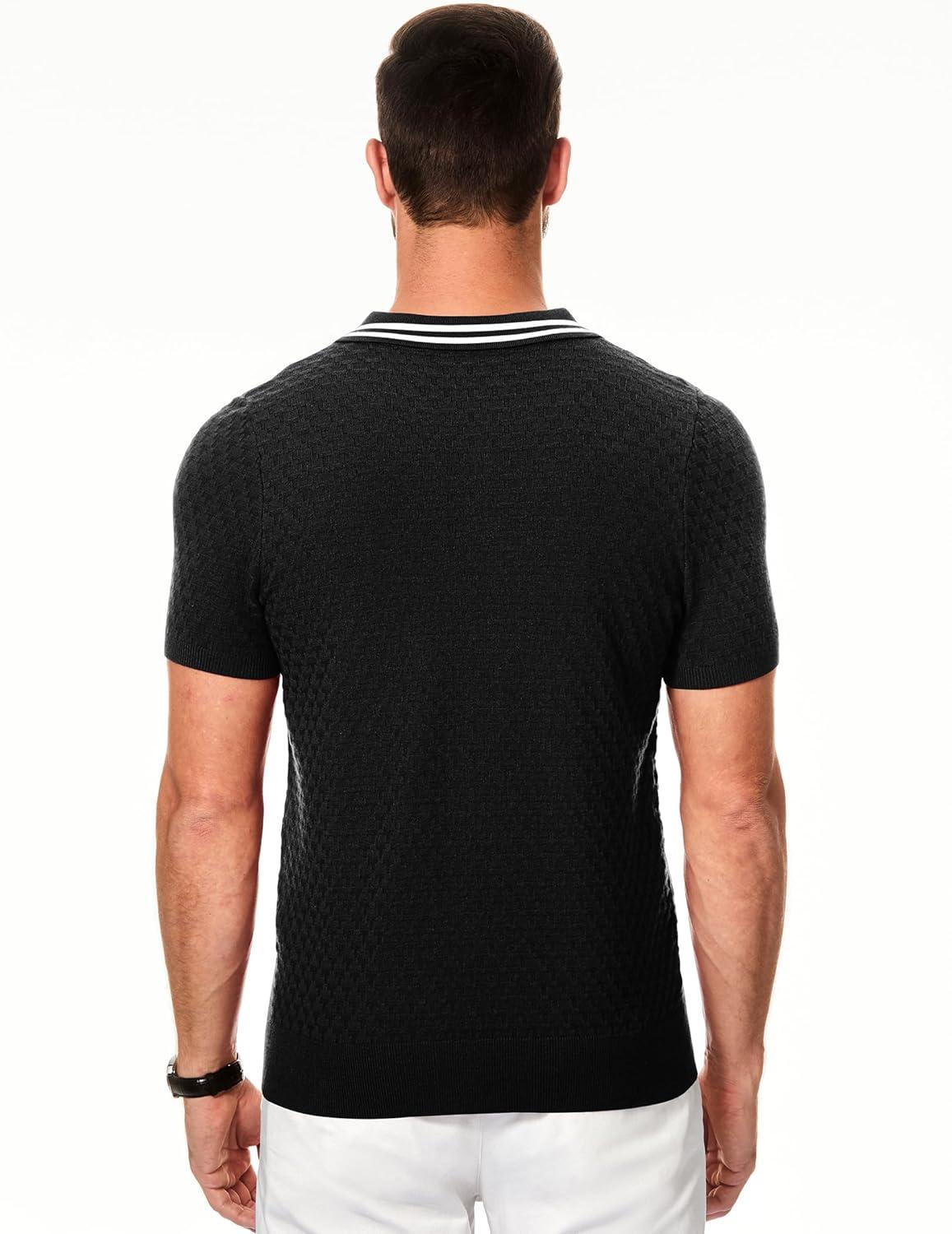 JMIERR Men’s Knit Polo Shirts Casual Short Sleeve Button Lightweight Shirt(Black)