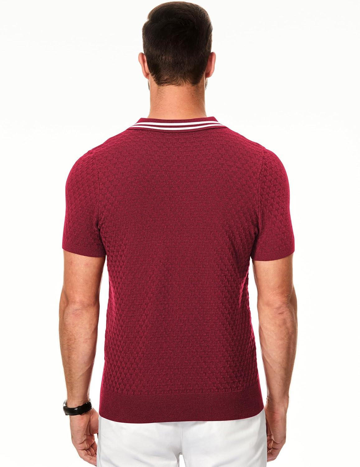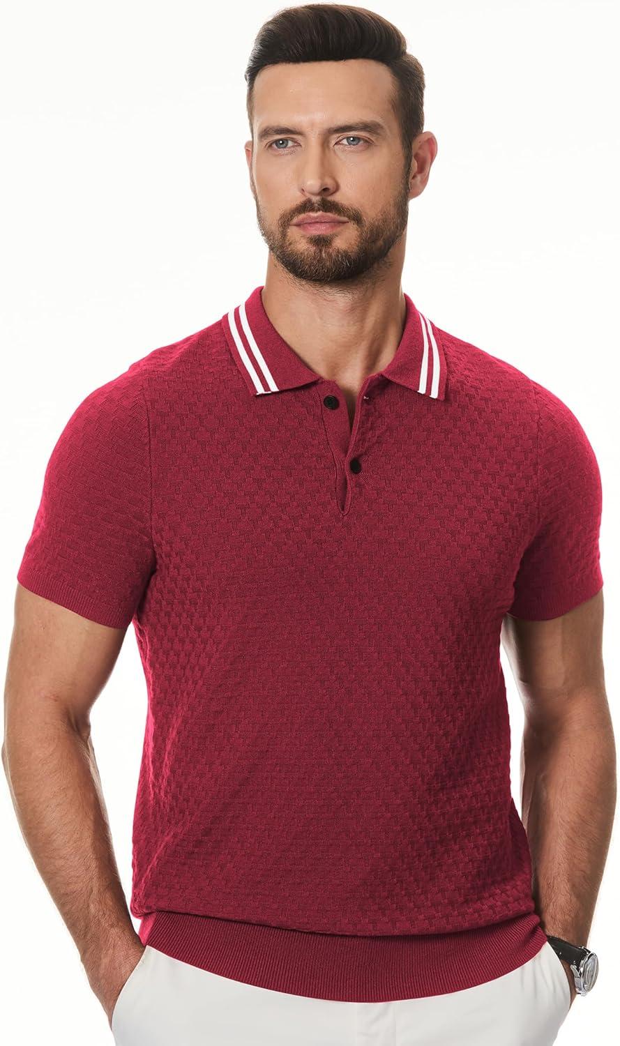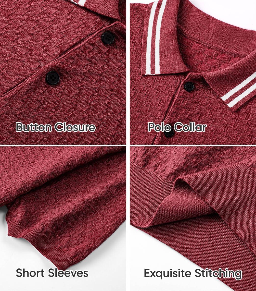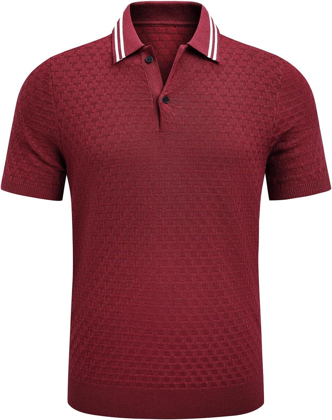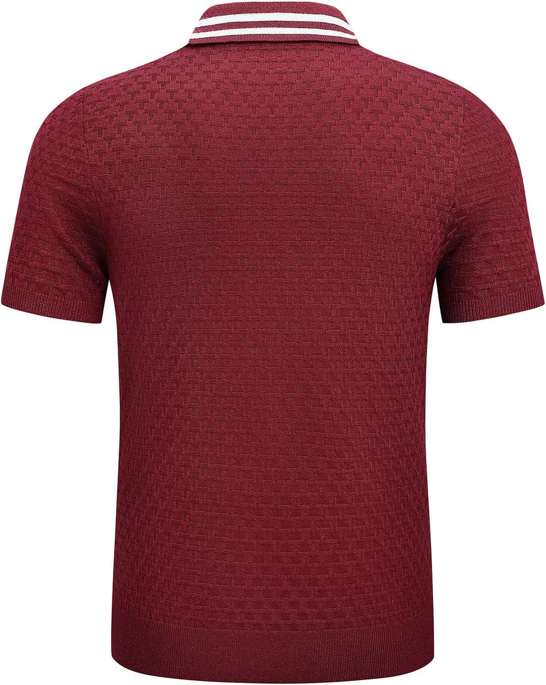 JMIERR Men’s Knit Polo Shirts Casual Short Sleeve Button Lightweight Shirt(Red)