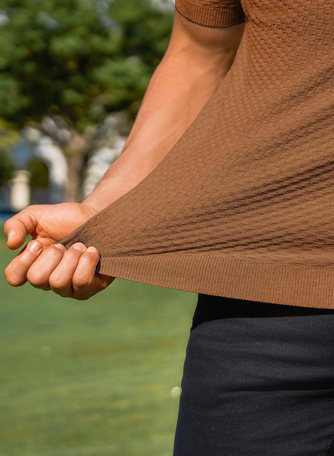 JMIERR Mens Knit Polo Shirts Classic Button Basic Textured T Shirts Casual Slim Fit Short Sleeve Summer Golf Tee Shirt(Light Khaki)