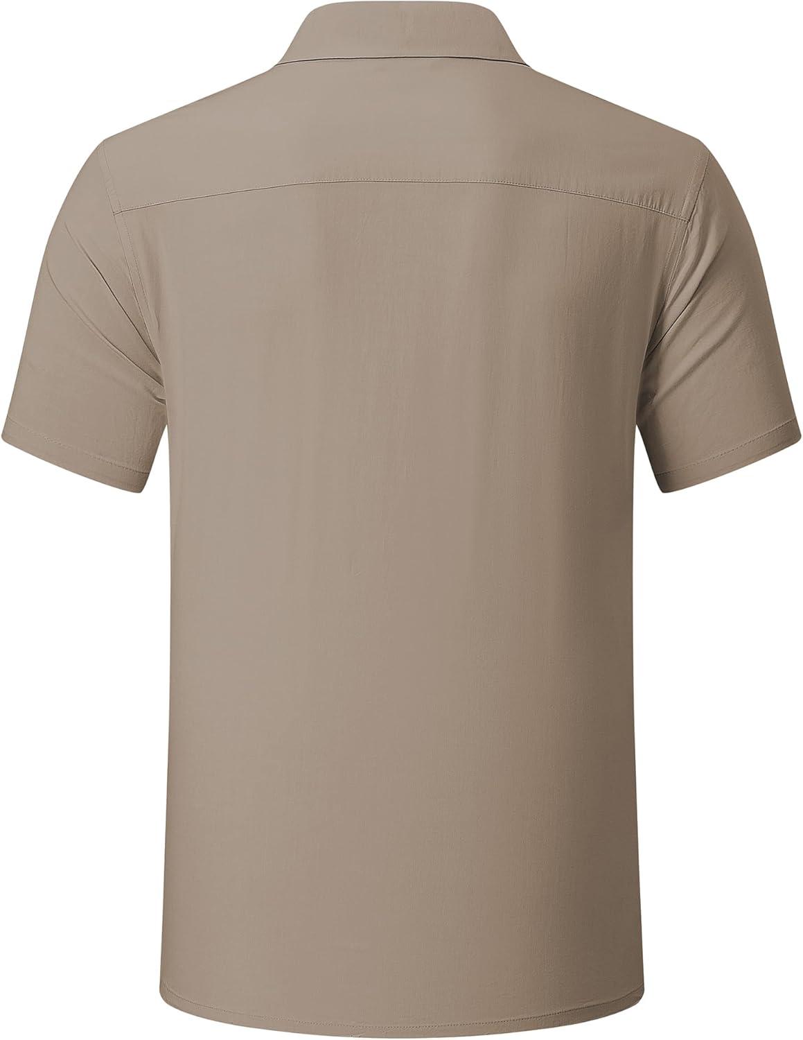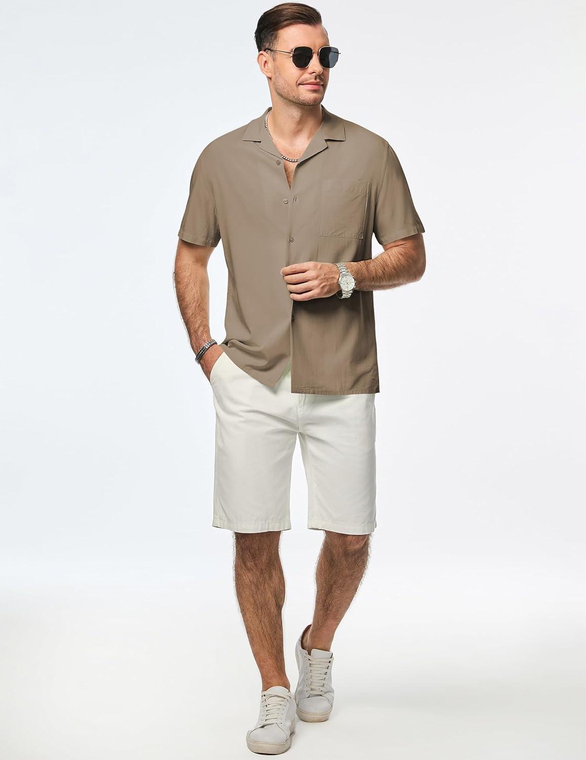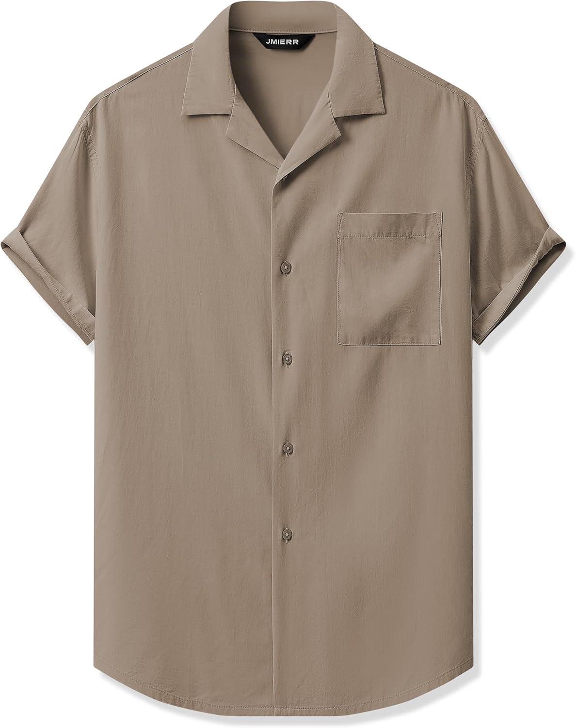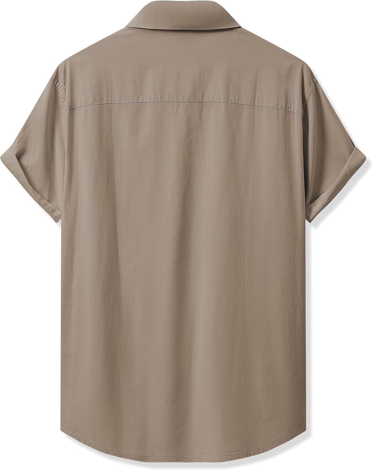 JMIERR Mens Linen Shirts Casual Short Sleeve Button Down Shirts Wrinkle Free Vacation Beach Summer Tops(Brown)