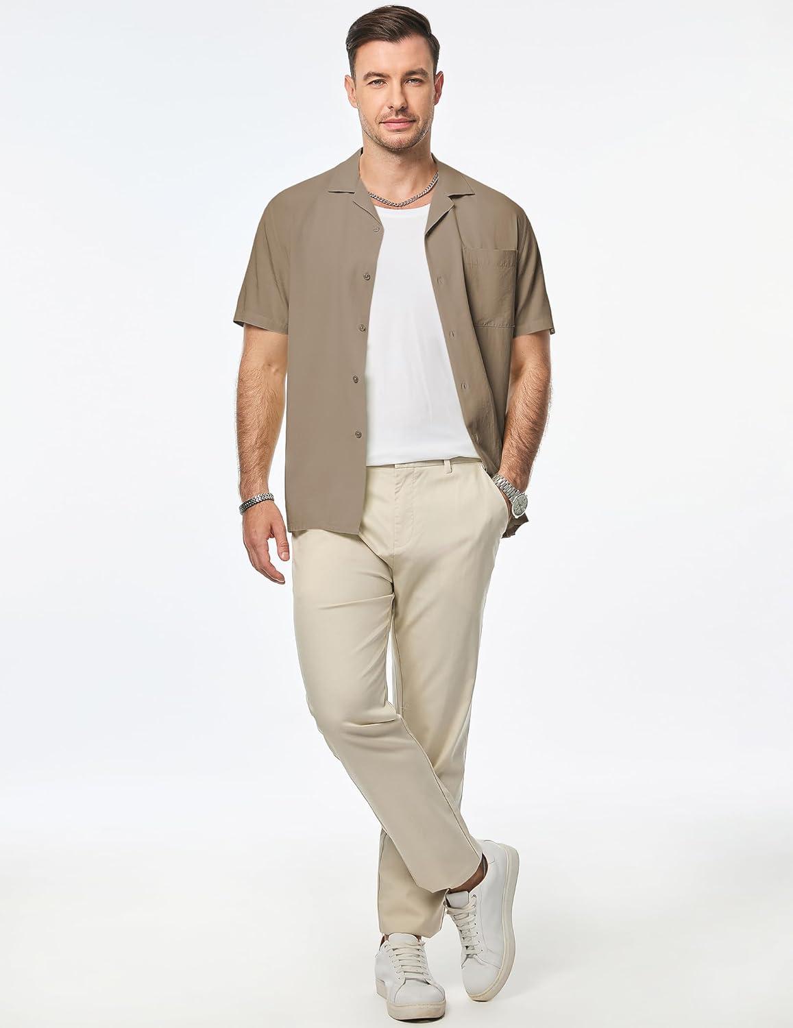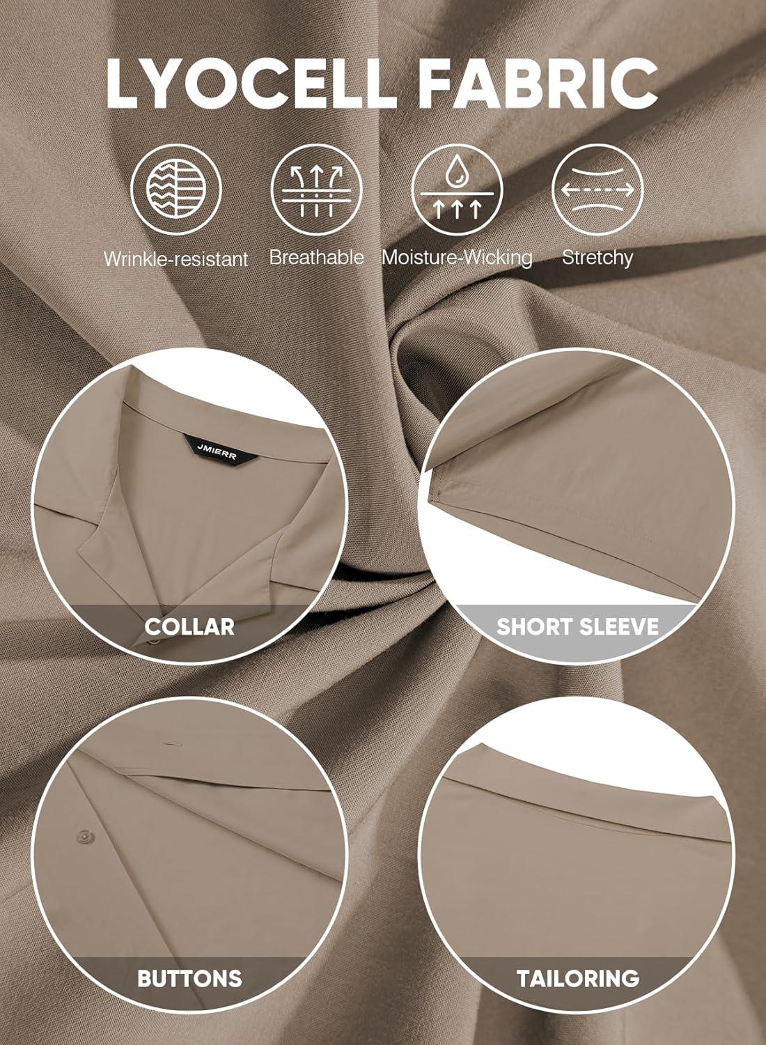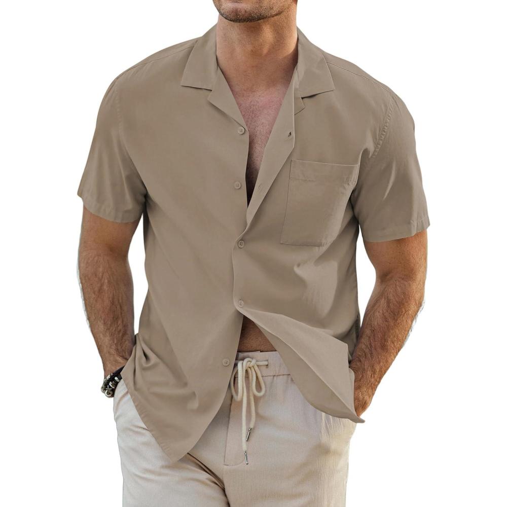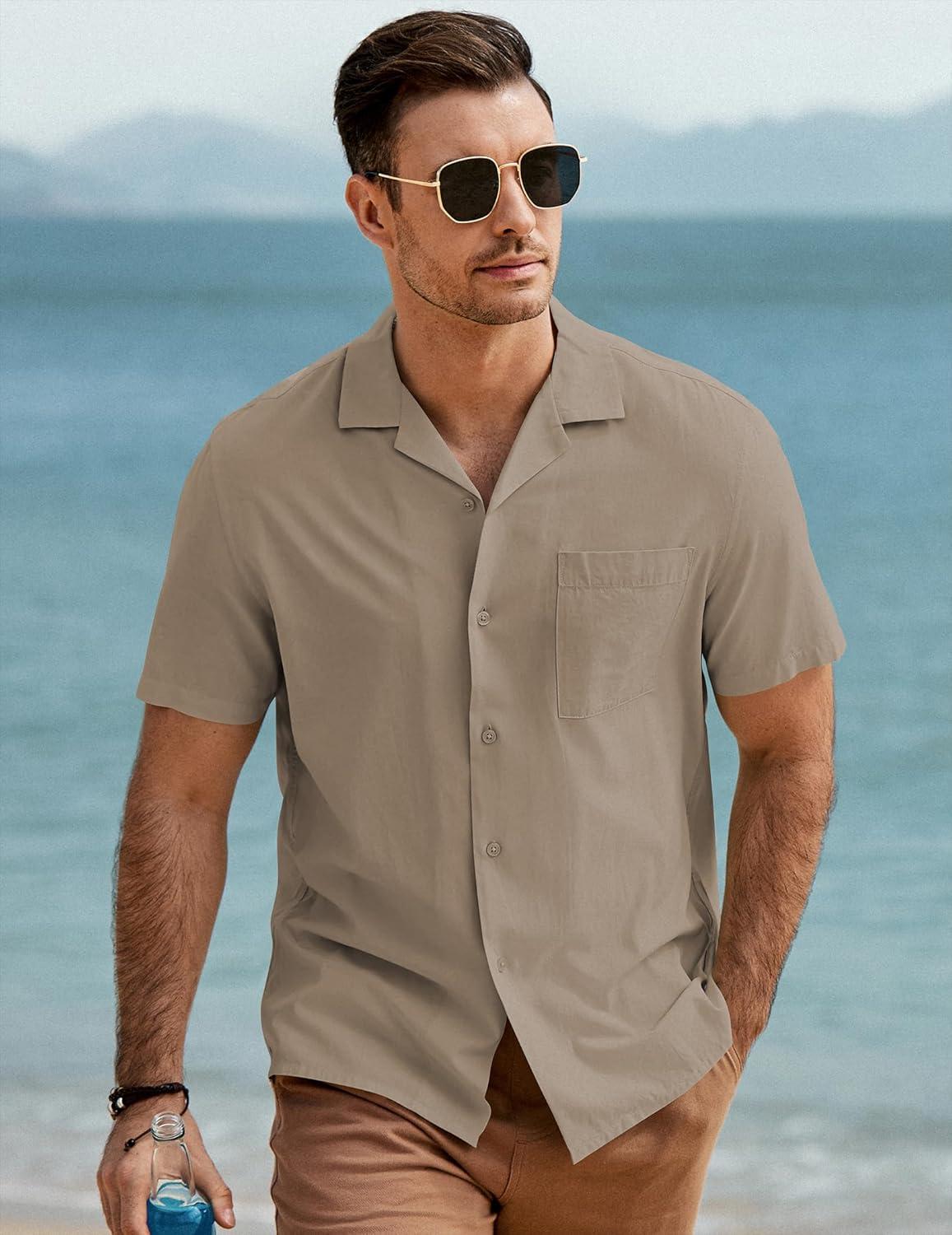 JMIERR Mens Linen Shirts Casual Short Sleeve Button Down Shirts Wrinkle Free Vacation Beach Summer Tops(Brown)