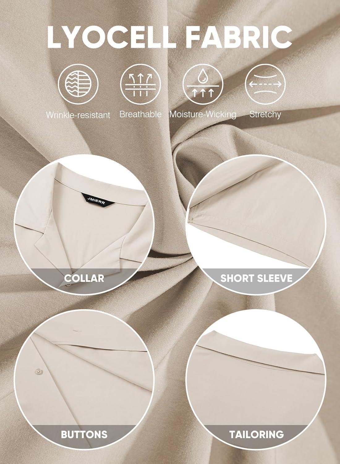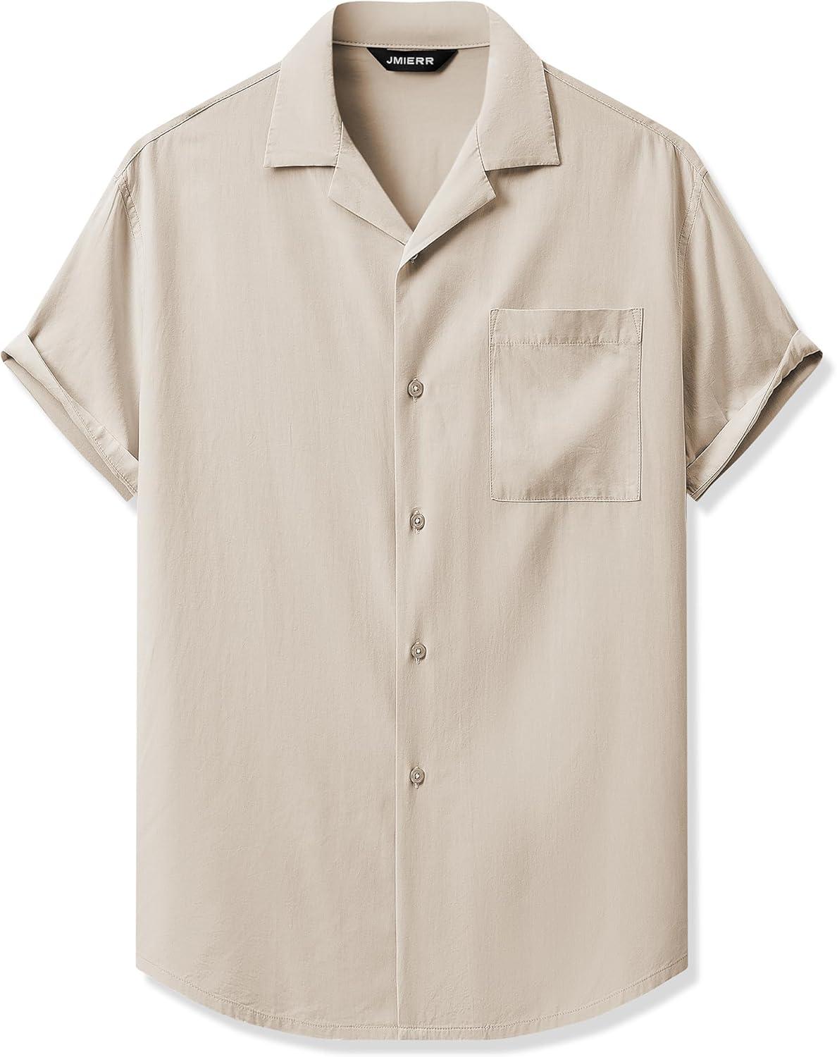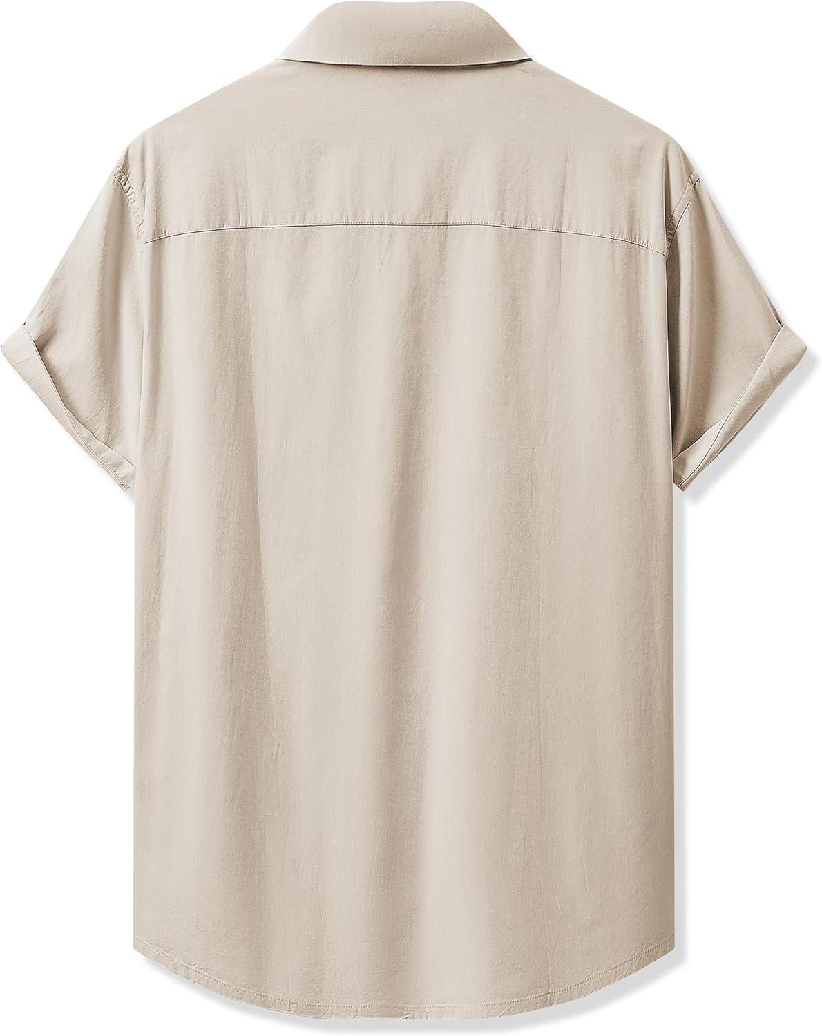 JMIERR Mens Linen Shirts Casual Short Sleeve Button Down Shirts Wrinkle Free Vacation Beach Summer Tops(Light Khaki)