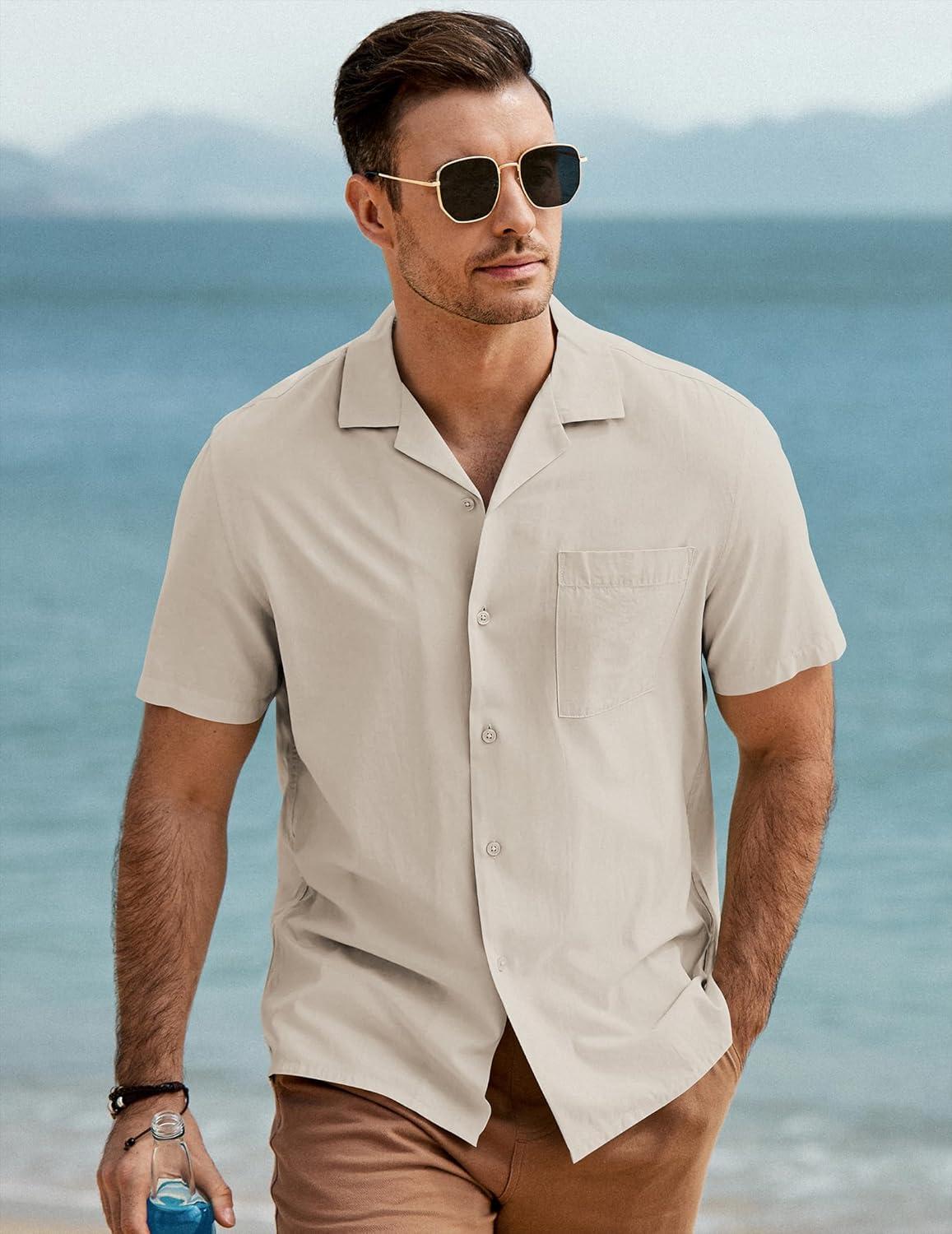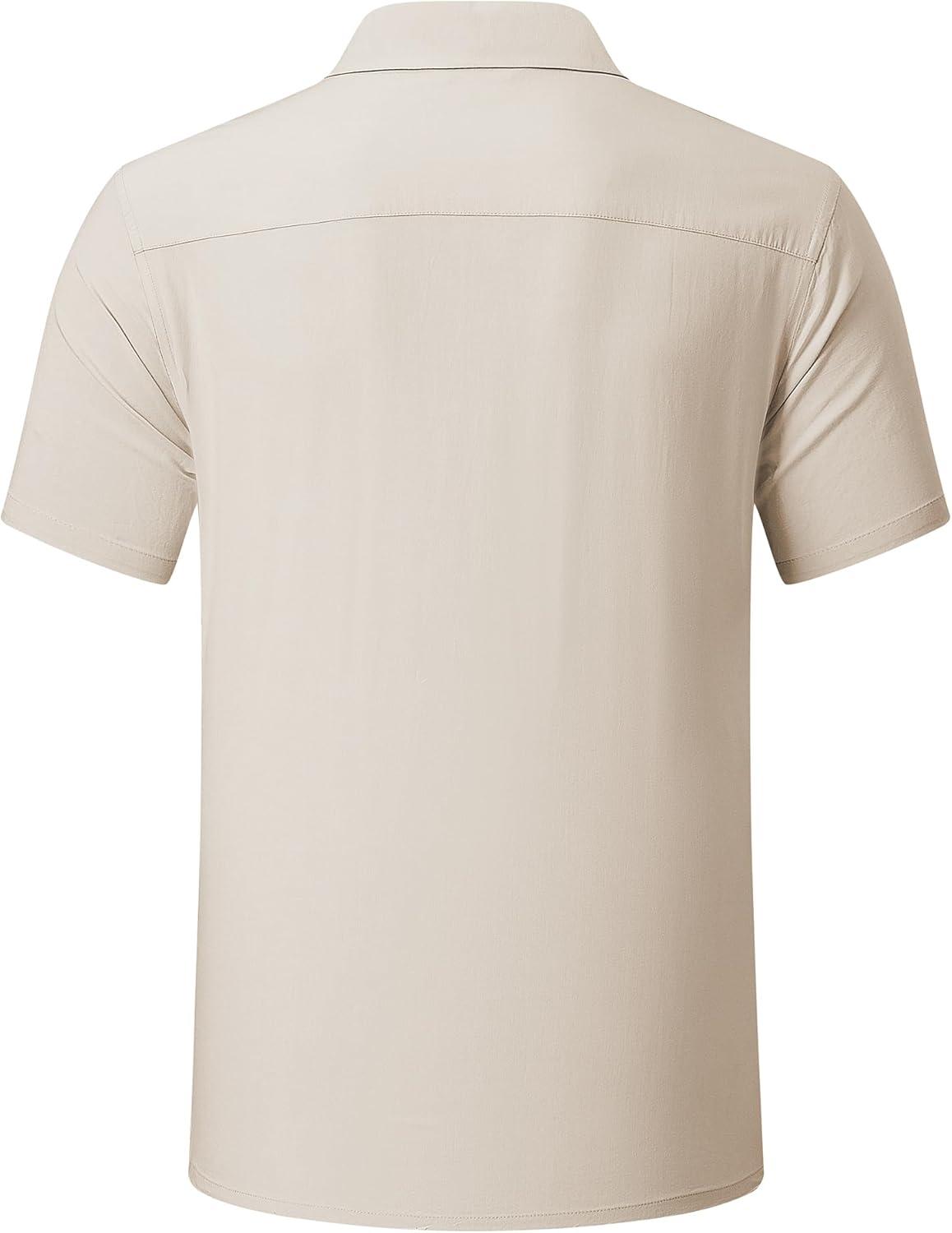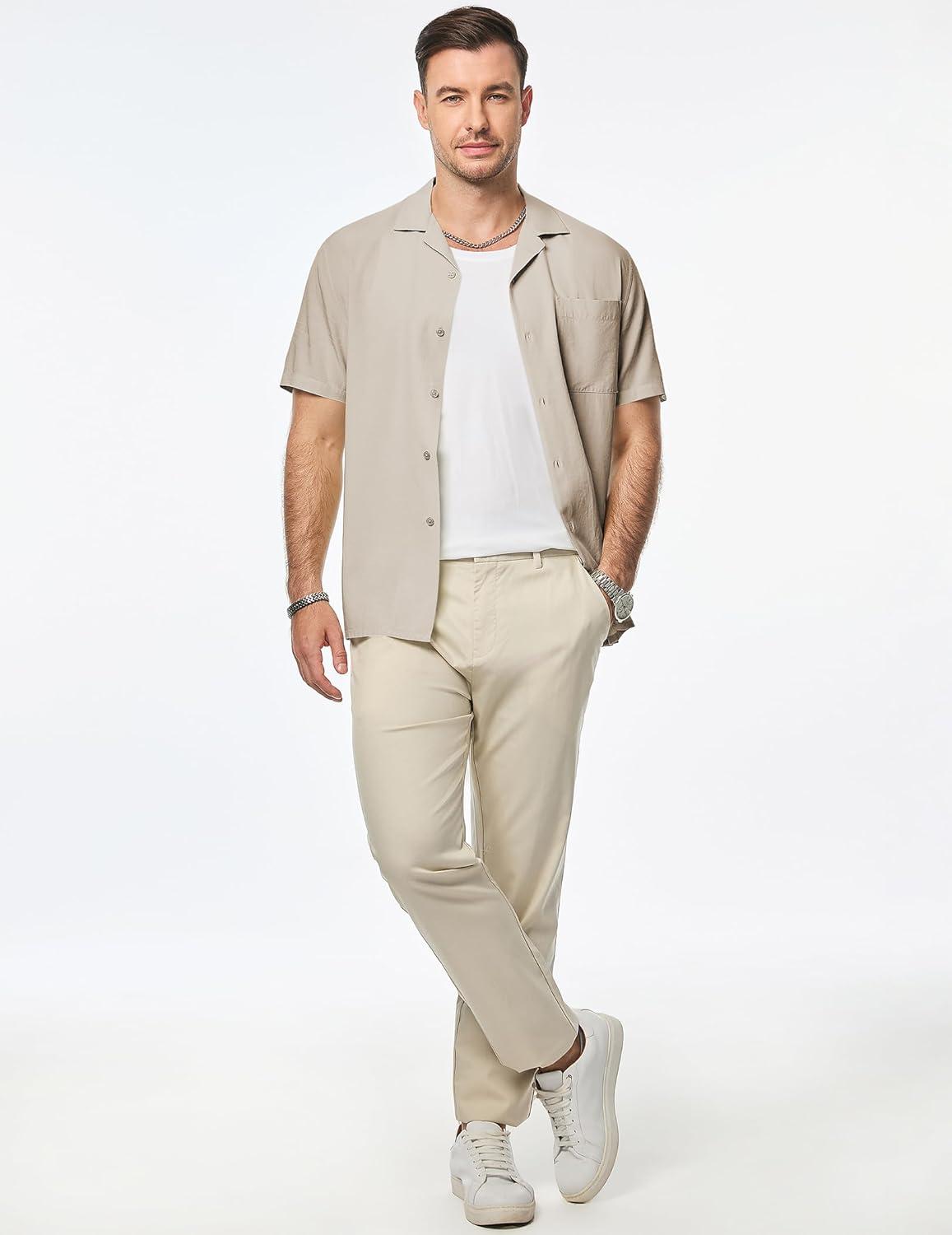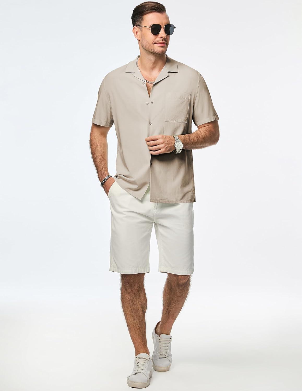JMIERR Mens Linen Shirts Casual Short Sleeve Button Down Shirts Wrinkle Free Vacation Beach Summer Tops(Light Khaki)