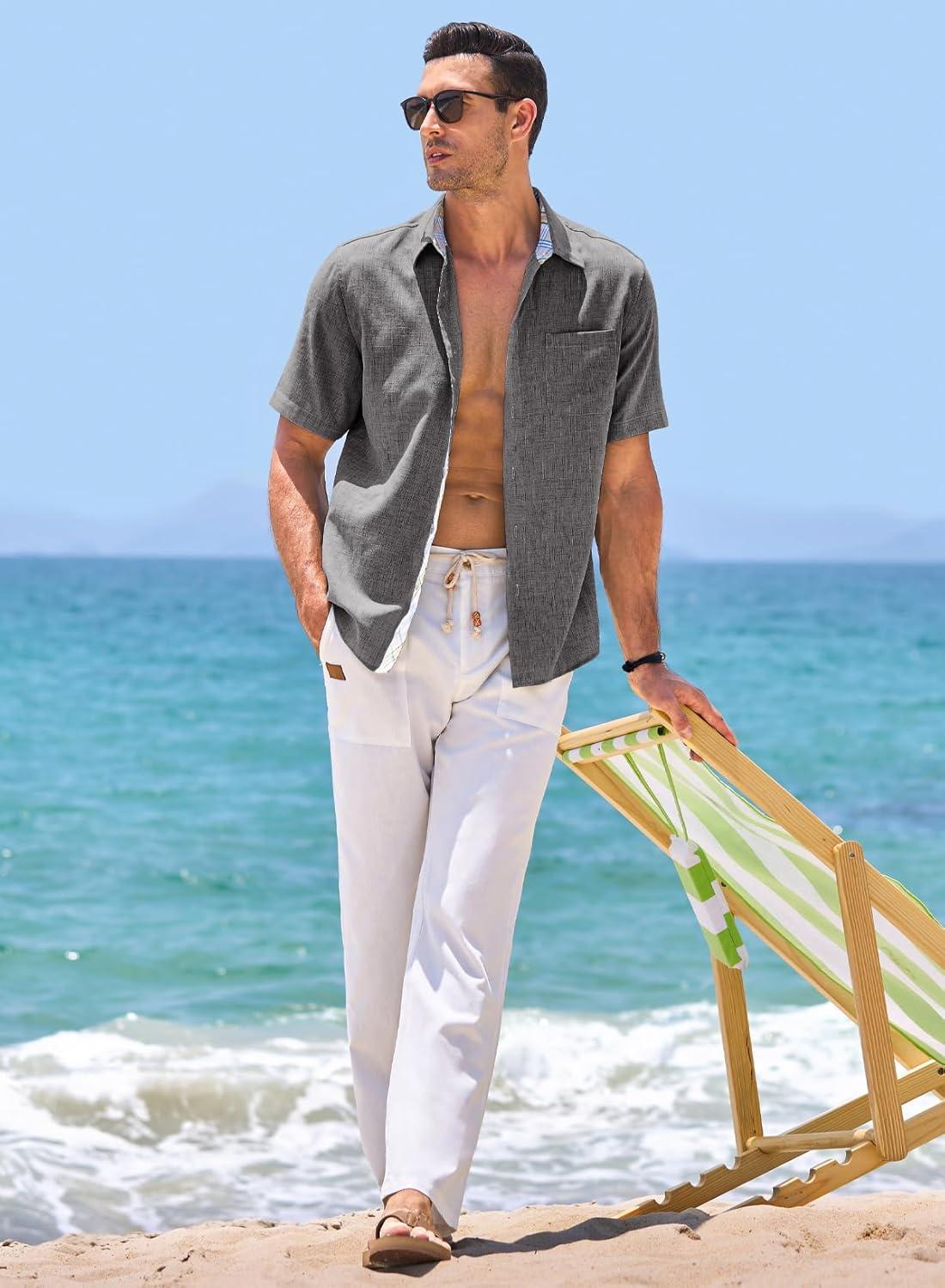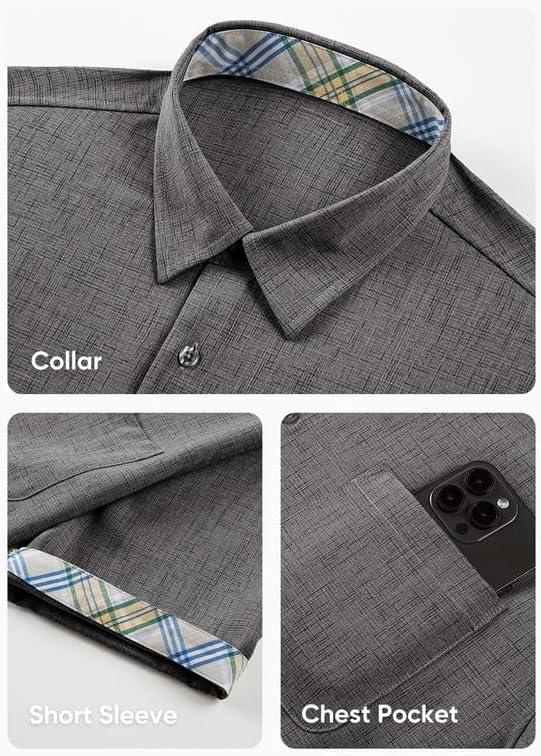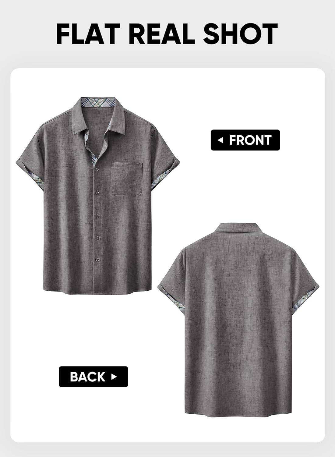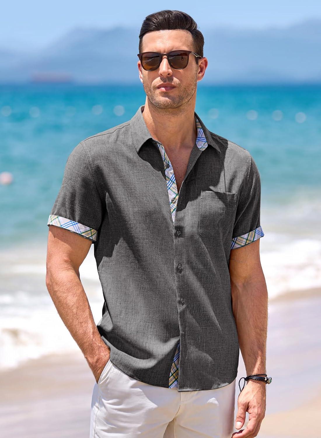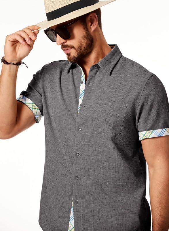 JMIERR Men‘s Linen Shirts Short Sleeve Summer Button Down Casual Beach Hawaiian Shirt with Pocket(Dark Grey)