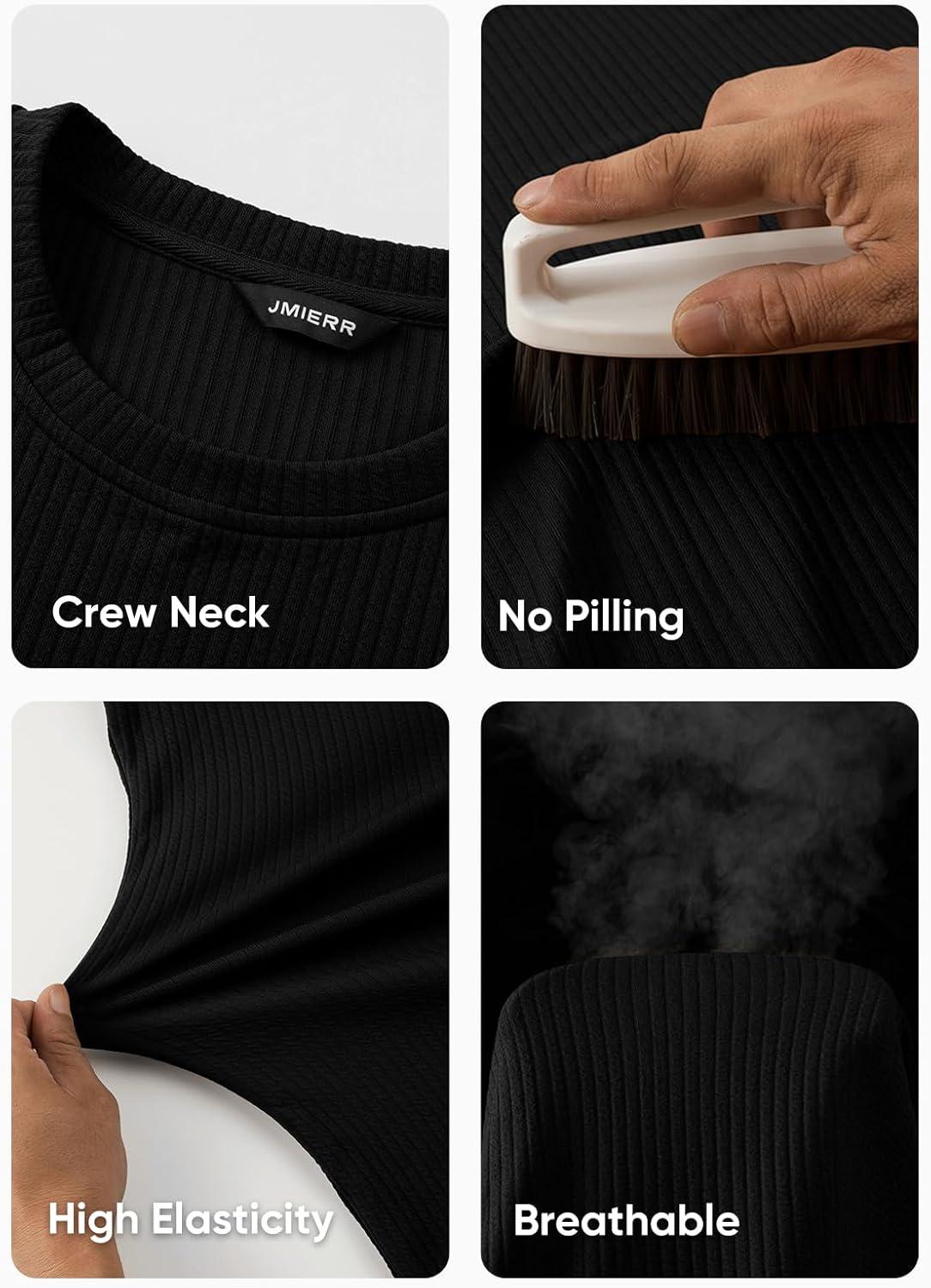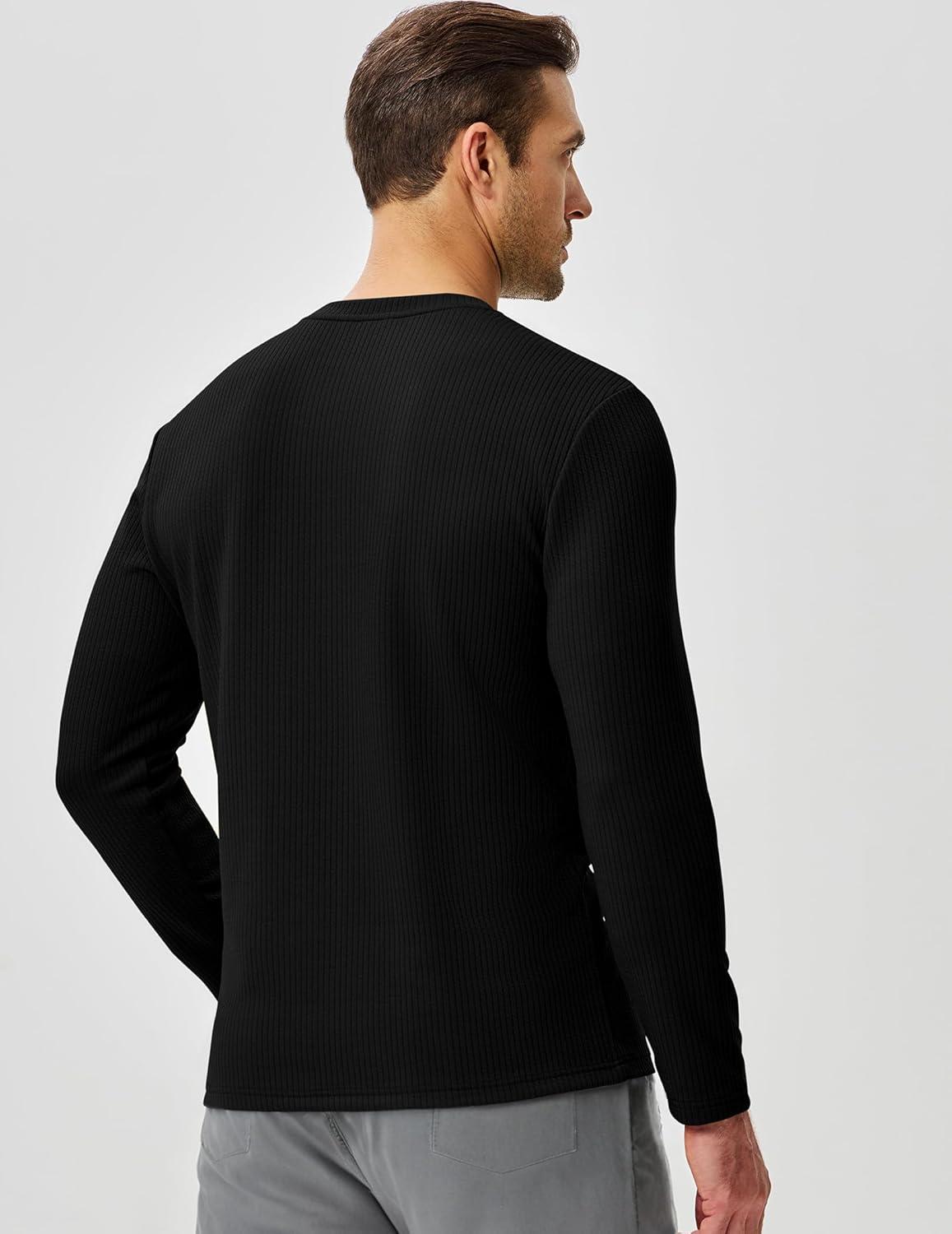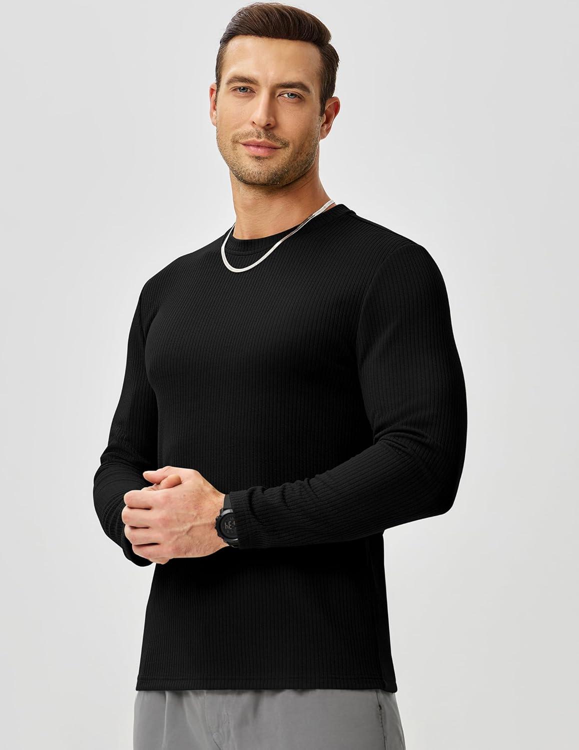 JMIERR Mens Long Sleeve Muscle T Shirts Casual Crewneck Knitted Longline Textured Tee Shirts for Gym Workout(A Black)
