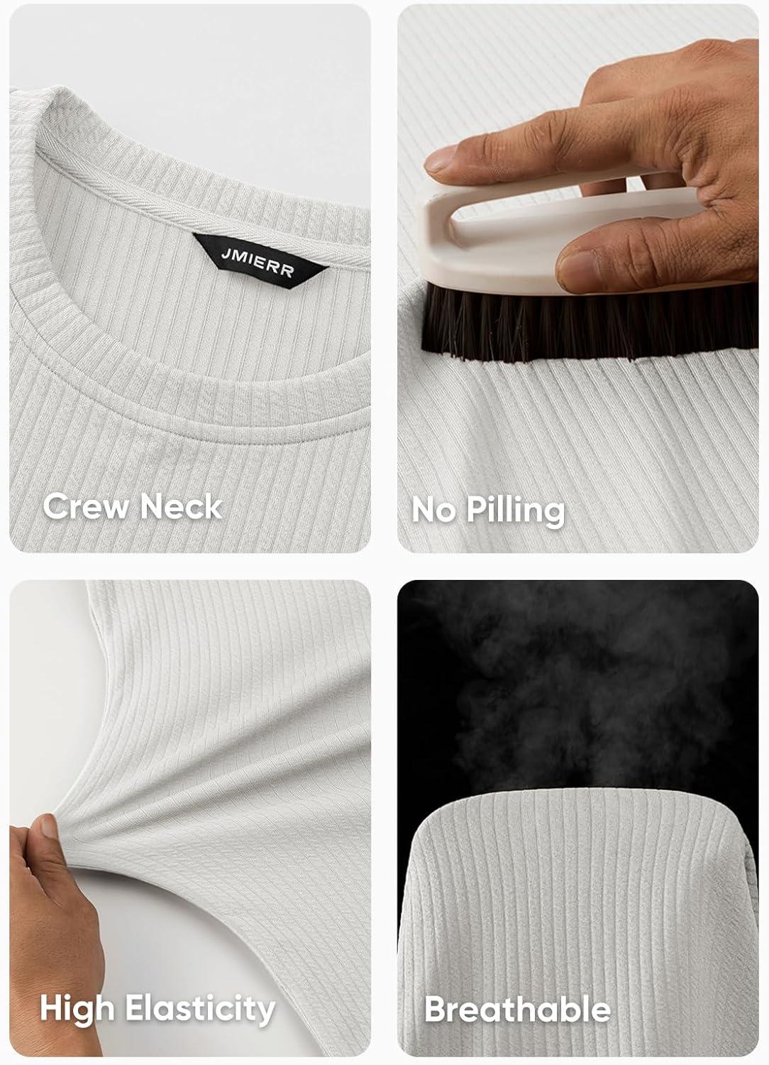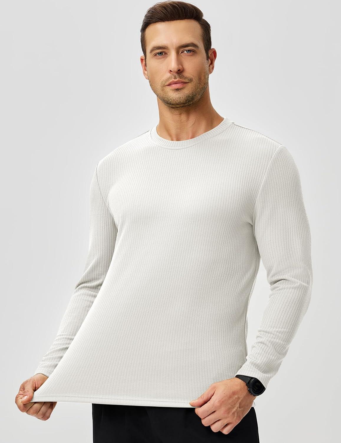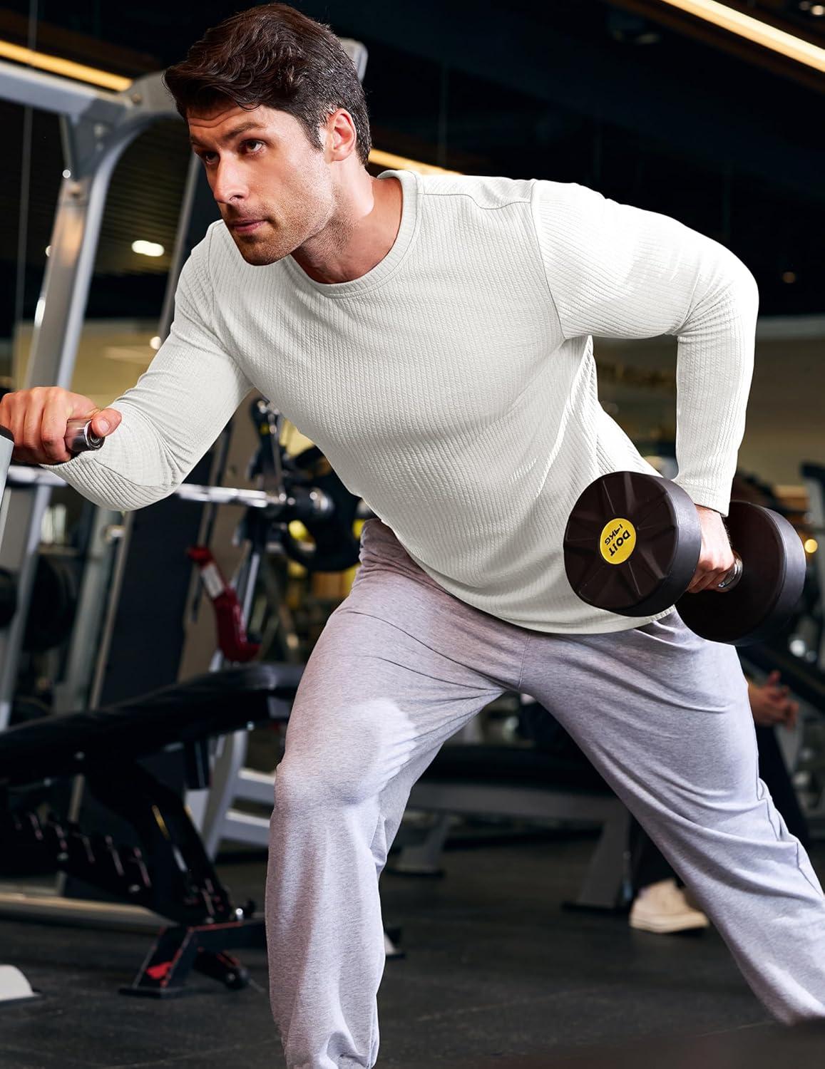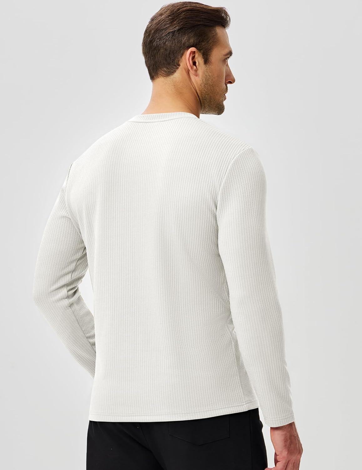 JMIERR Mens Long Sleeve Muscle T Shirts Casual Crewneck Knitted Longline Textured Tee Shirts for Gym Workout(A White)