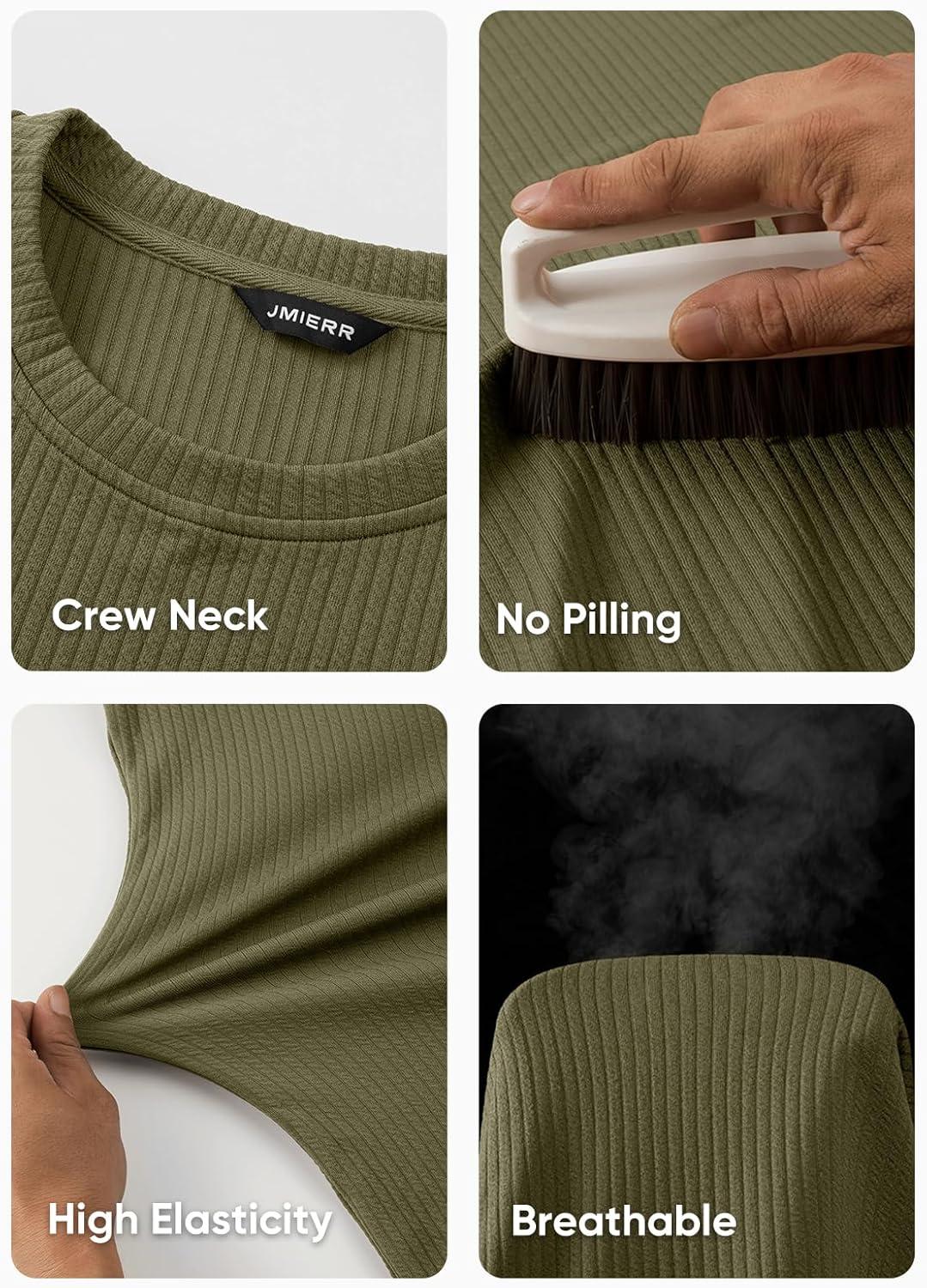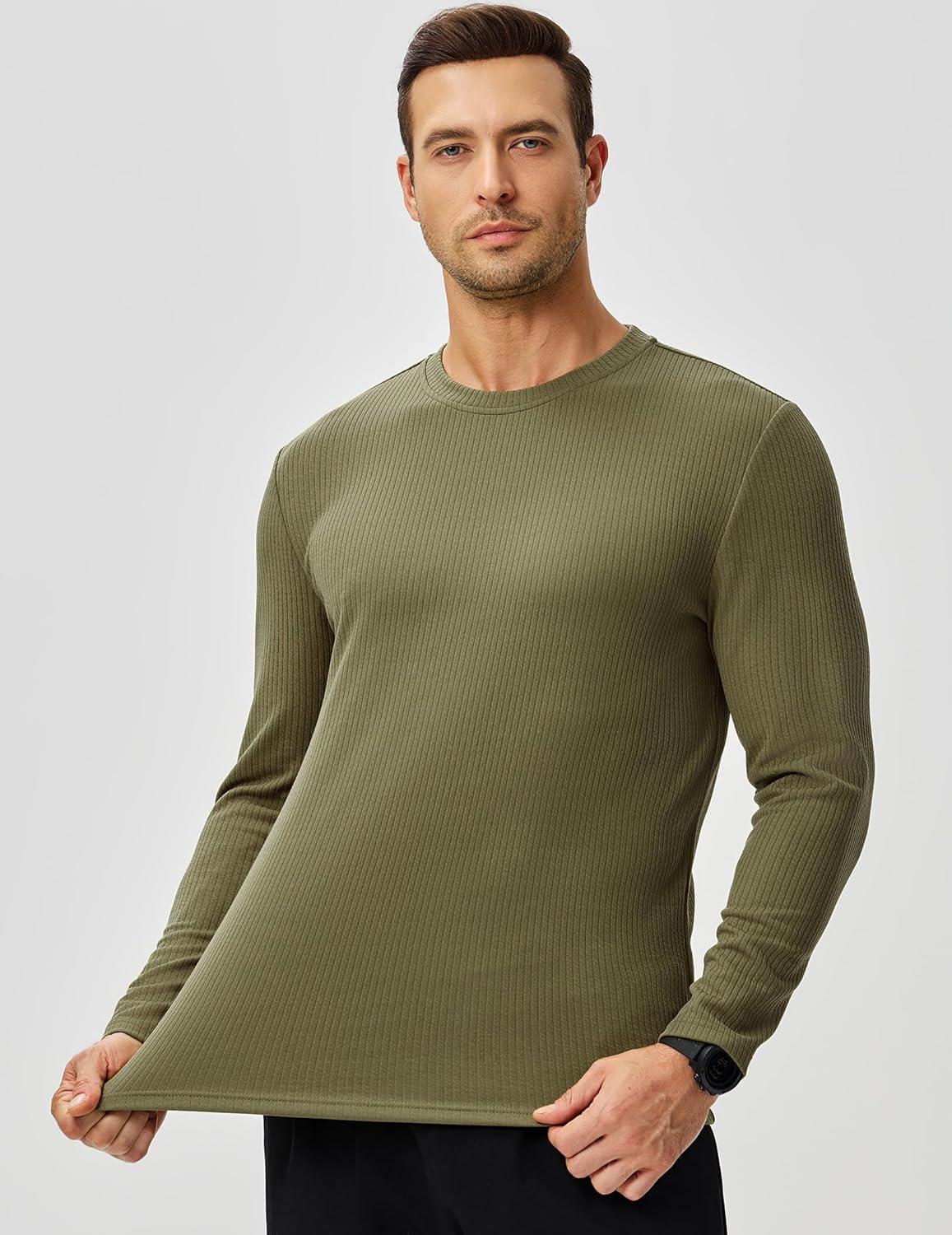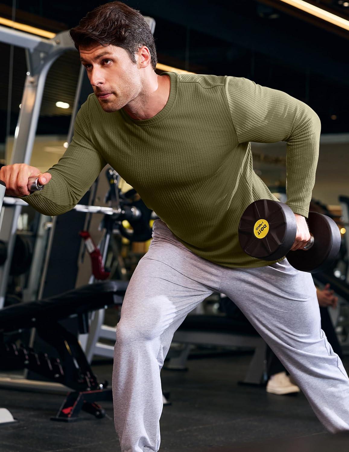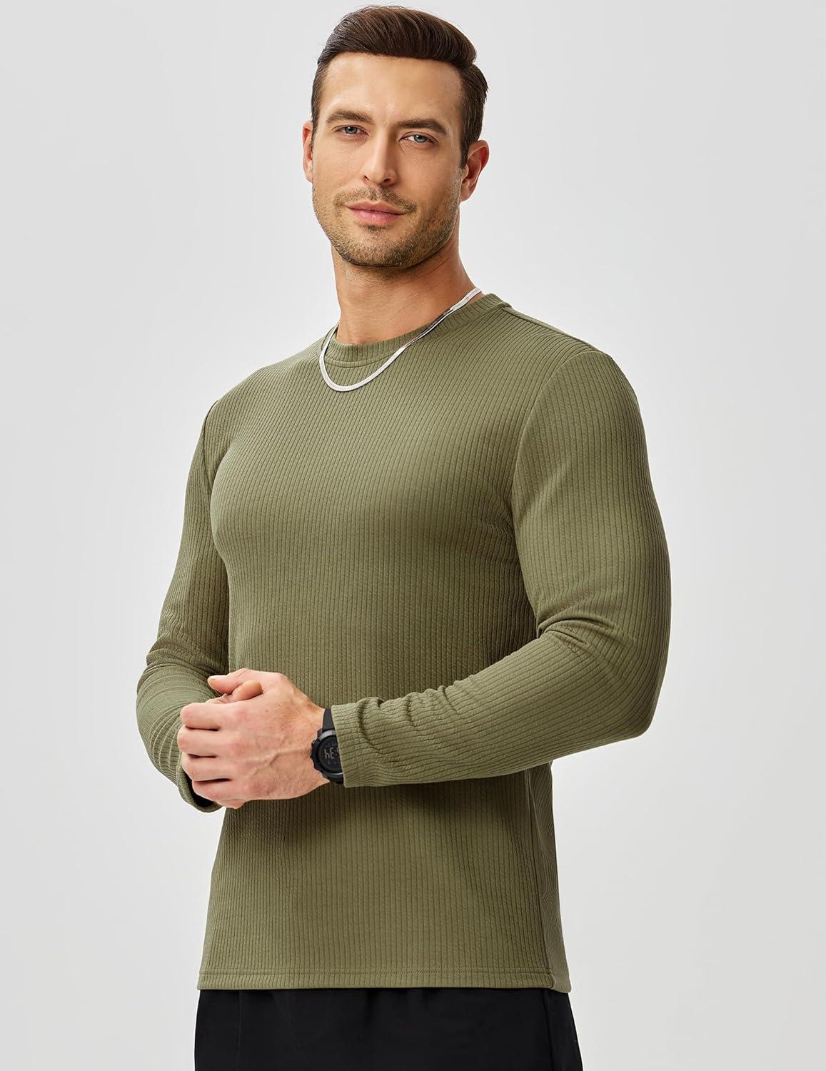 JMIERR Mens Long Sleeve Muscle T Shirts Casual Crewneck Knitted Longline Textured Tee Shirts for Gym Workout(B Green)