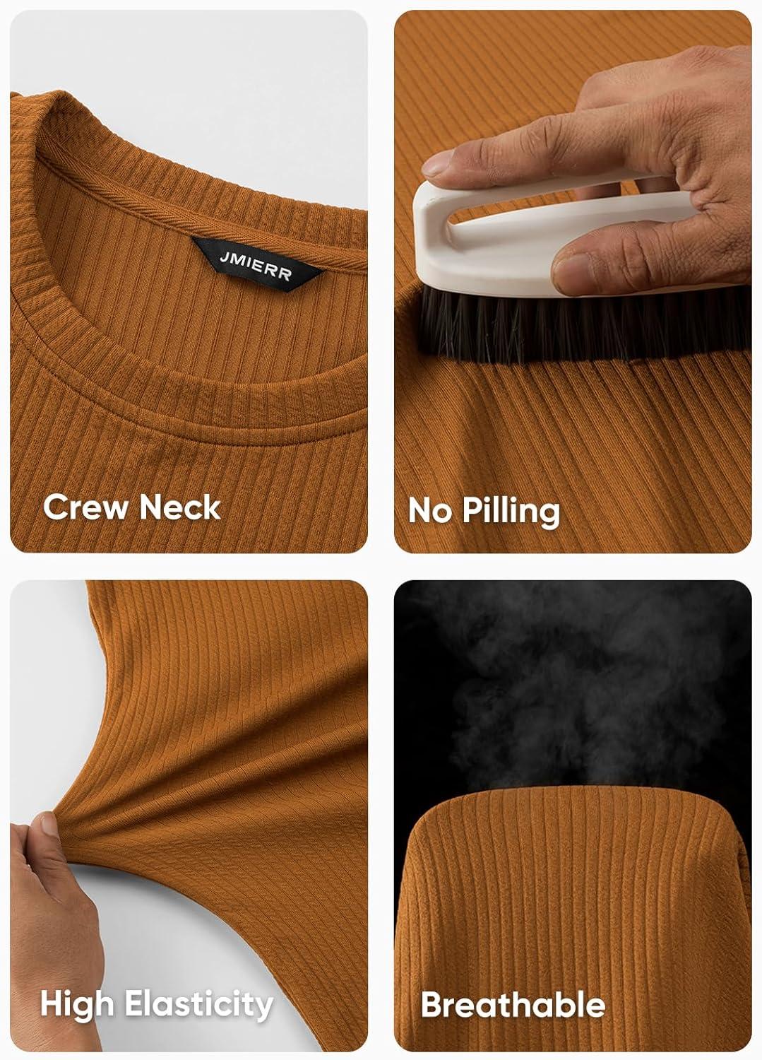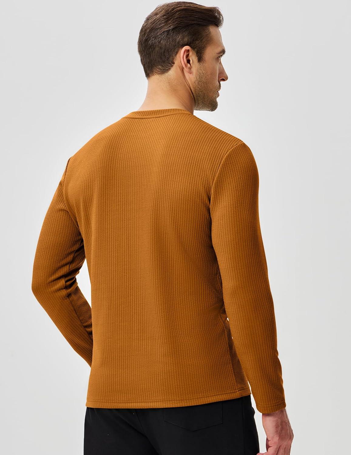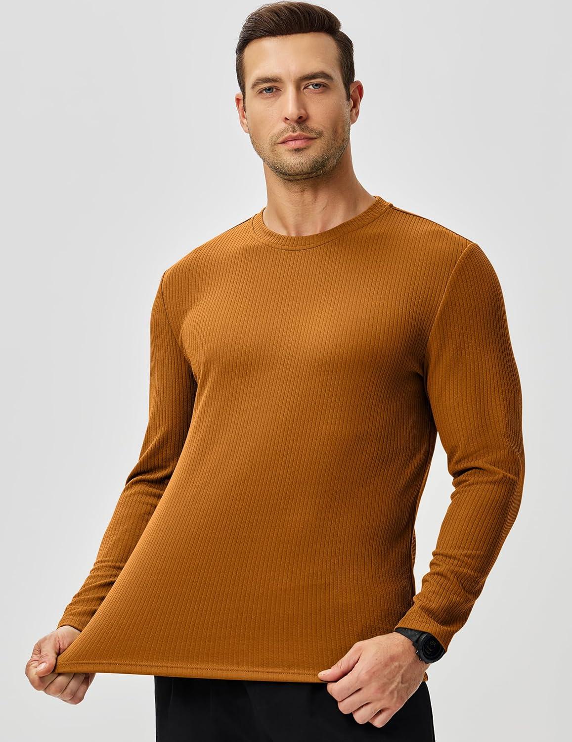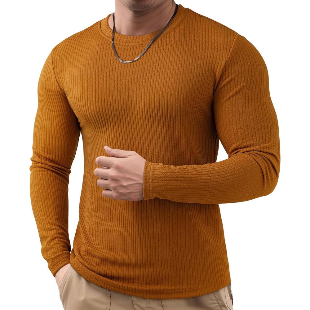 JMIERR Mens Long Sleeve Muscle T Shirts Casual Crewneck Knitted Longline Textured Tee Shirts for Gym Workout(B Khaki)