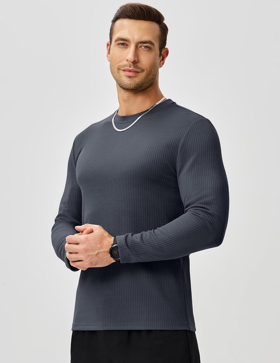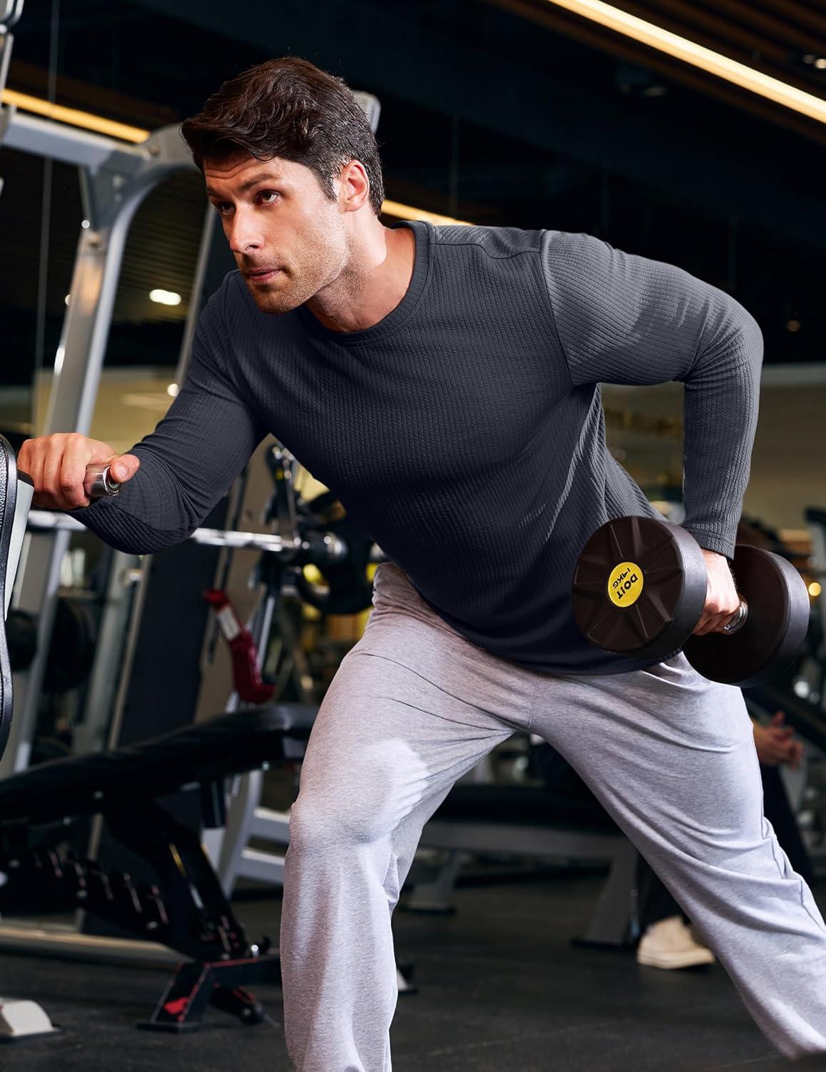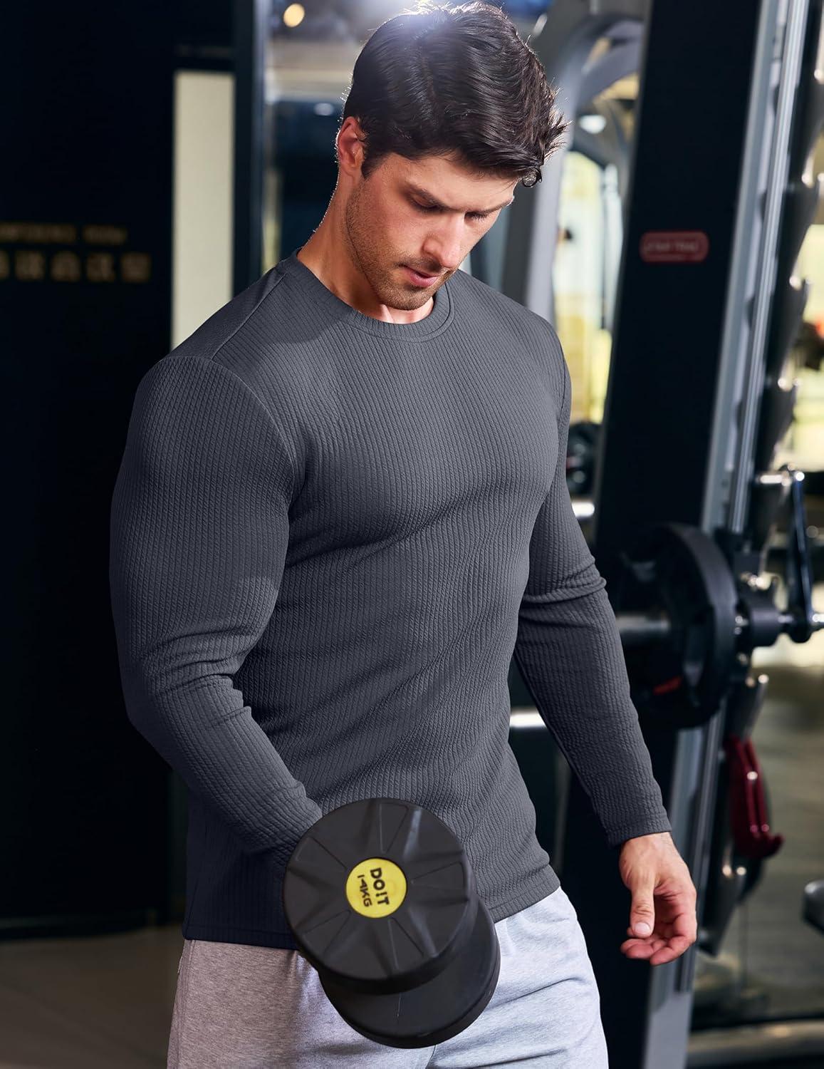 JMIERR Mens Long Sleeve Muscle T Shirts Casual Crewneck Knitted Longline Textured Tee Shirts for Gym Workout(Carbon Grey)