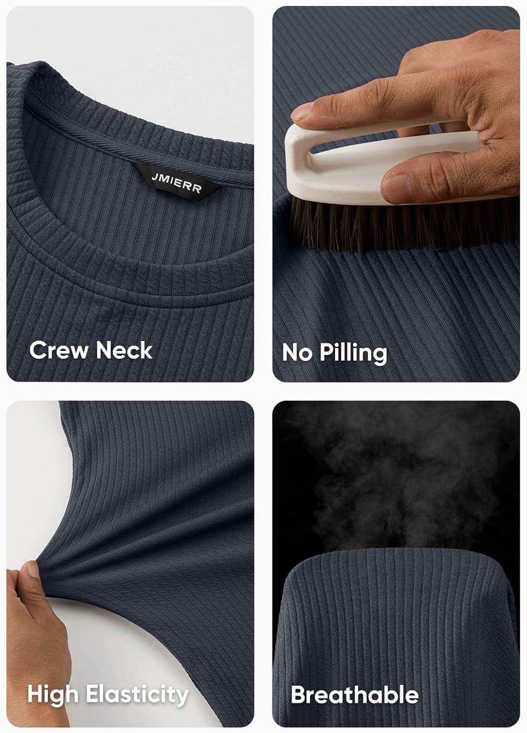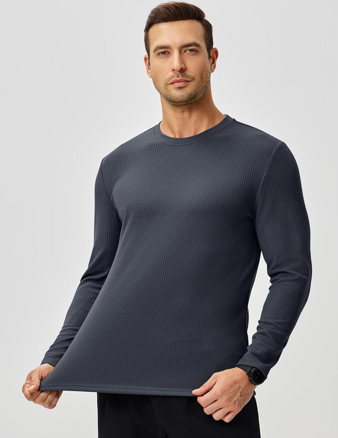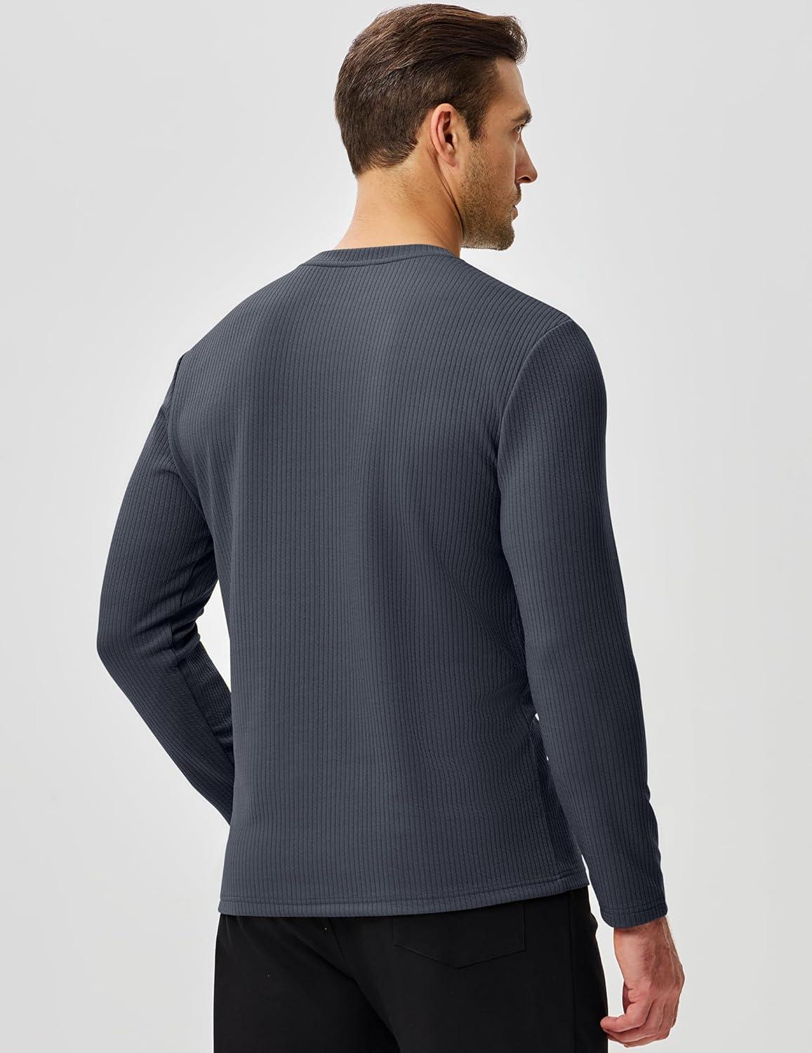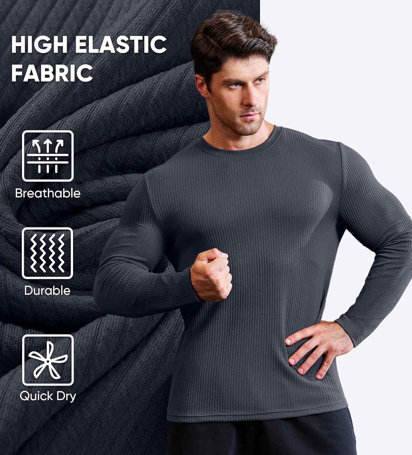 JMIERR Mens Long Sleeve Muscle T Shirts Casual Crewneck Knitted Longline Textured Tee Shirts for Gym Workout(Carbon Grey)