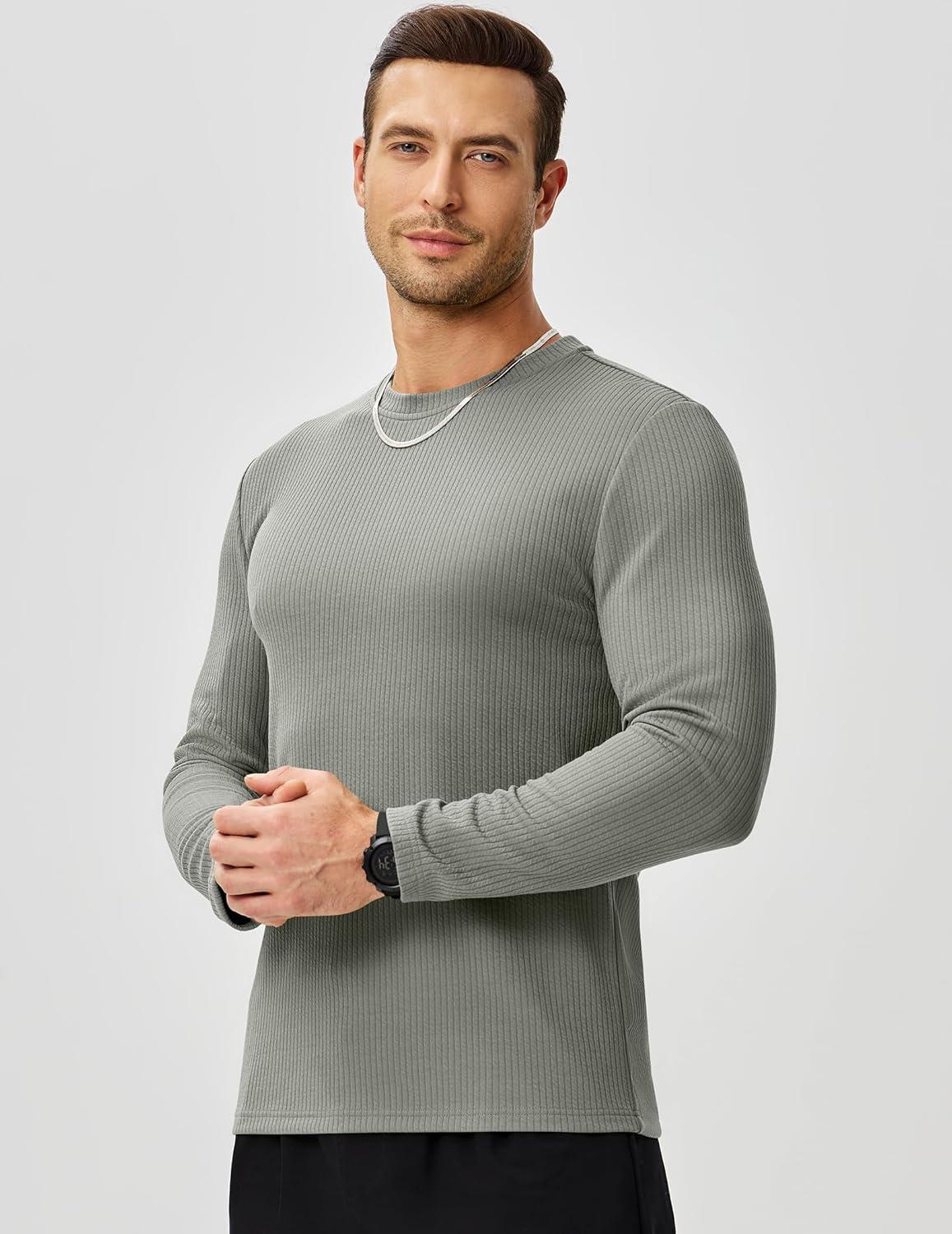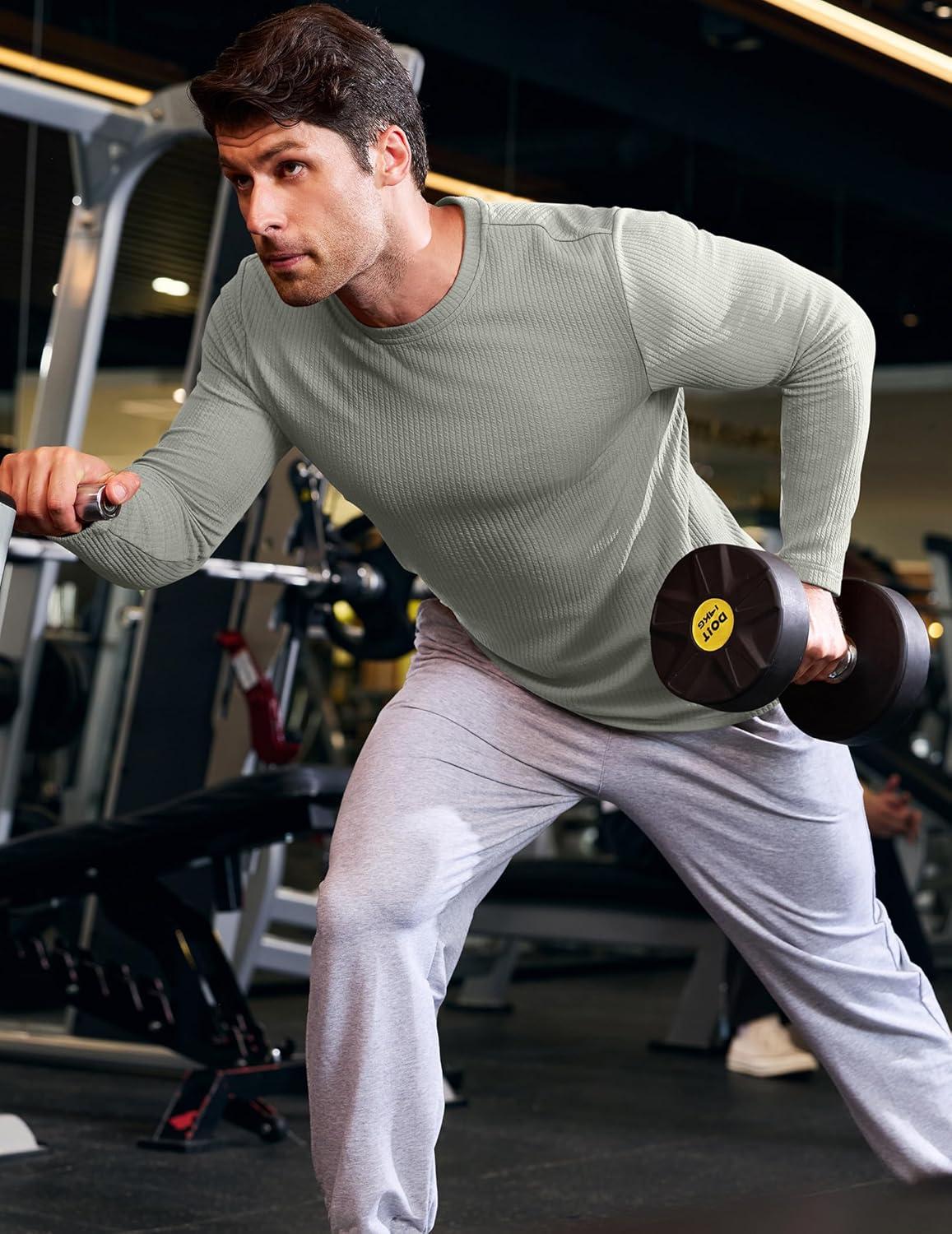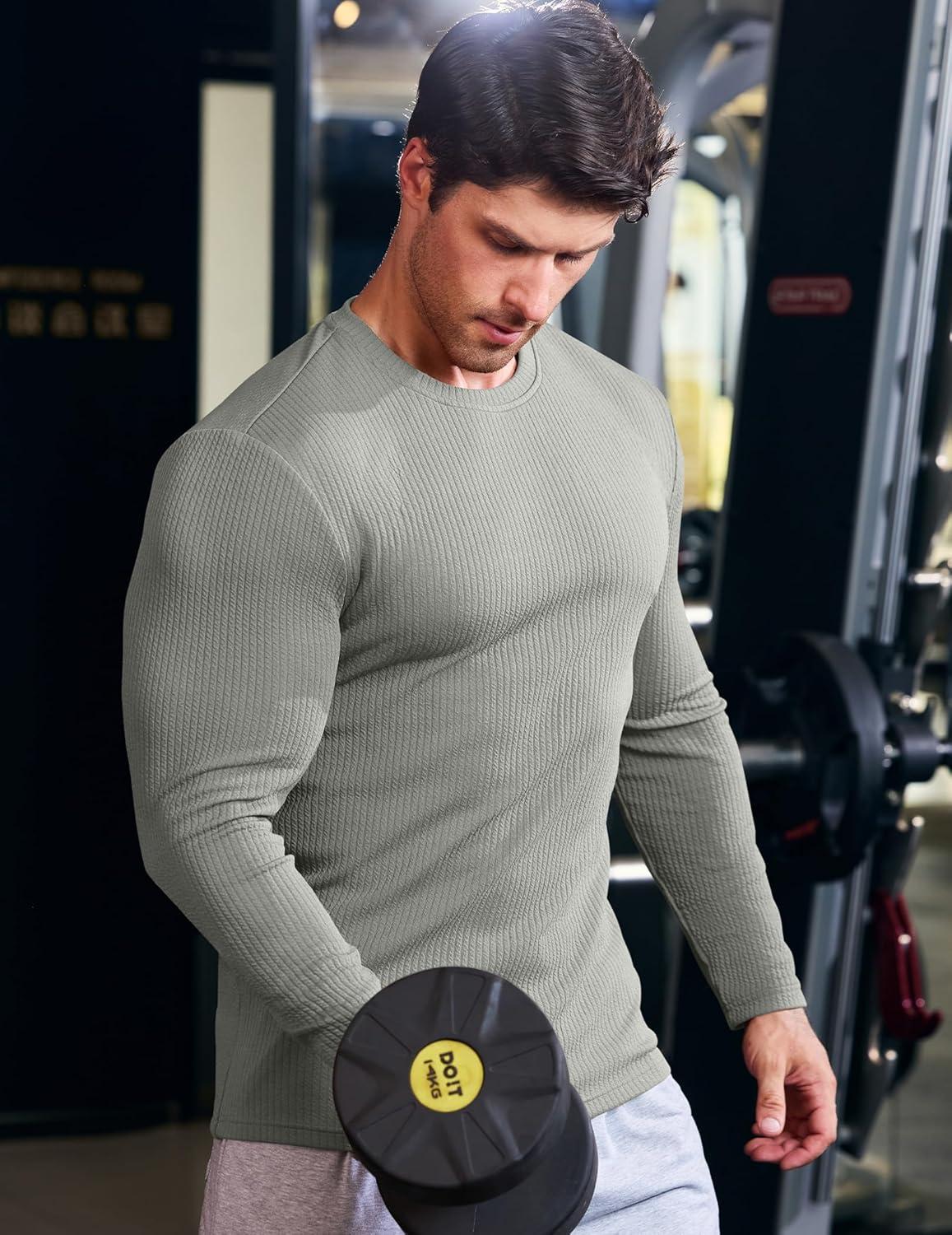 JMIERR Mens Long Sleeve Muscle T Shirts Casual Crewneck Knitted Longline Textured Tee Shirts for Gym Workout(Grey)