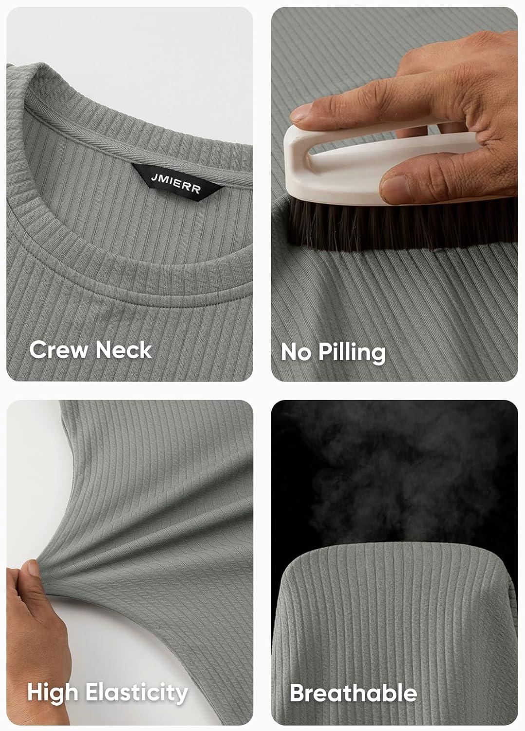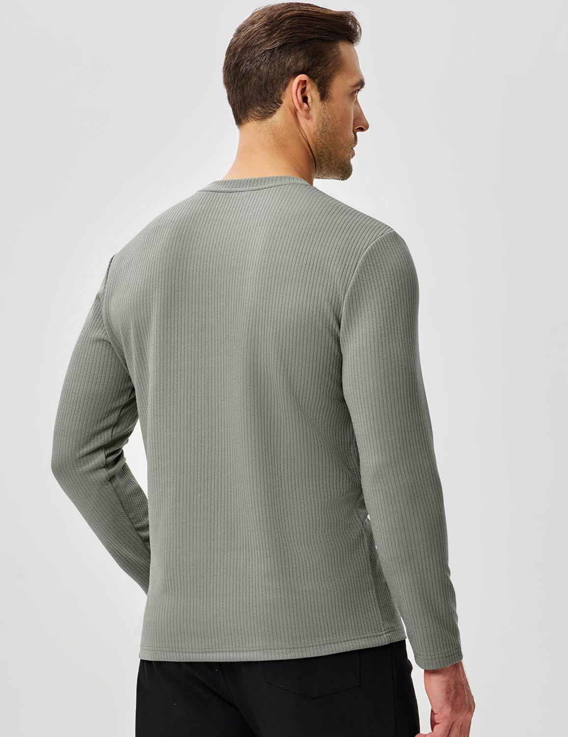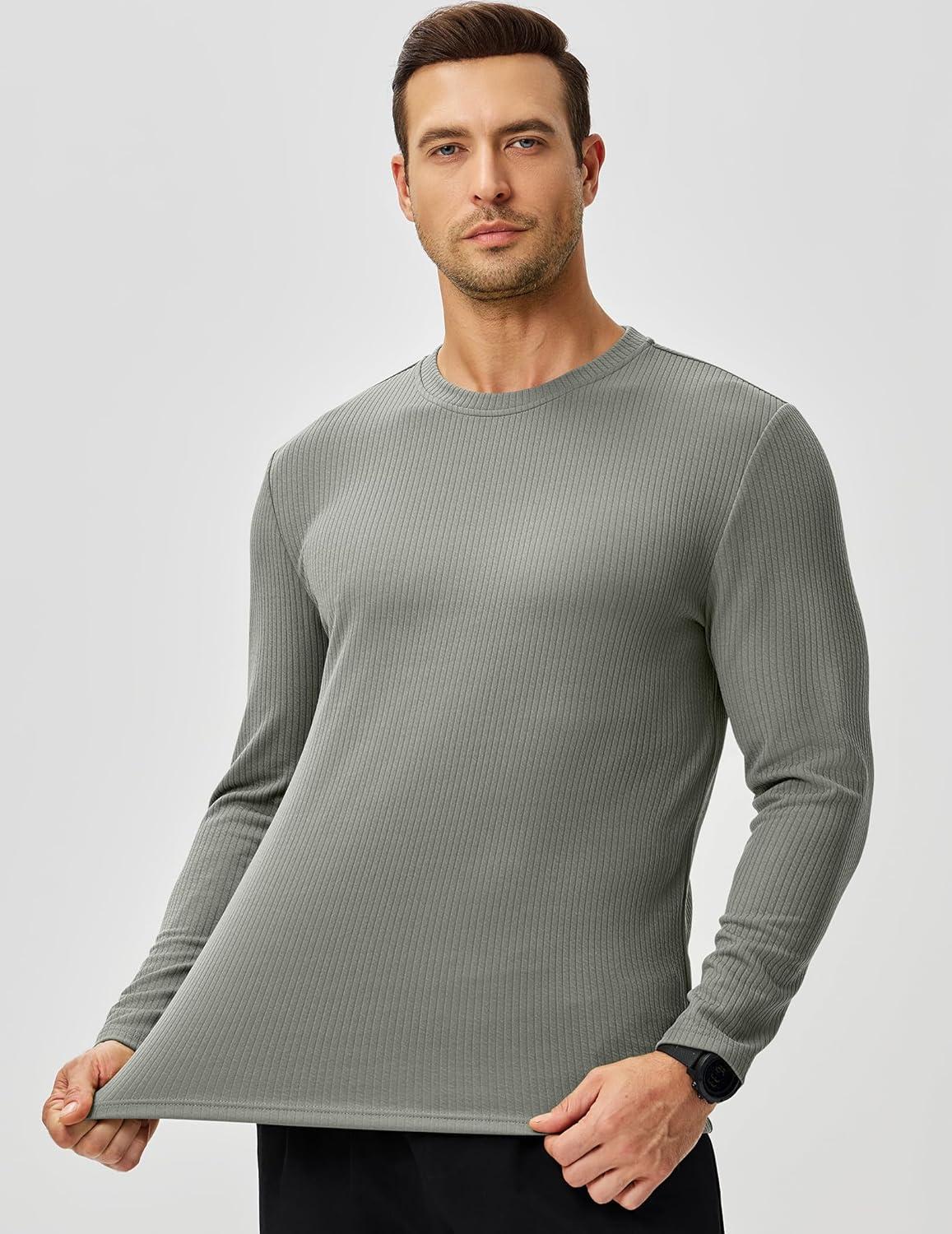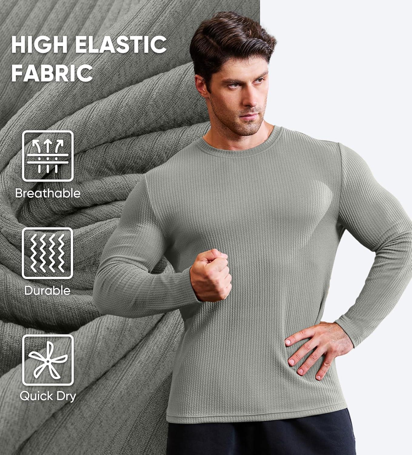 JMIERR Mens Long Sleeve Muscle T Shirts Casual Crewneck Knitted Longline Textured Tee Shirts for Gym Workout(Grey)