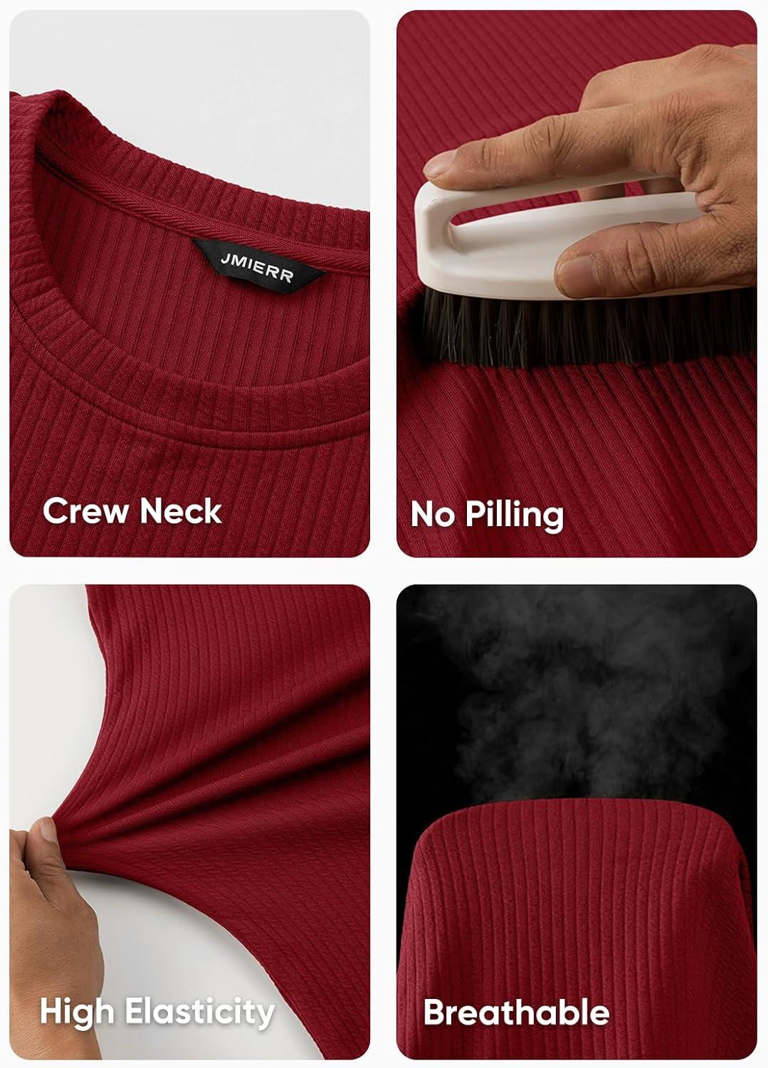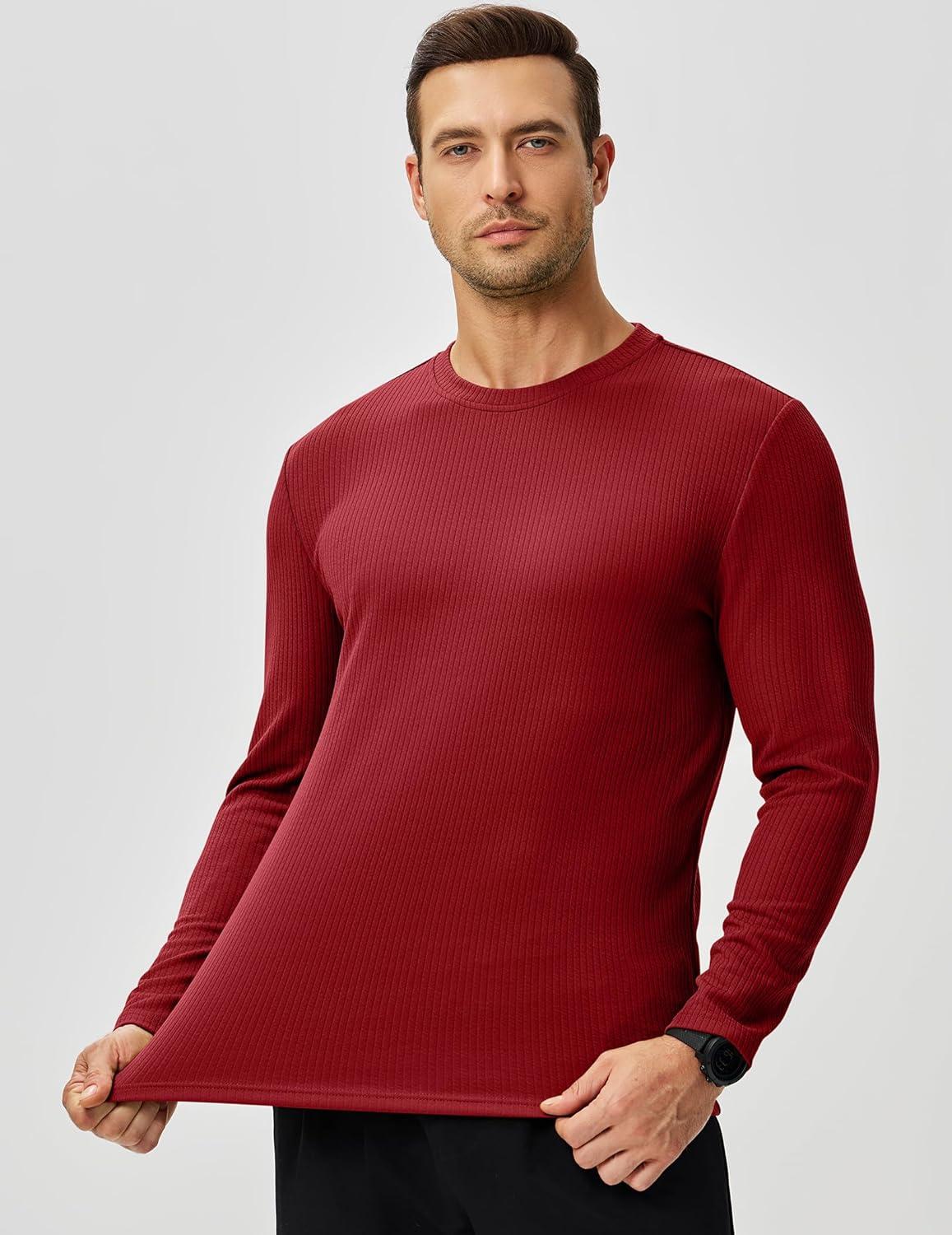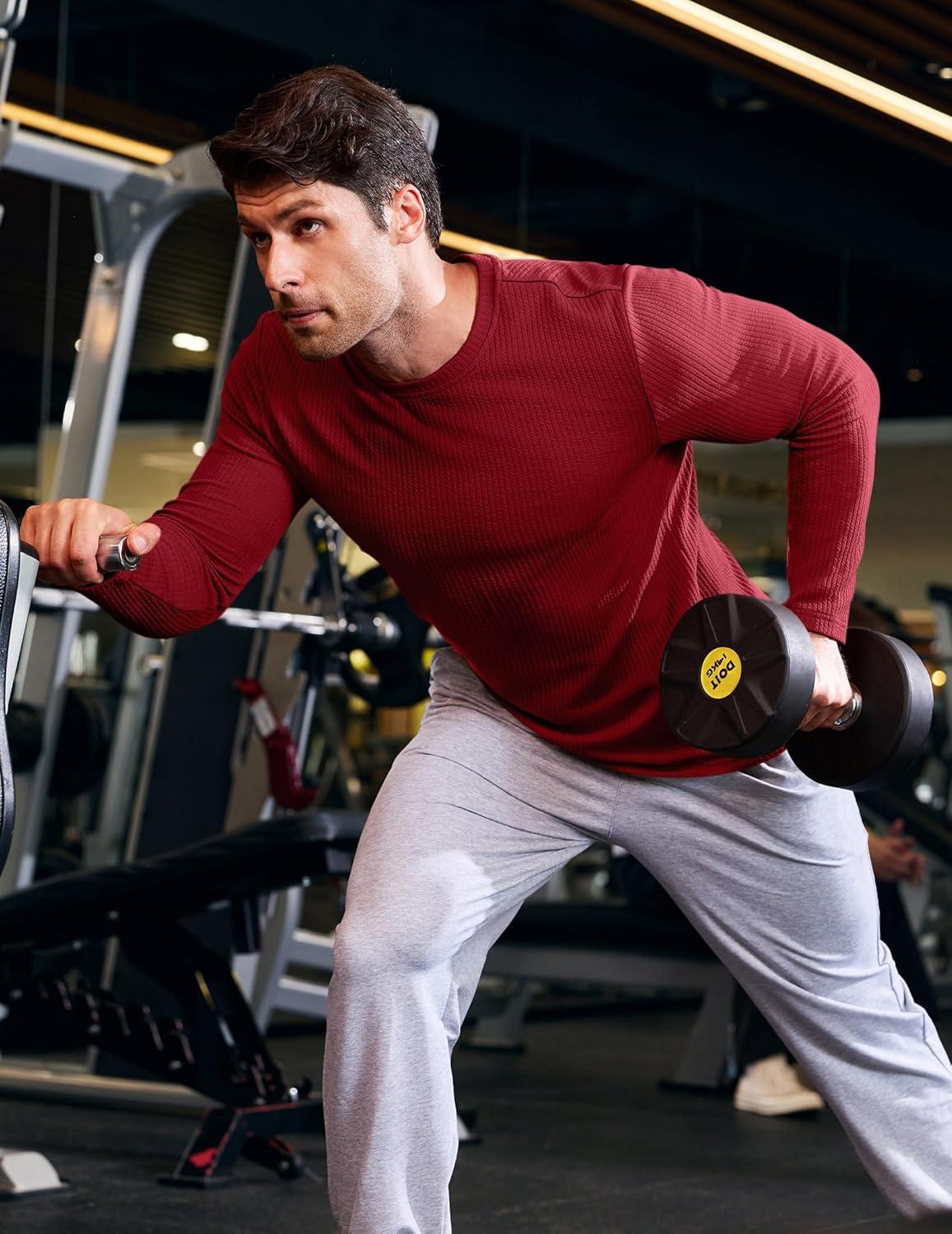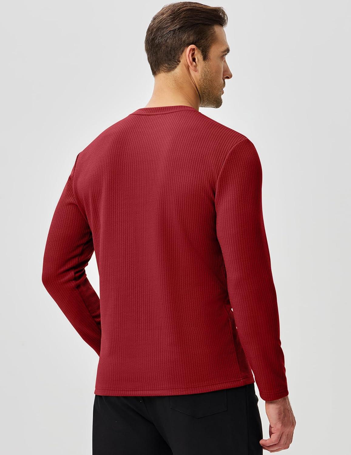 JMIERR Mens Long Sleeve Muscle T Shirts Casual Crewneck Knitted Longline Textured Tee Shirts for Gym Workout(Red Dahlia)