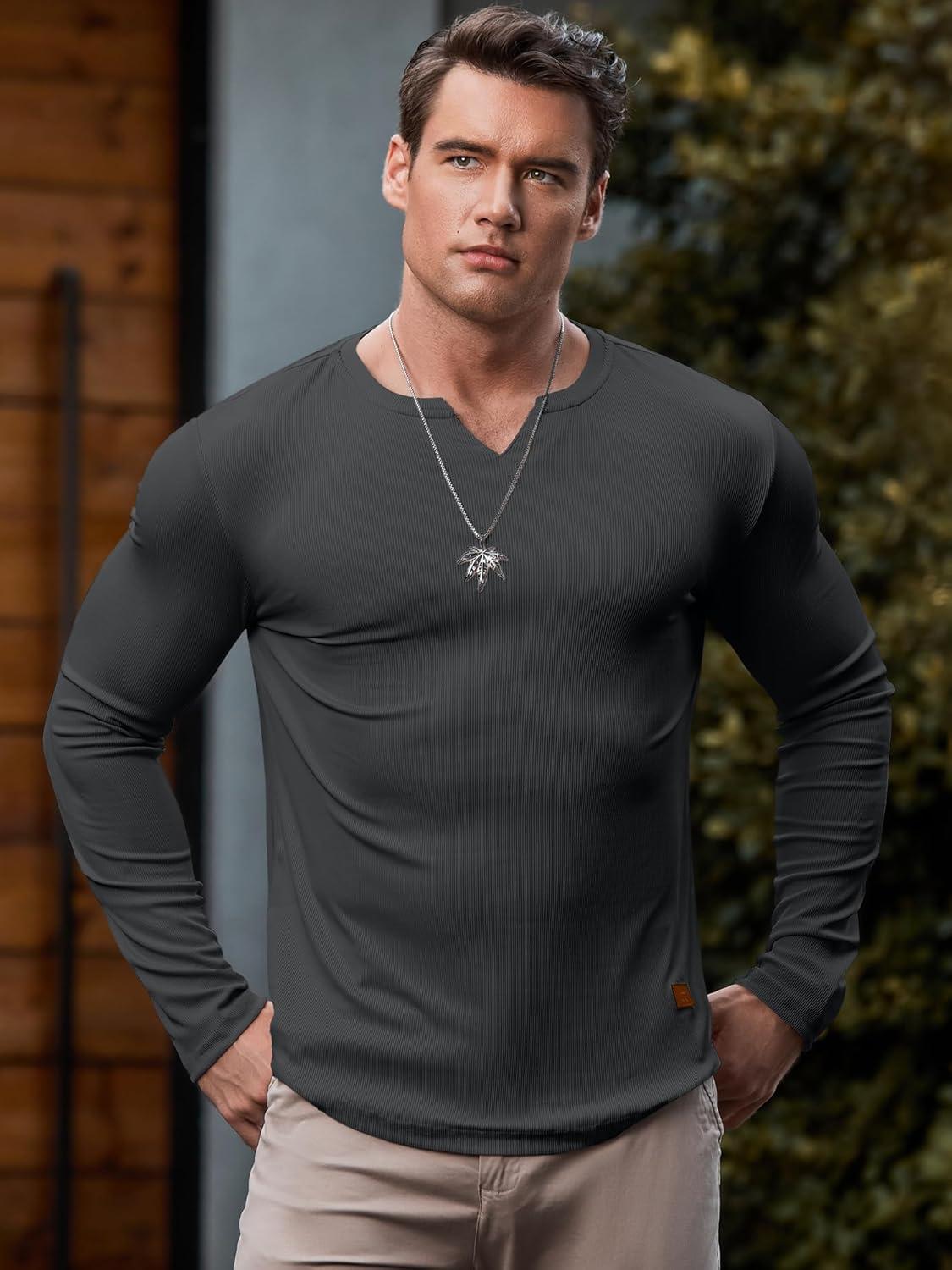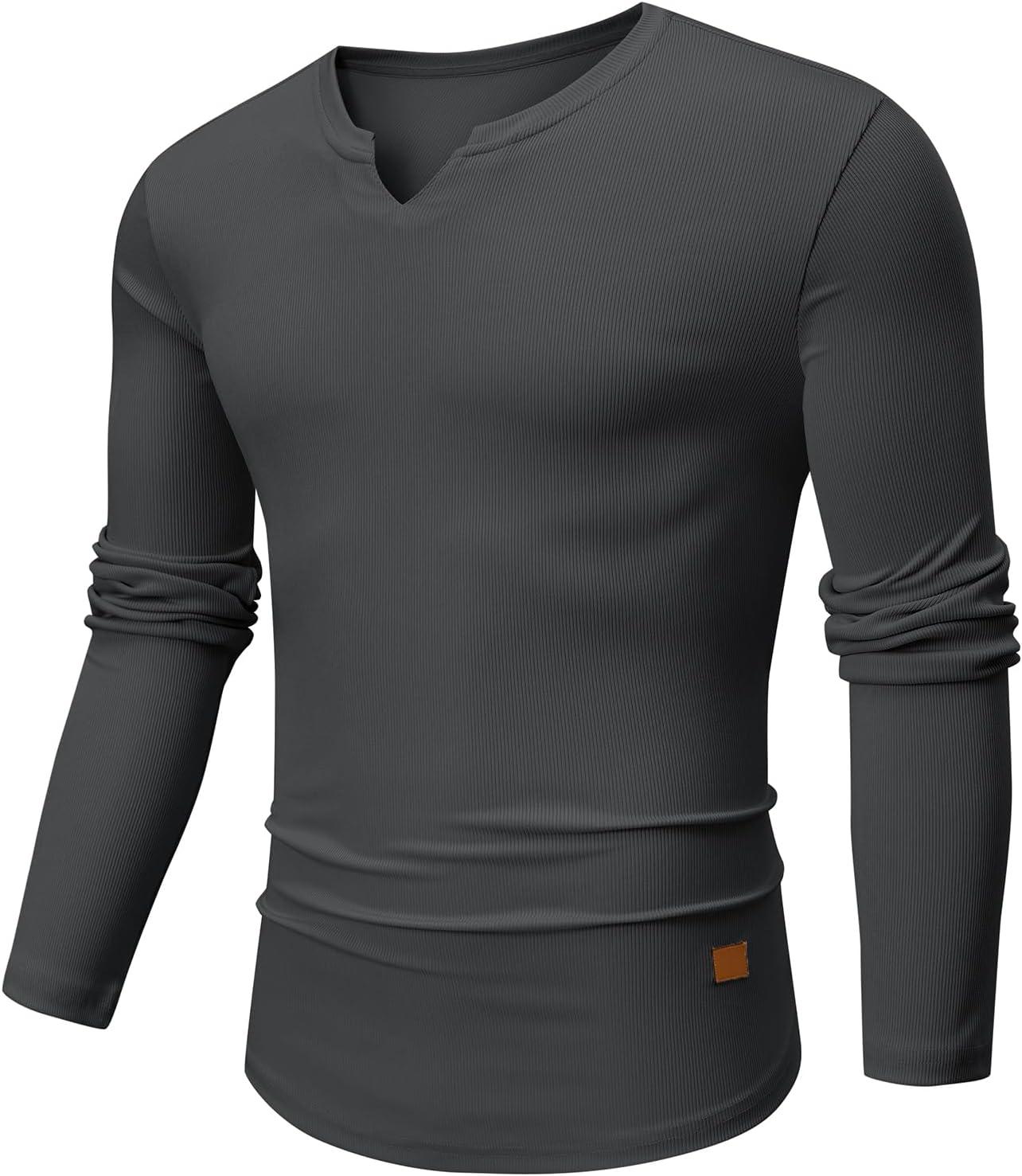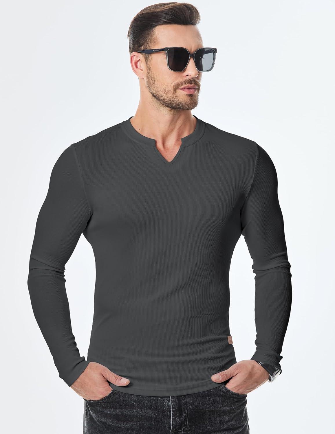 JMIERR Mens Long Sleeve Muscle T Shirts Casual V-Neck Longline Ribbed Tee Shirts(Dark Grey)