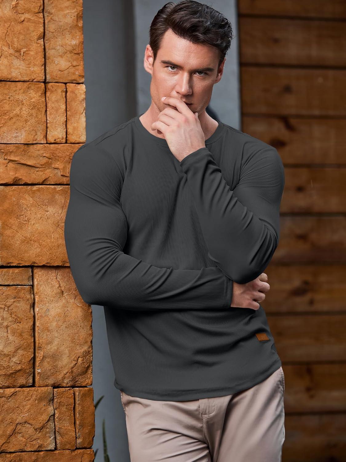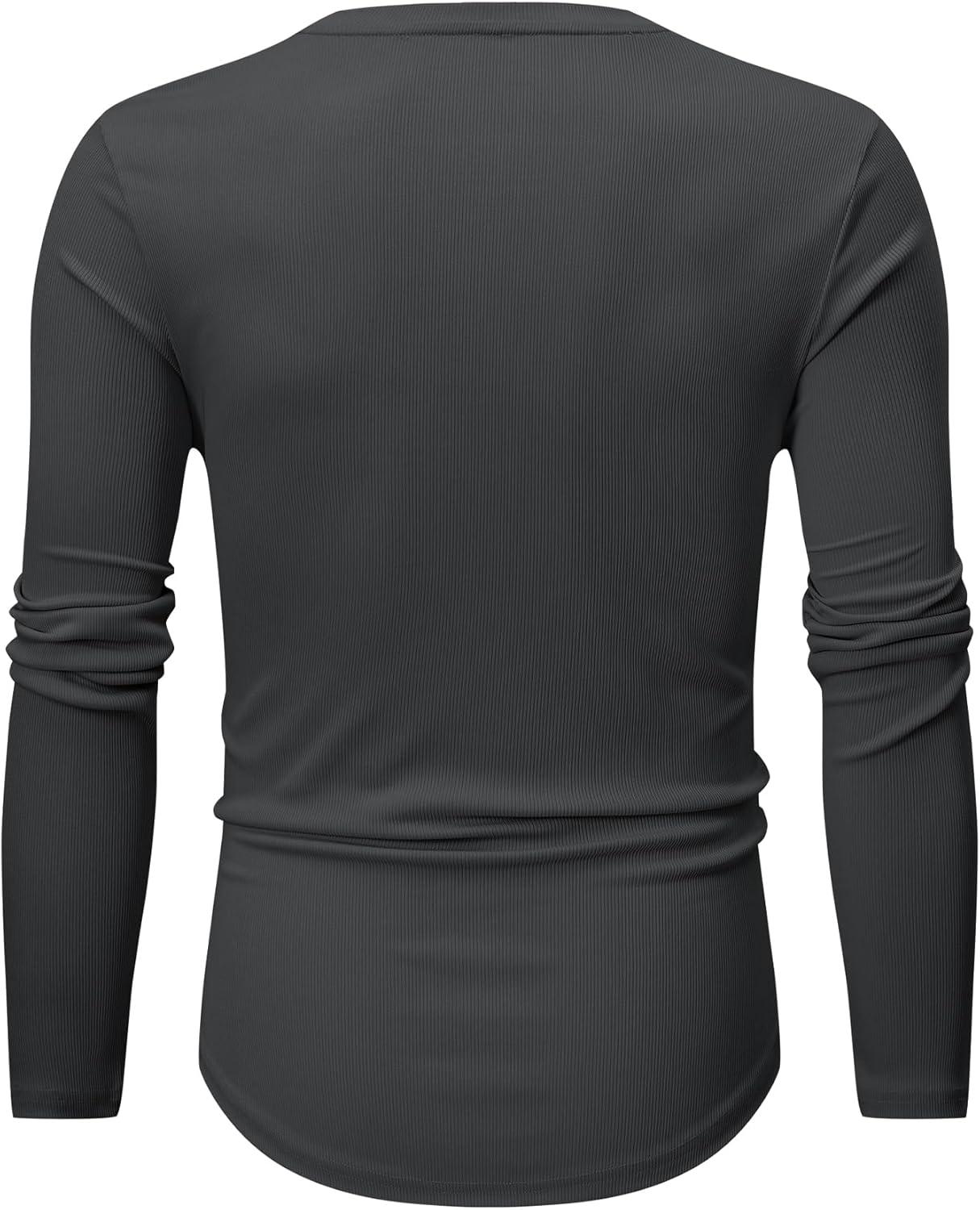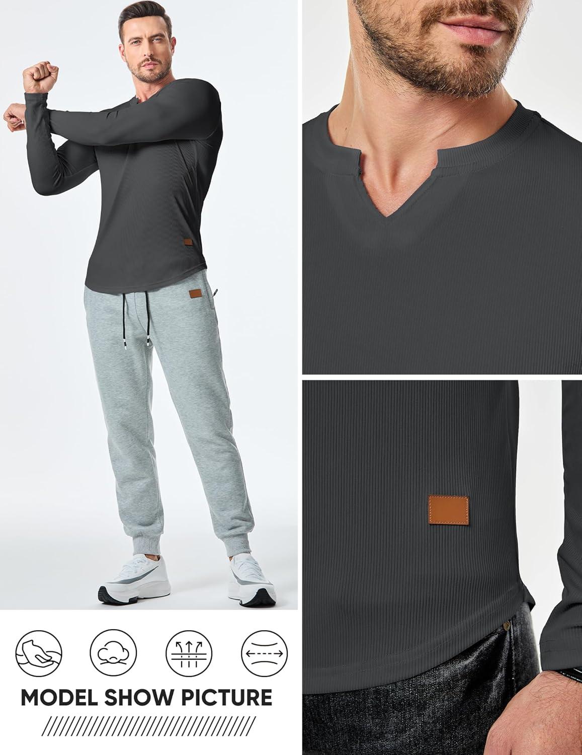 JMIERR Mens Long Sleeve Muscle T Shirts Casual V-Neck Longline Ribbed Tee Shirts(Dark Grey)