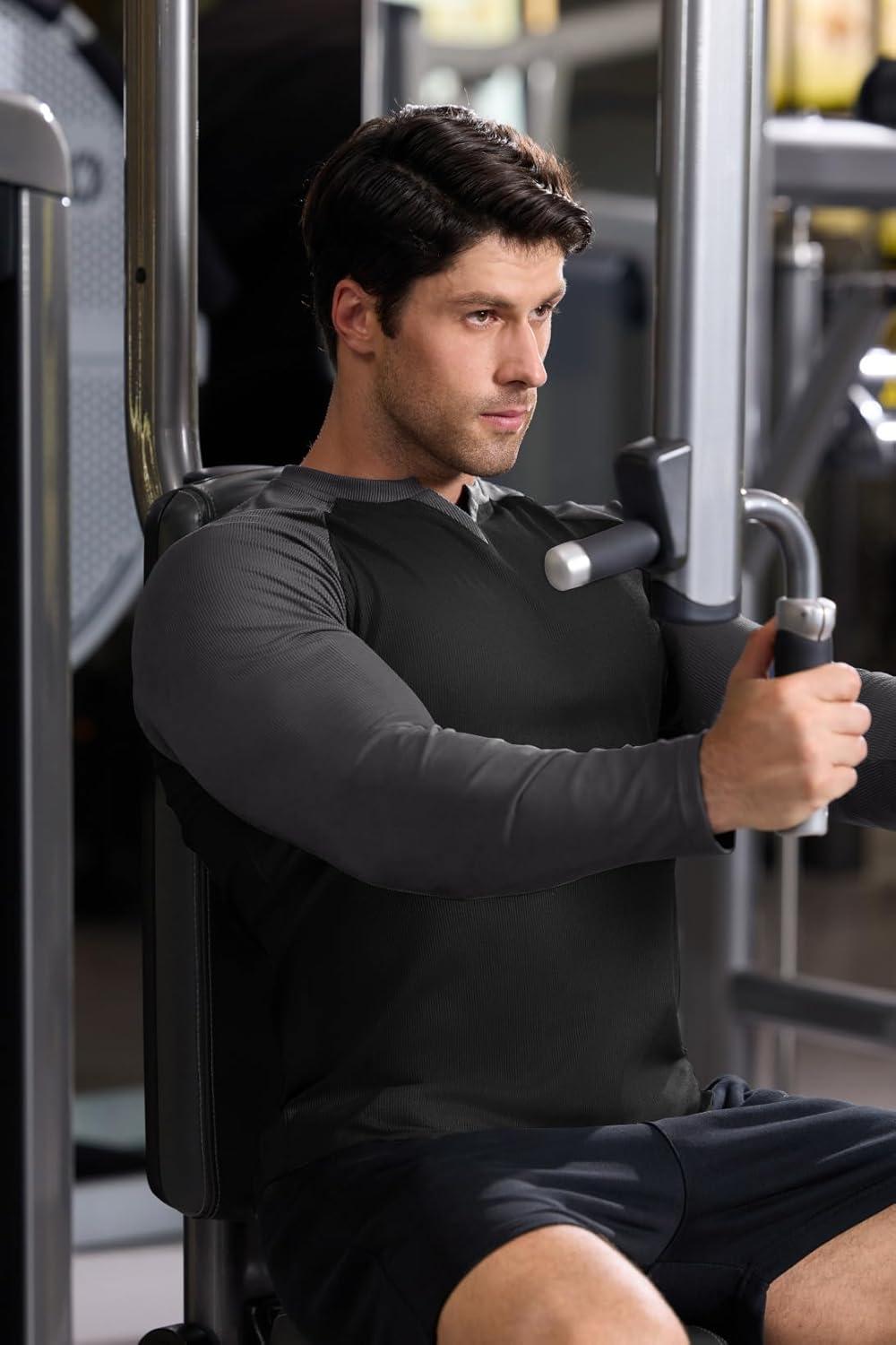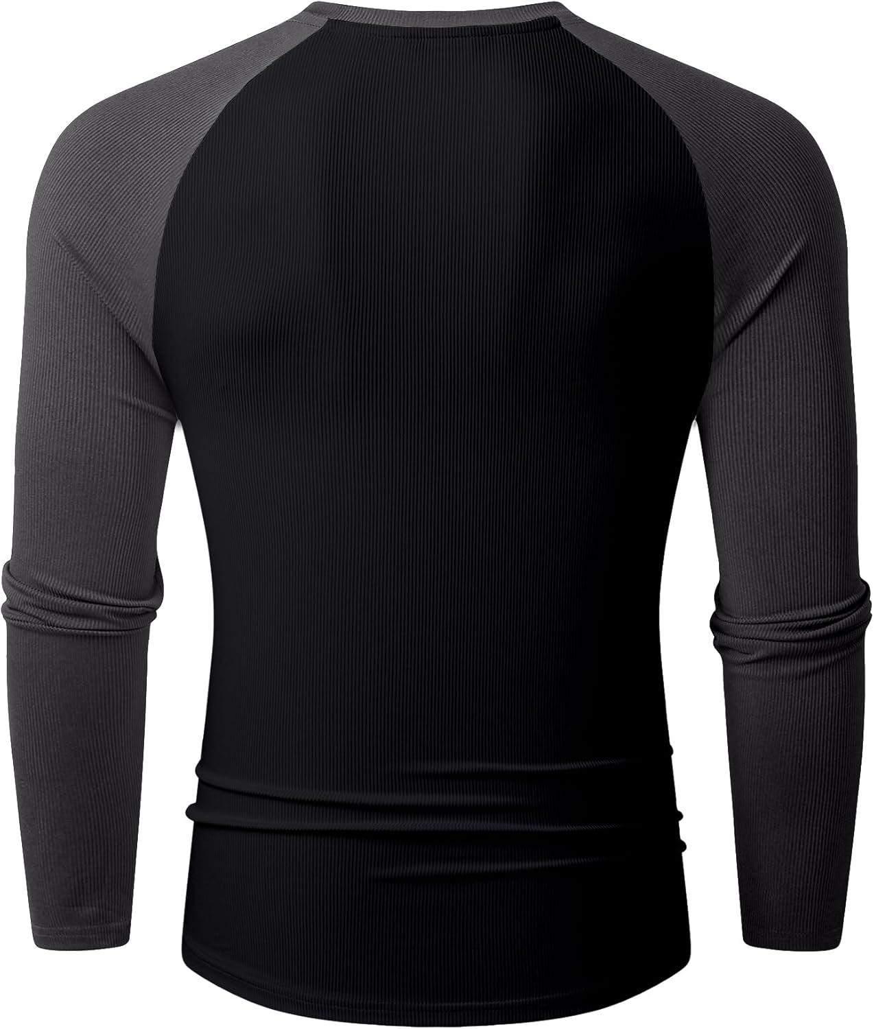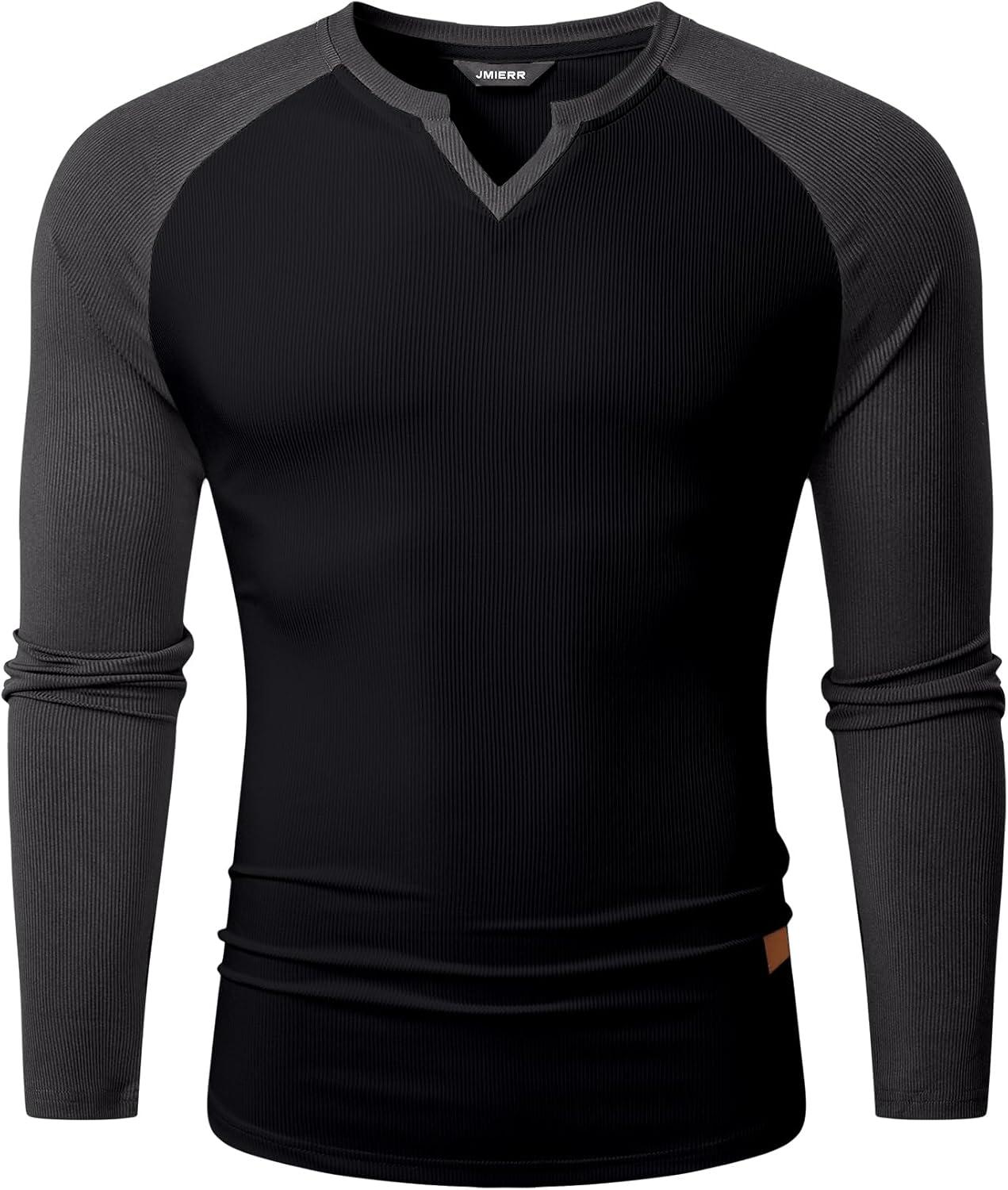 JMIERR Mens Long Sleeve Muscle T Shirts Casual V-Neck Longline Ribbed Tee Shirts(T Black & Grey)