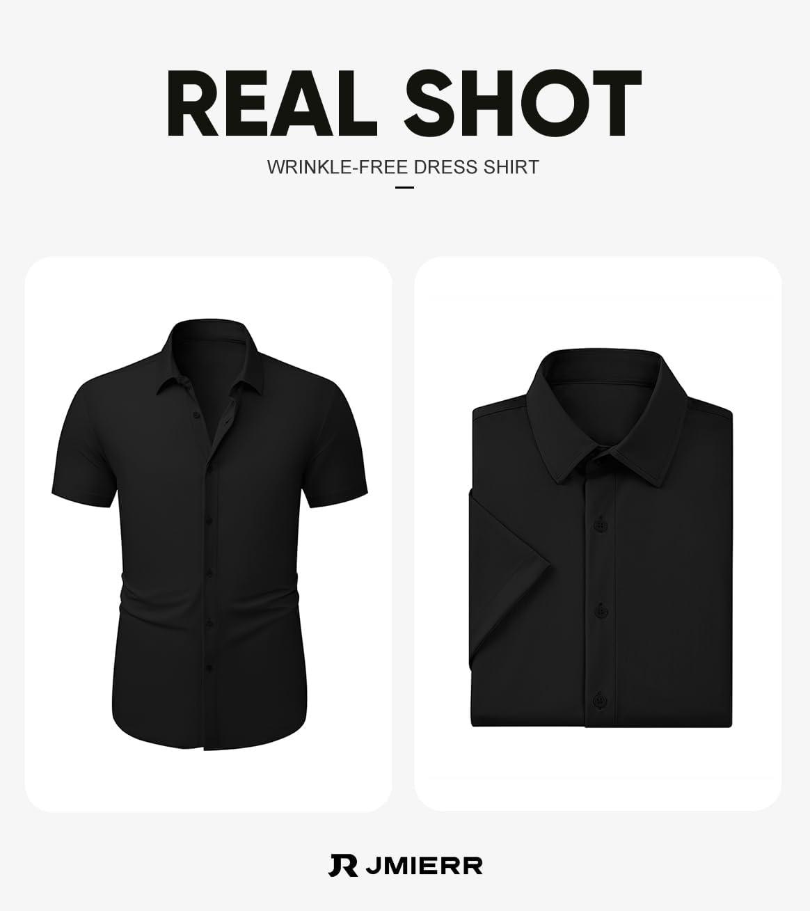 JMIERR Men’s Muscle Fit Dress Shirts Summer Casual Button Down Short Sleeve High Stretch Wrinkle-Free Shirt(1 Black)
