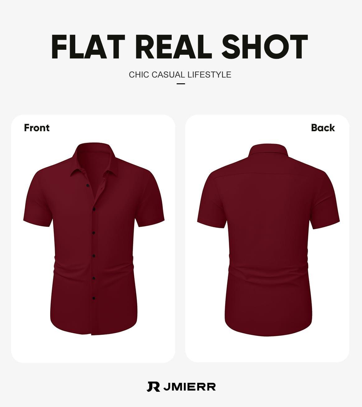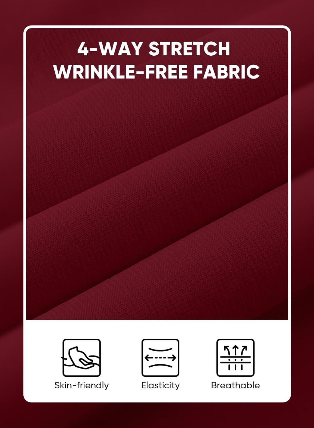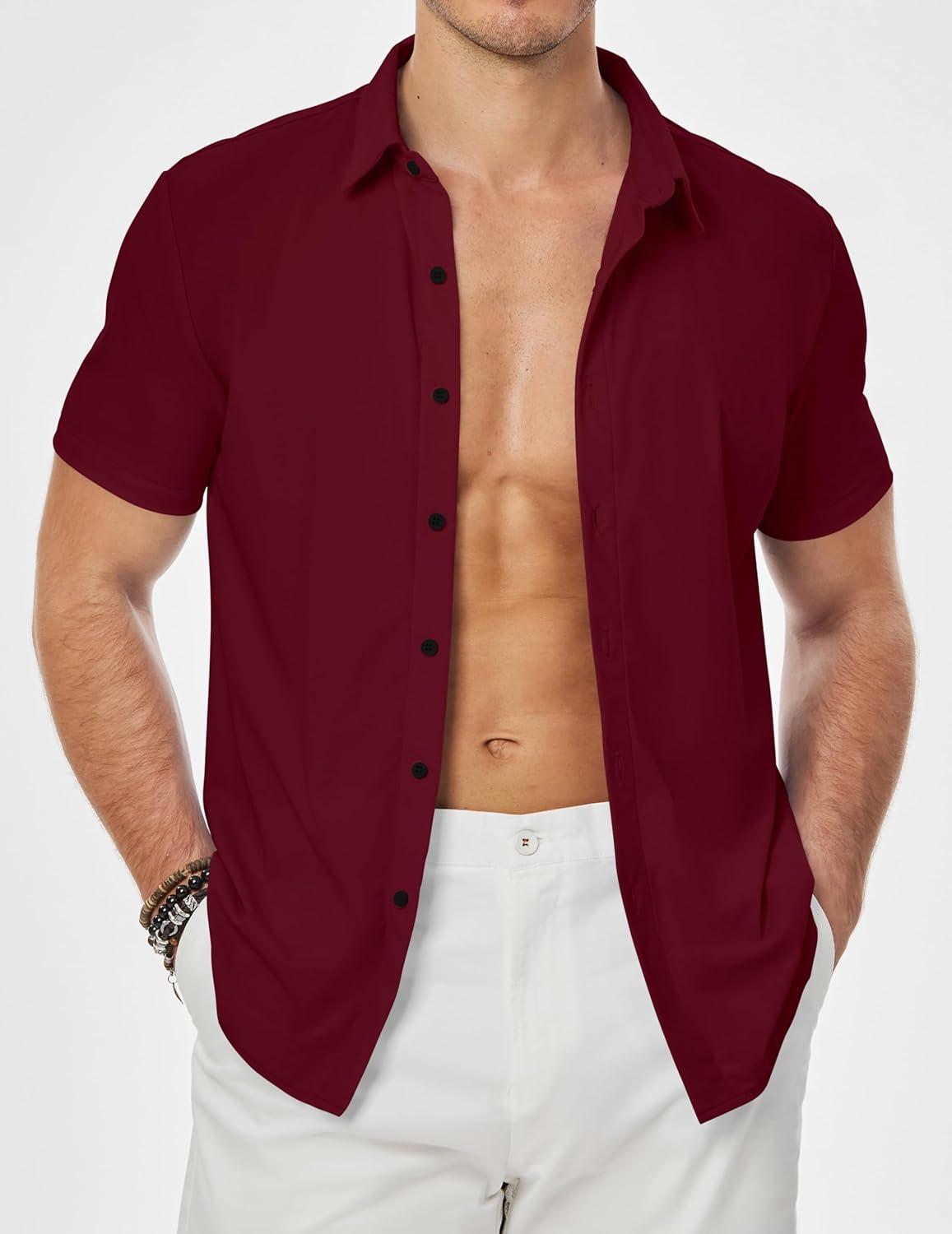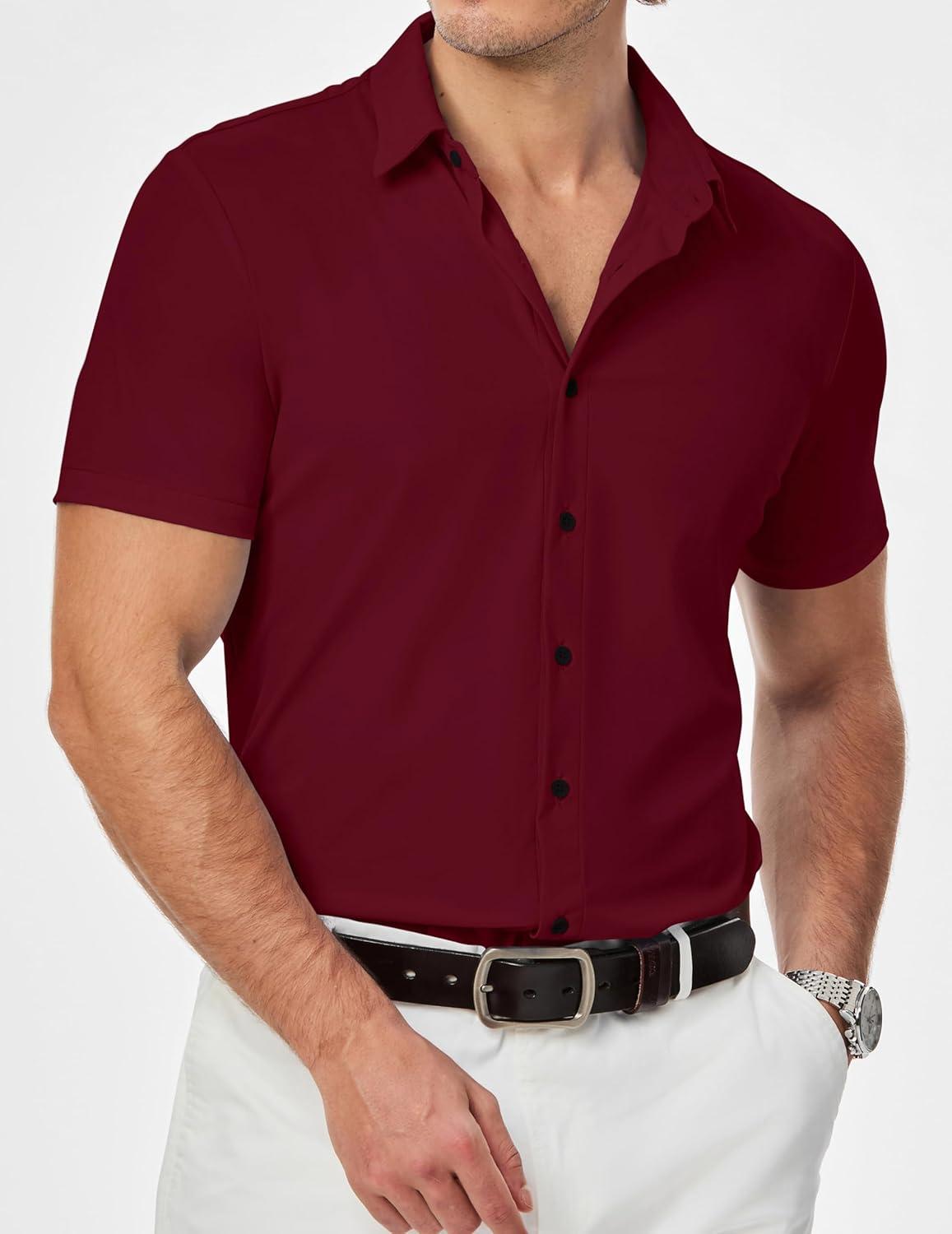 JMIERR Men’s Muscle Fit Dress Shirts Summer Casual Button Down Short Sleeve High Stretch Wrinkle-Free Shirt(B Red)