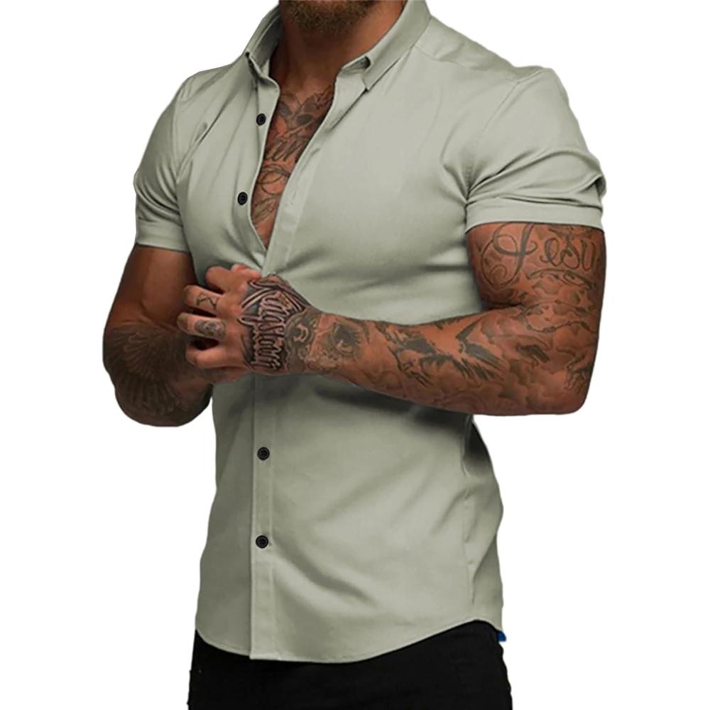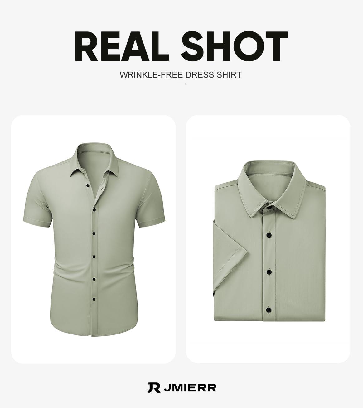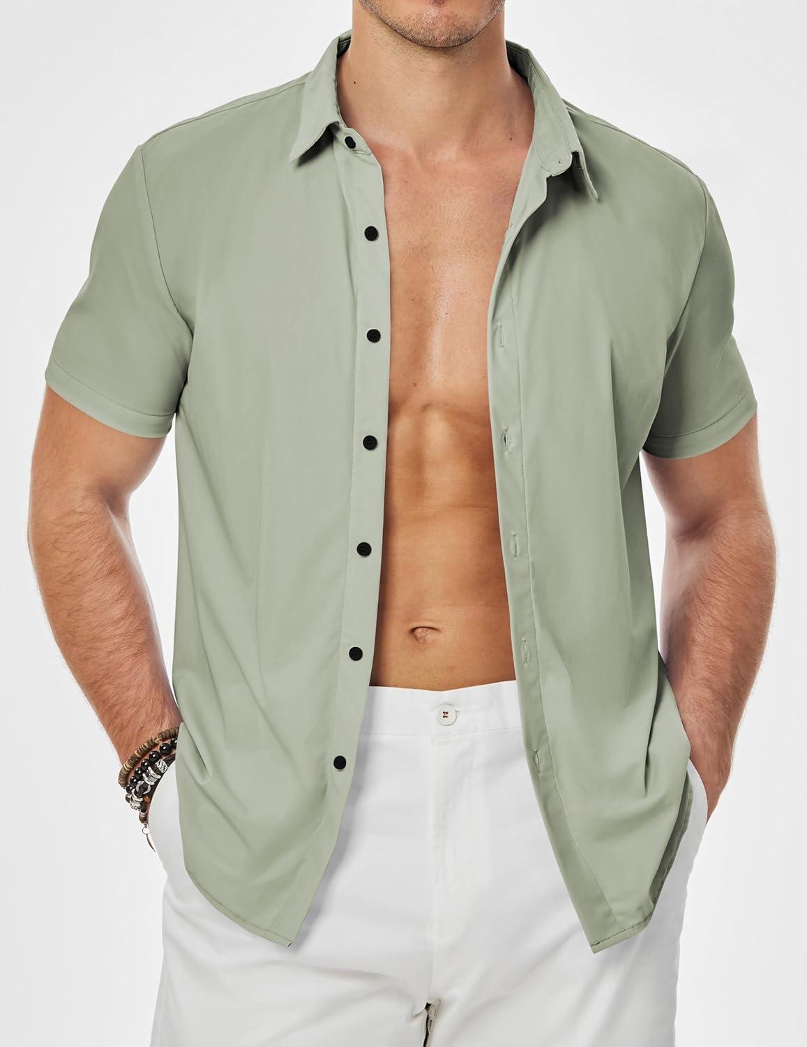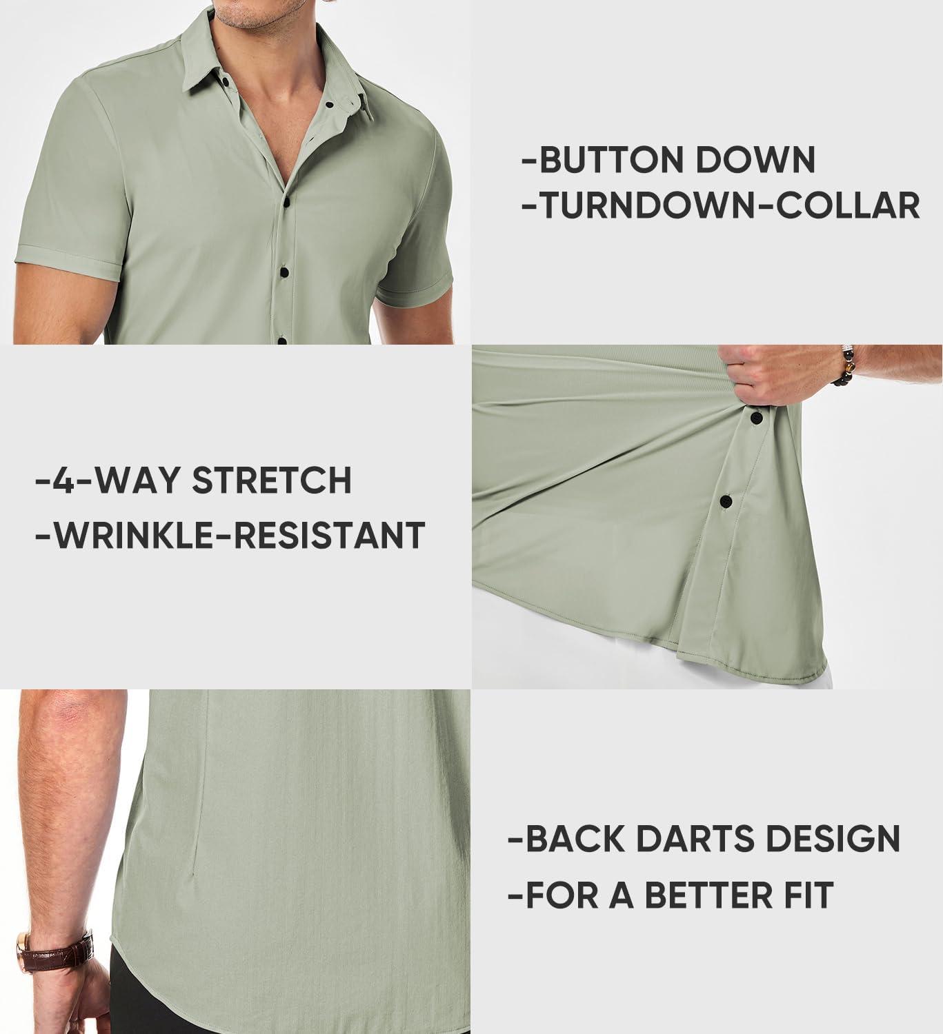 JMIERR Men’s Muscle Fit Dress Shirts Summer Casual Button Down Short Sleeve High Stretch Wrinkle-Free Shirt(C Light Green)