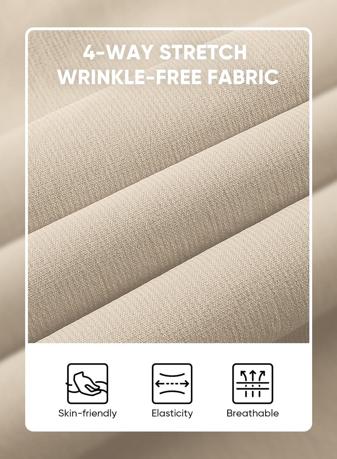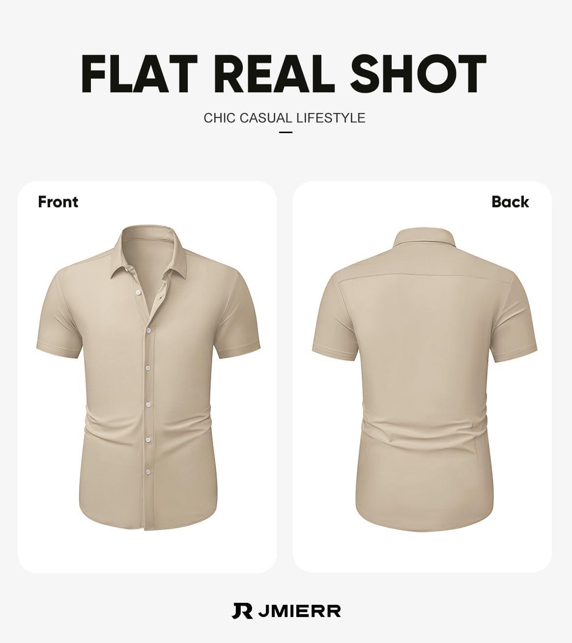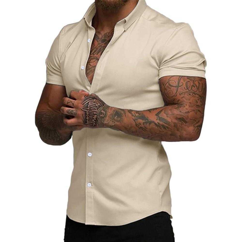 JMIERR Men’s Muscle Fit Dress Shirts Summer Casual Button Down Short Sleeve High Stretch Wrinkle-Free Shirt(D Beige)