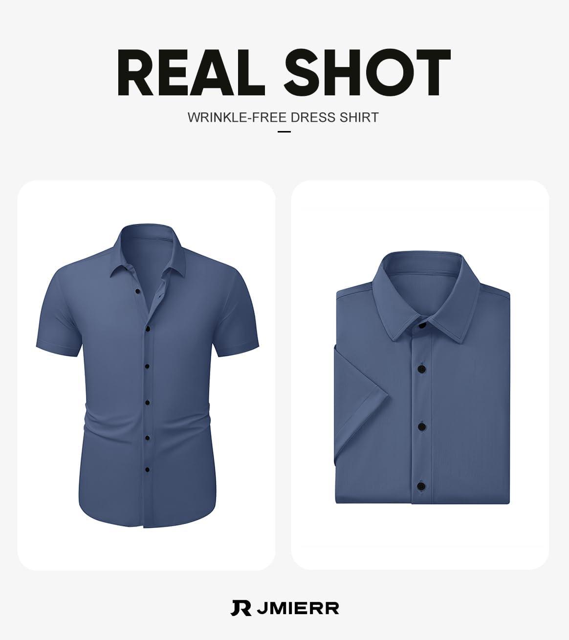 JMIERR Men’s Muscle Fit Dress Shirts Summer Casual Button Down Short Sleeve High Stretch Wrinkle-Free Shirt(D Blue)