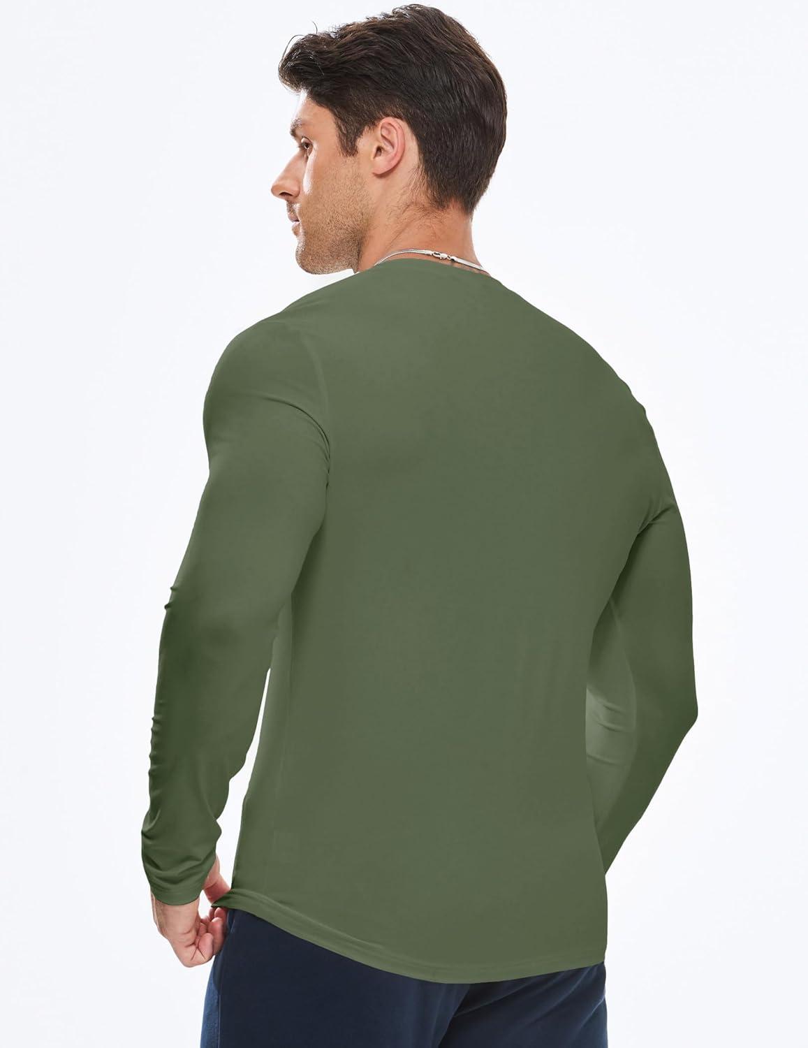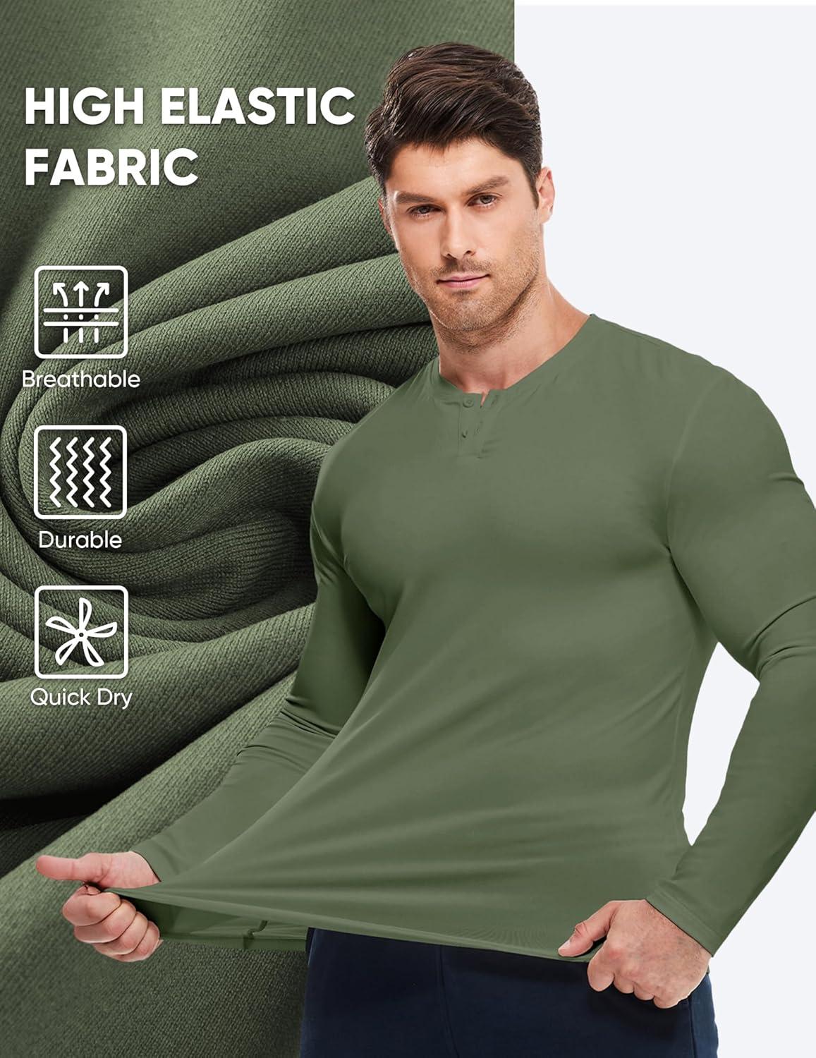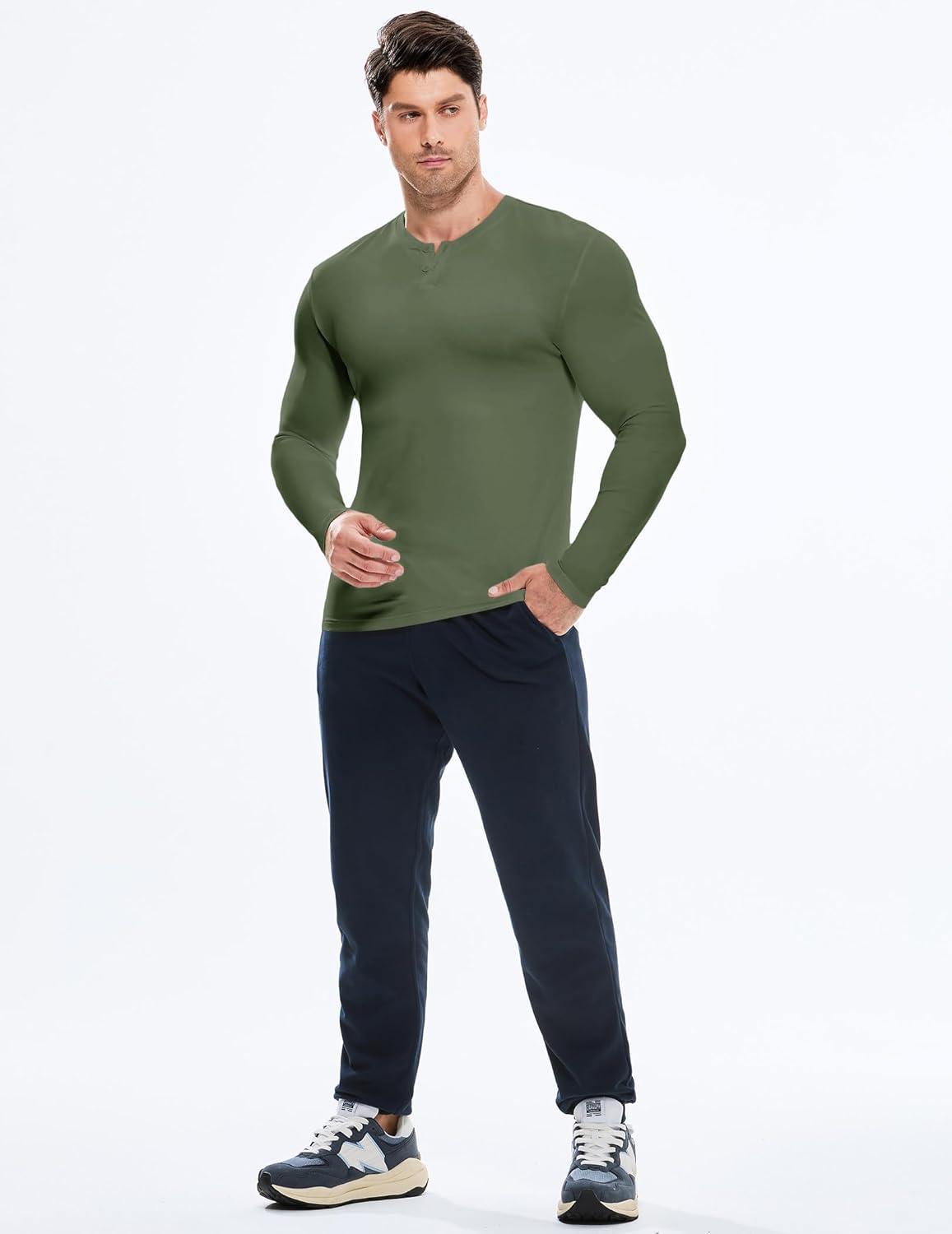 JMIERR Mens Muscle Slim Henley Shirt Button V-Neck Long Sleeve Gym Workout Athletic T Shirts(Green)