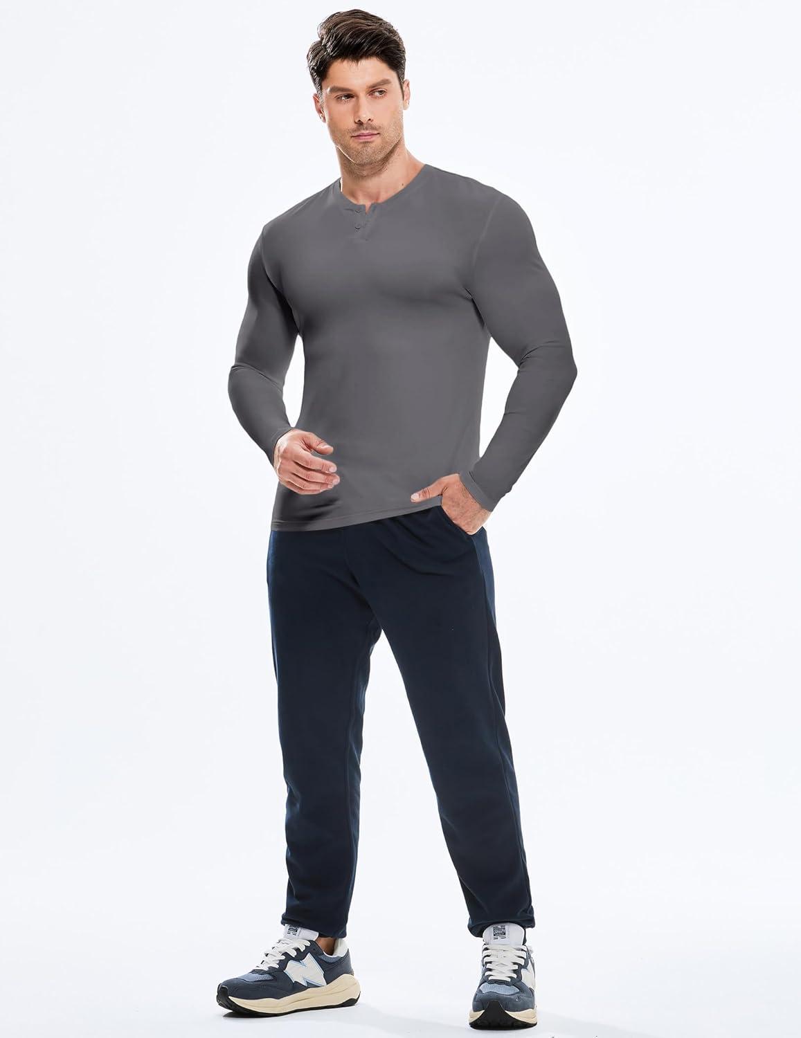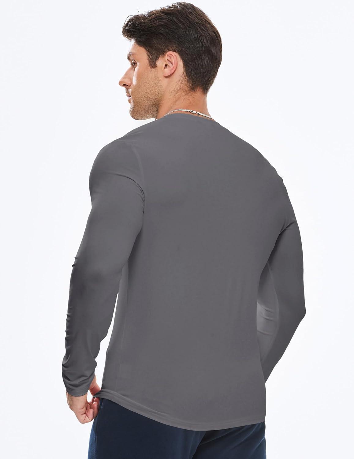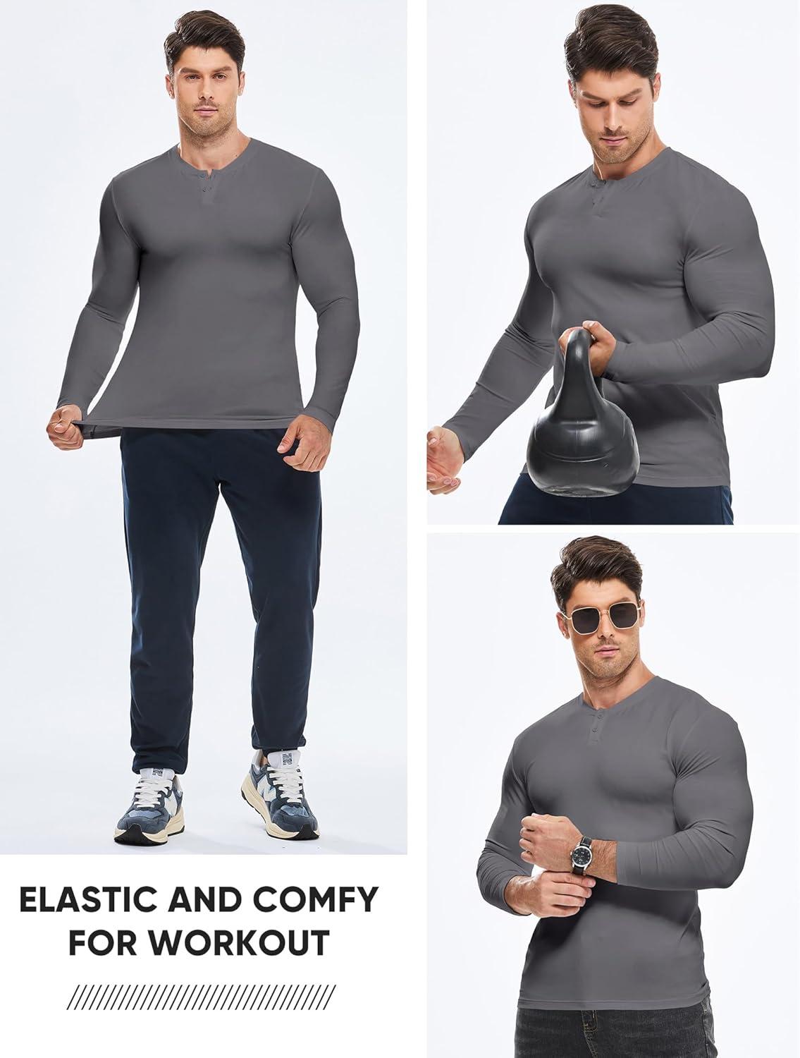 JMIERR Mens Muscle Slim Henley Shirt Button V-Neck Long Sleeve Gym Workout Athletic T Shirts(Grey)