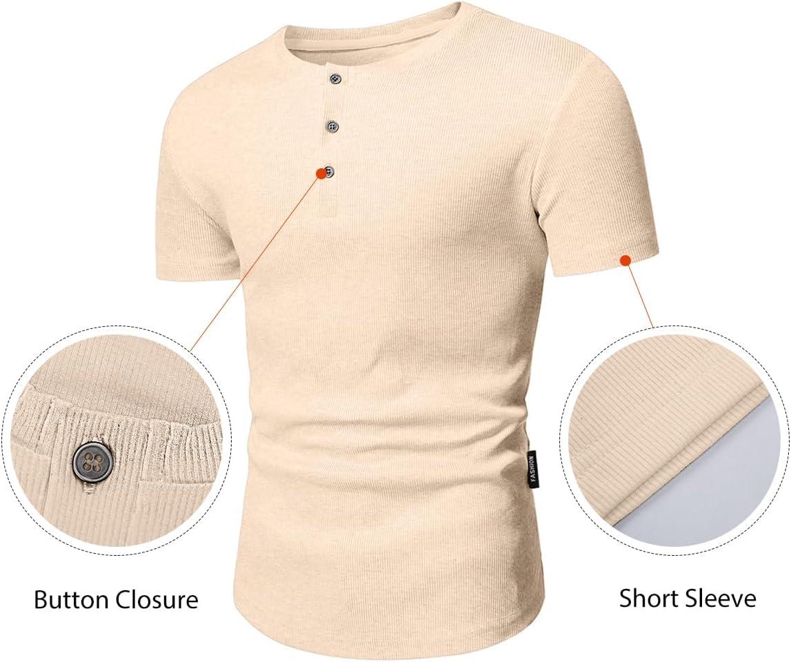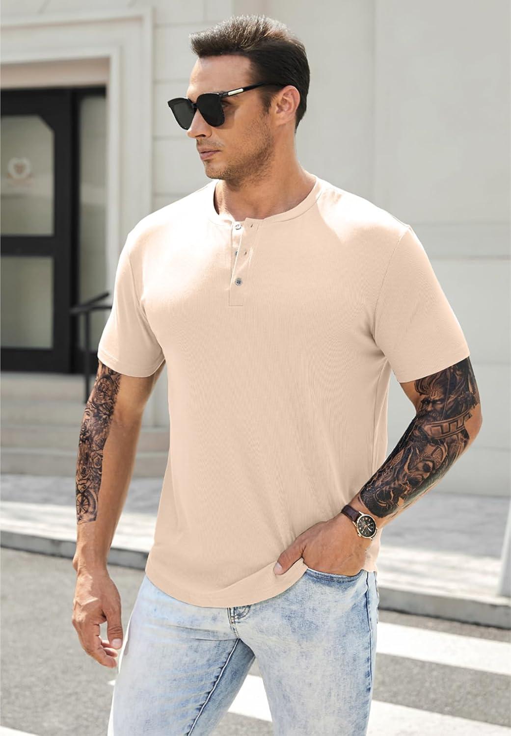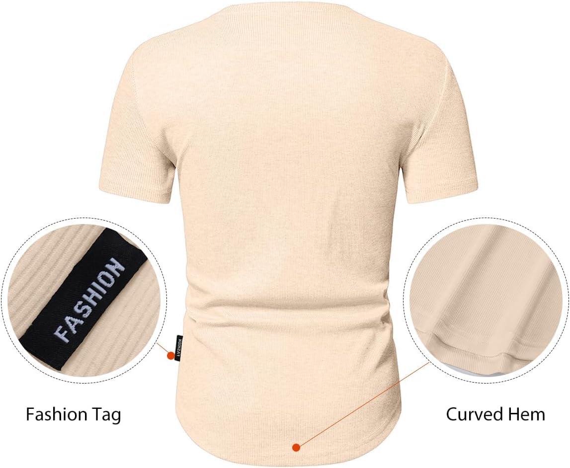 JMIERR Men’s Muscle Slim Henley Shirts Crewneck Longline T-Shirt Gym Workout Athletic Shirt Tees with Button(A Apricot)