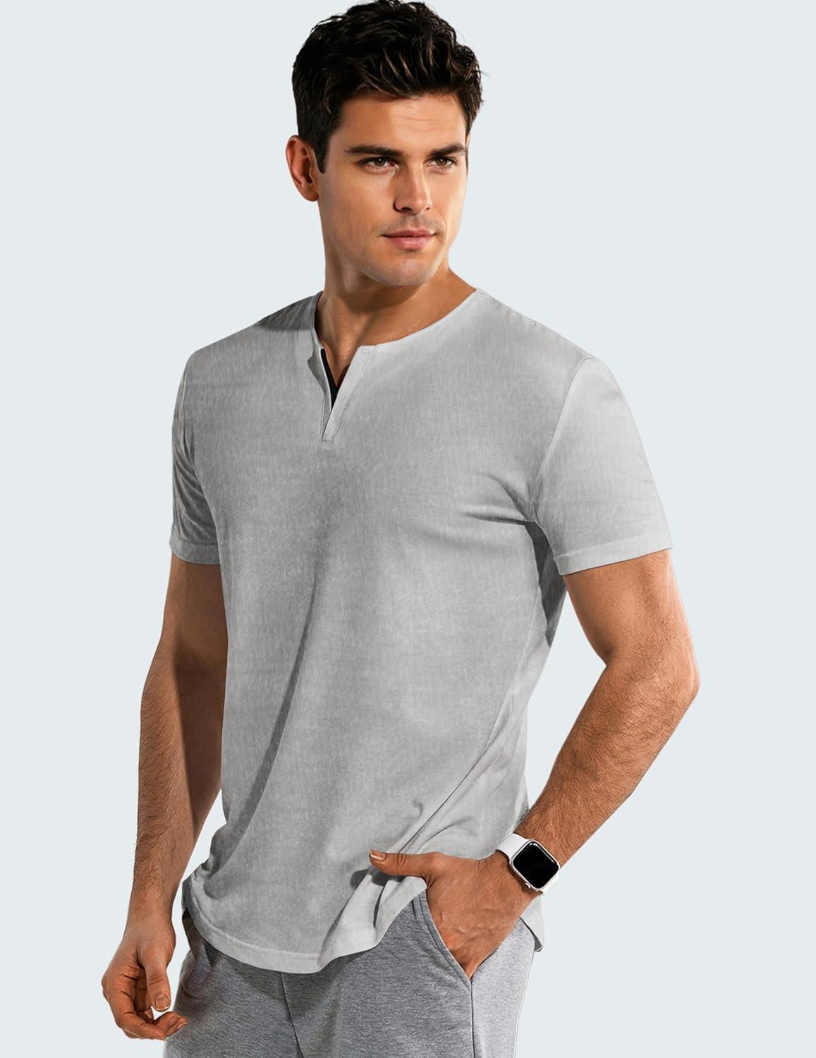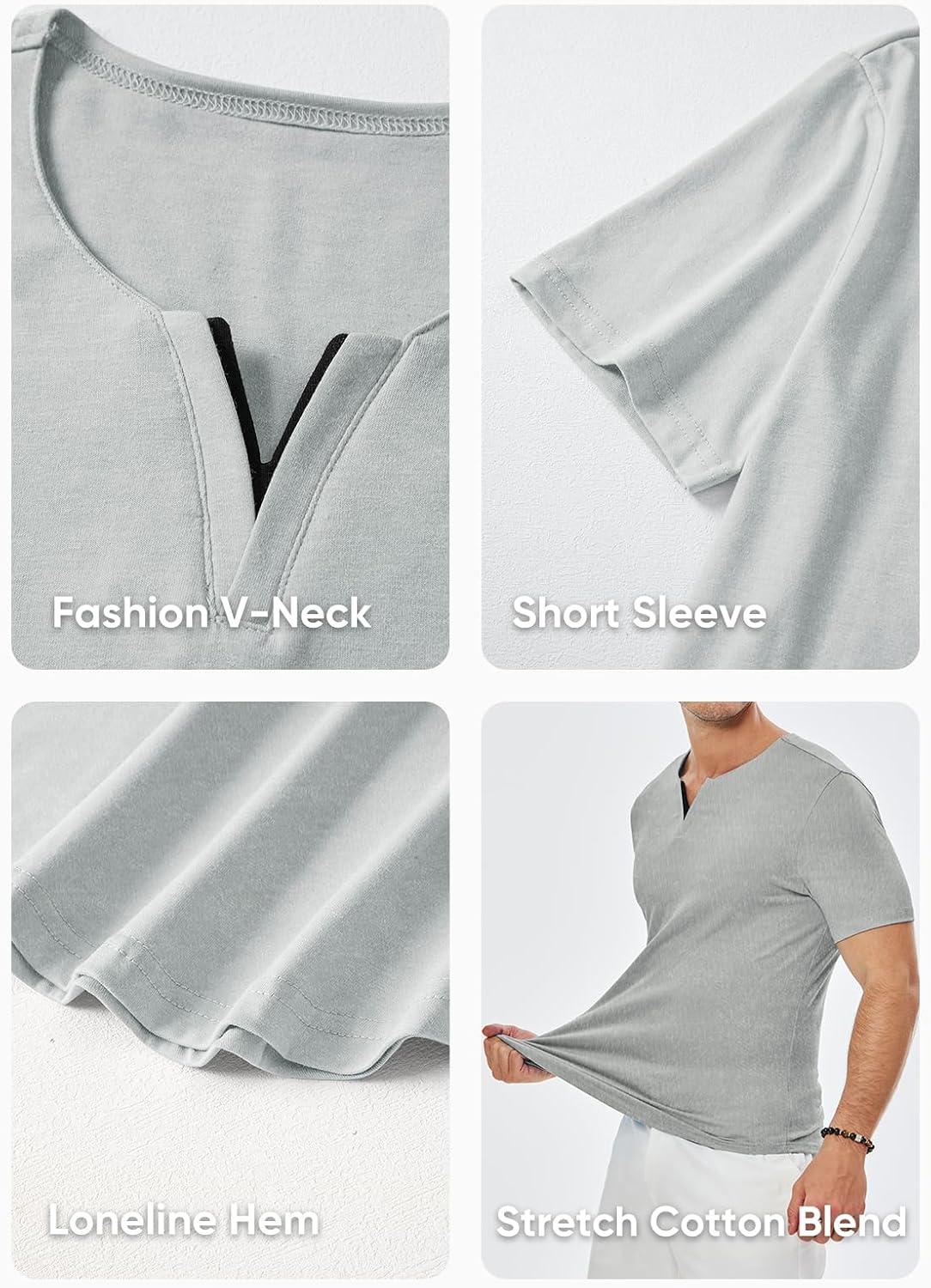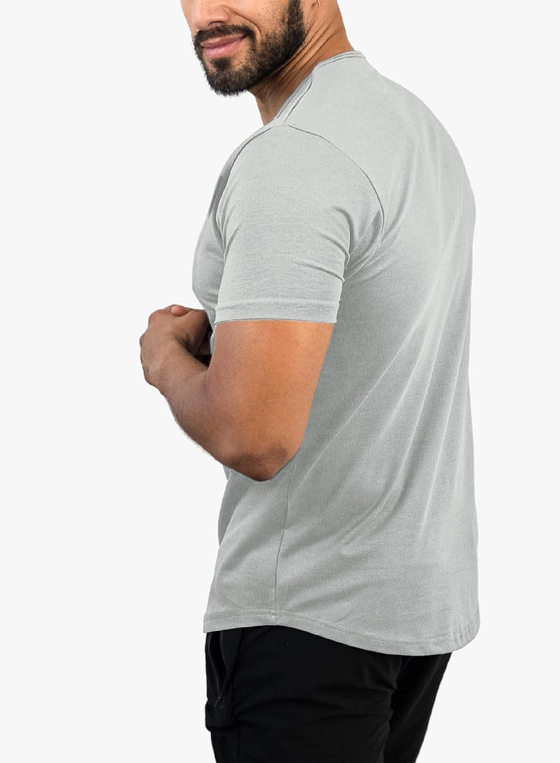 JMIERR Mens Muscle Slim T Shirts Summer V Neck Gym Shirt Casual Cotton Workout Athletic Longline Tees(B Light Grey)