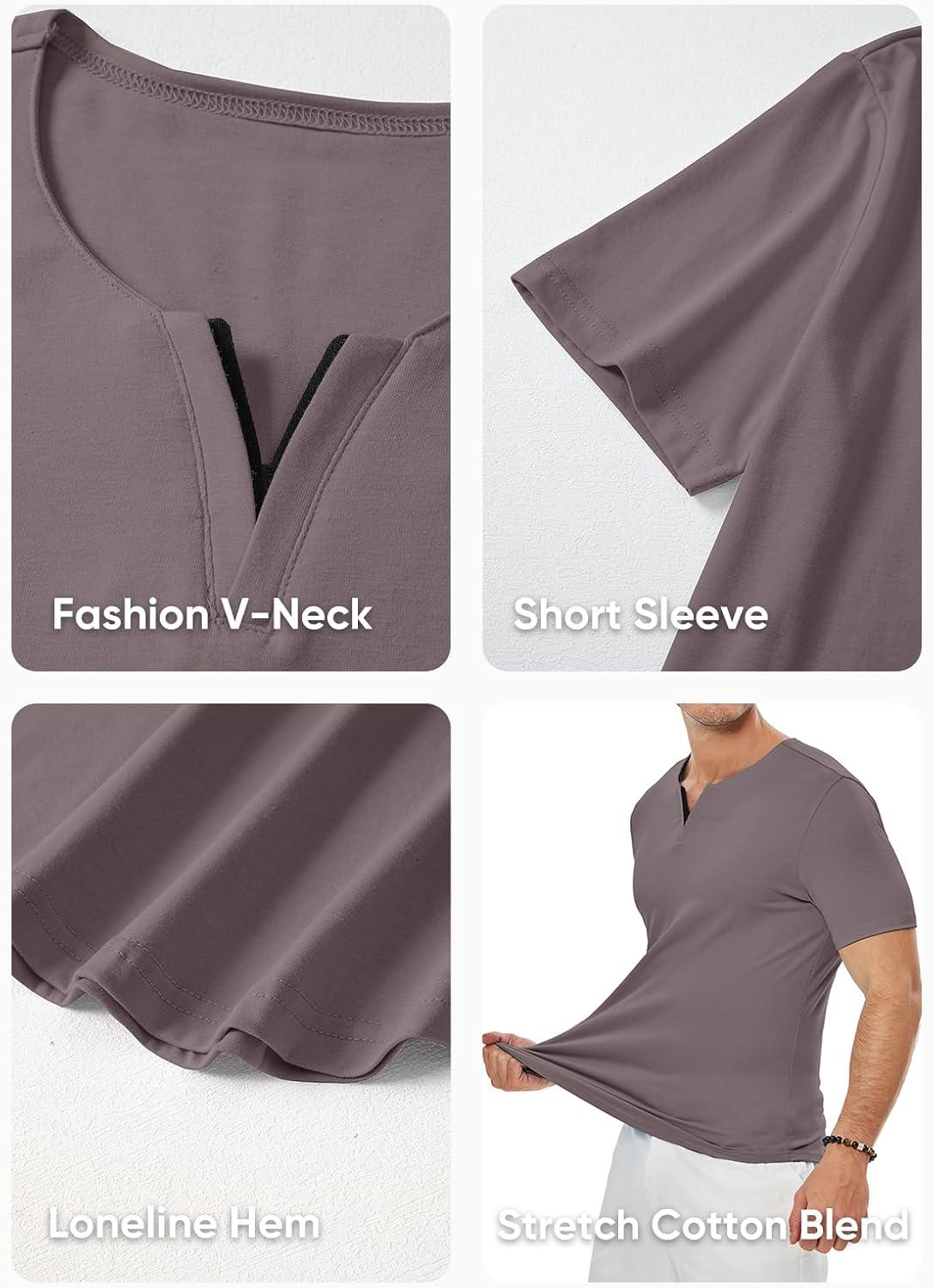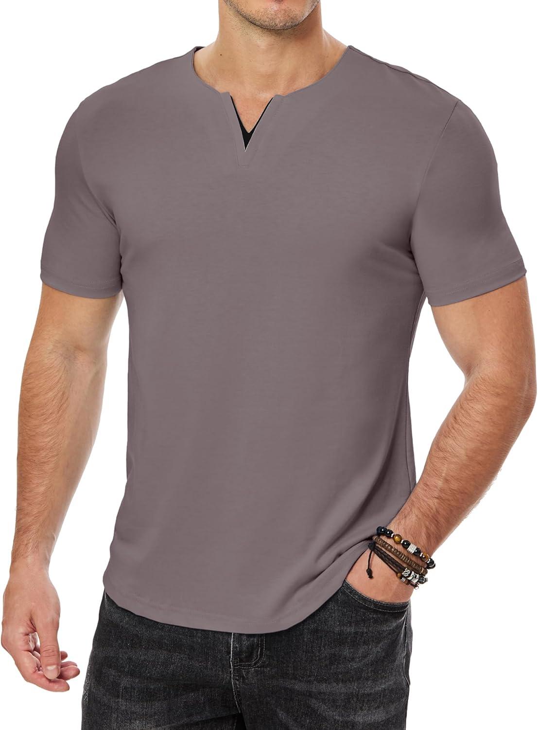 JMIERR Mens Muscle Slim T Shirts Summer V Neck Gym Shirt Casual Cotton Workout Athletic Longline Tees(E Brown Grey)