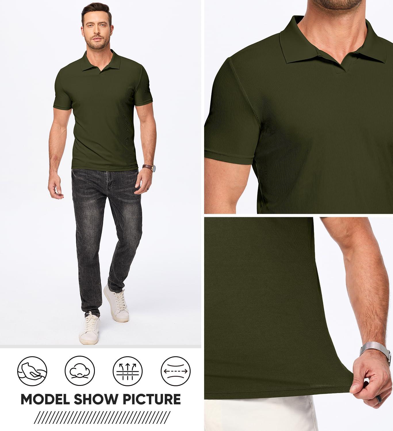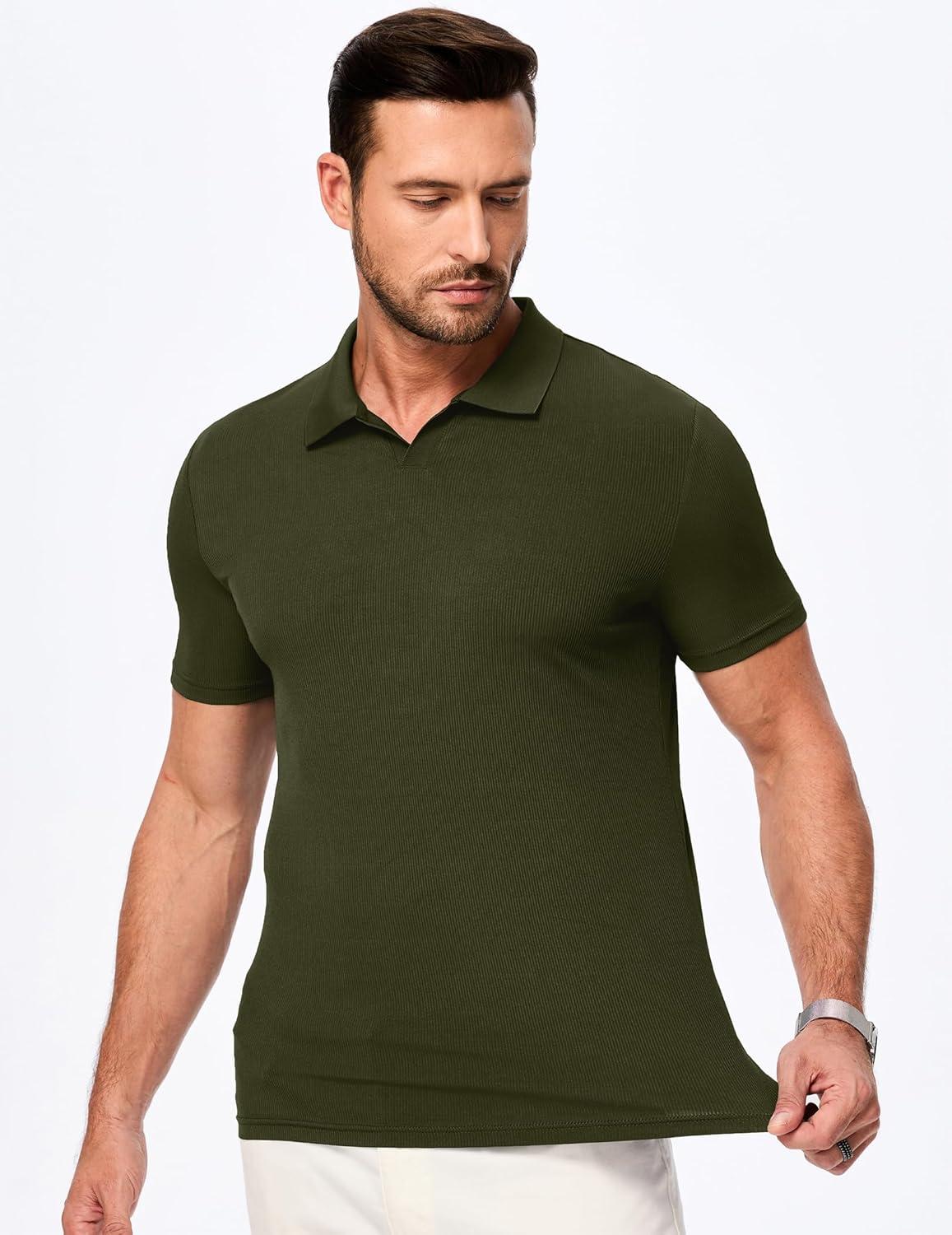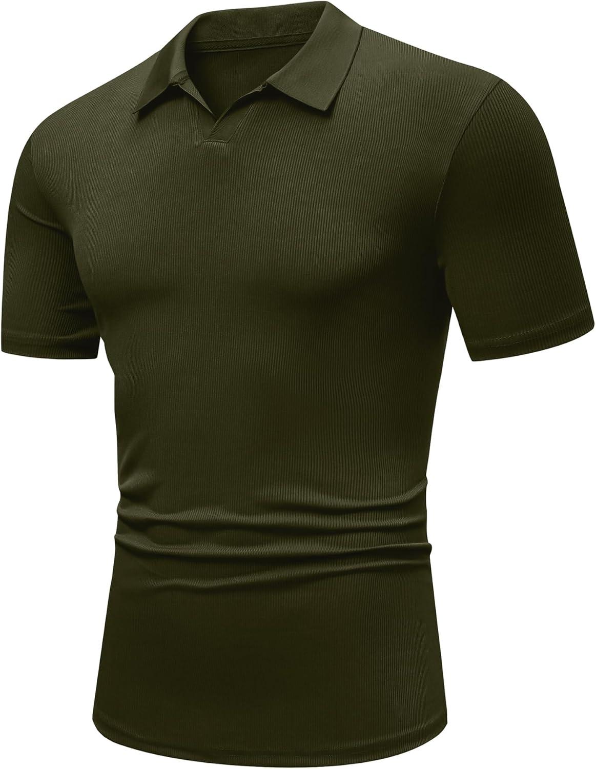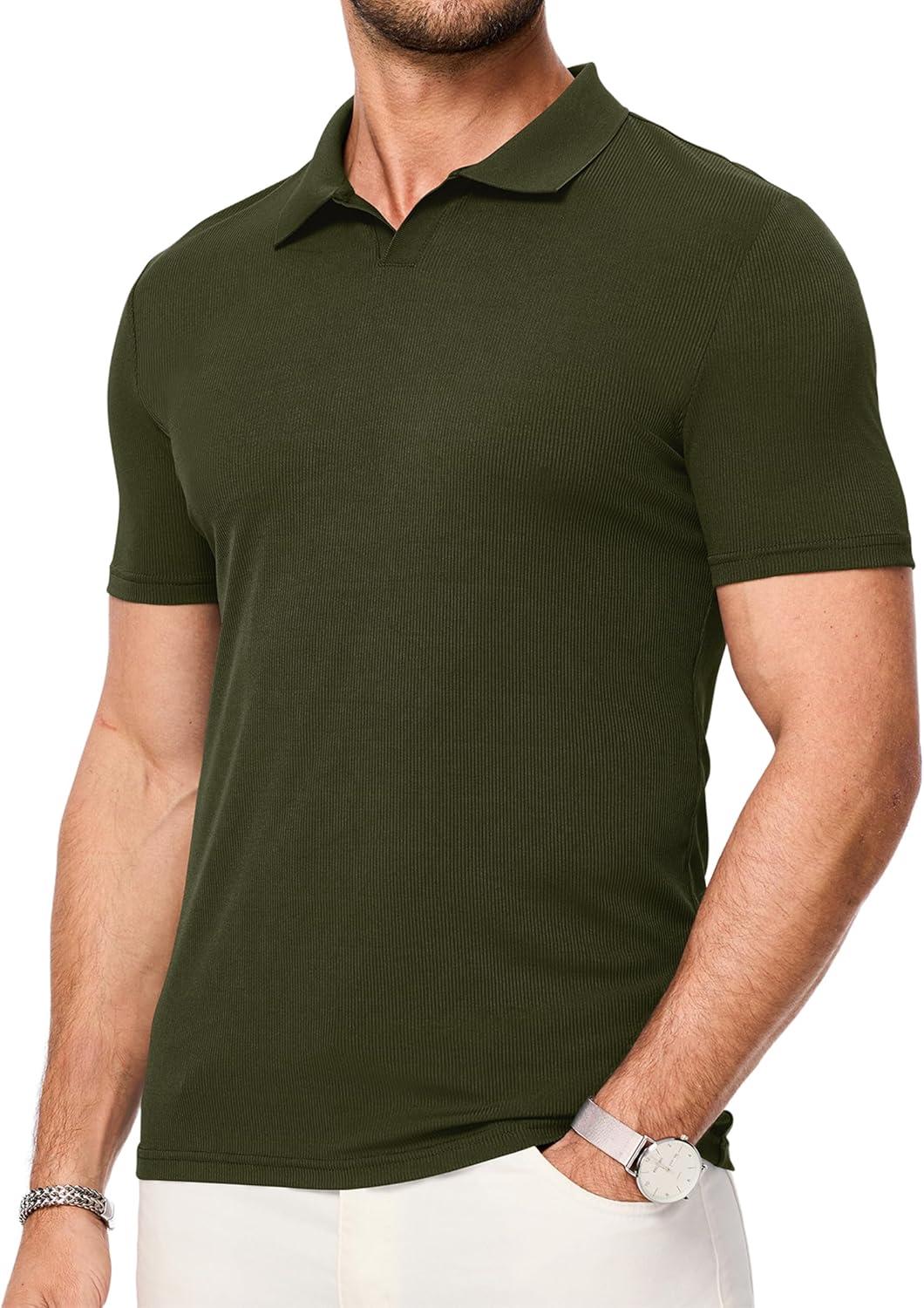 JMIERR Men’s Muscle V Neck Polo Shirts Casual Short Sleeve Slim Fit Ribbed Golf T Shirt Athletic Tee(Green)