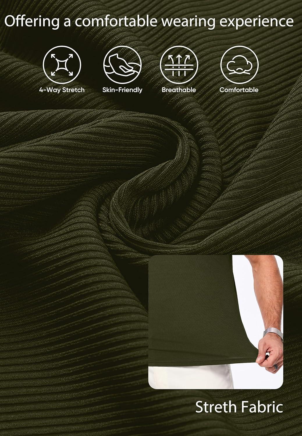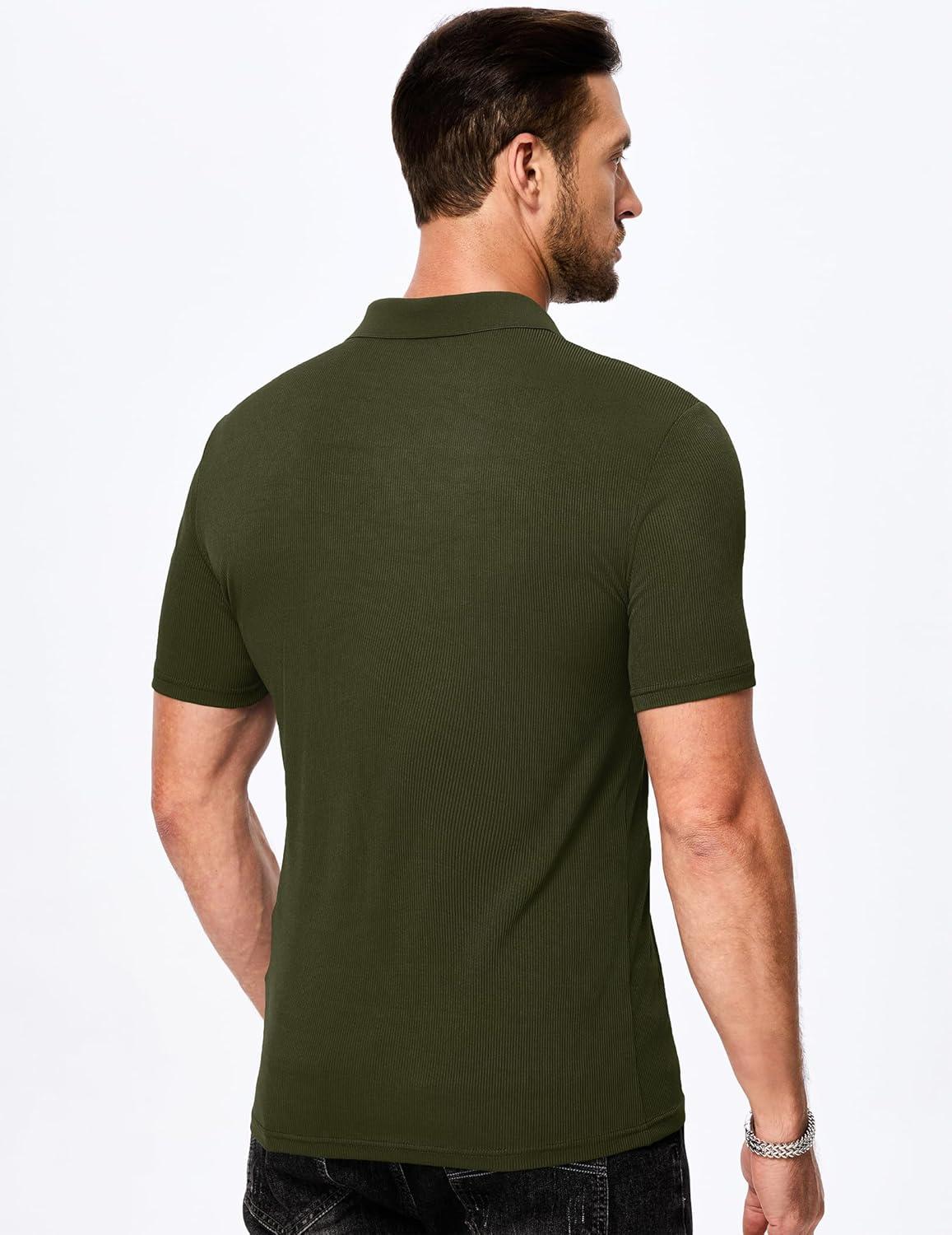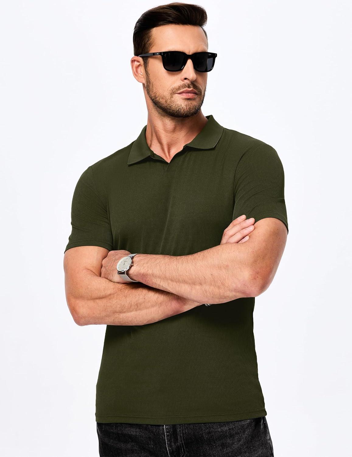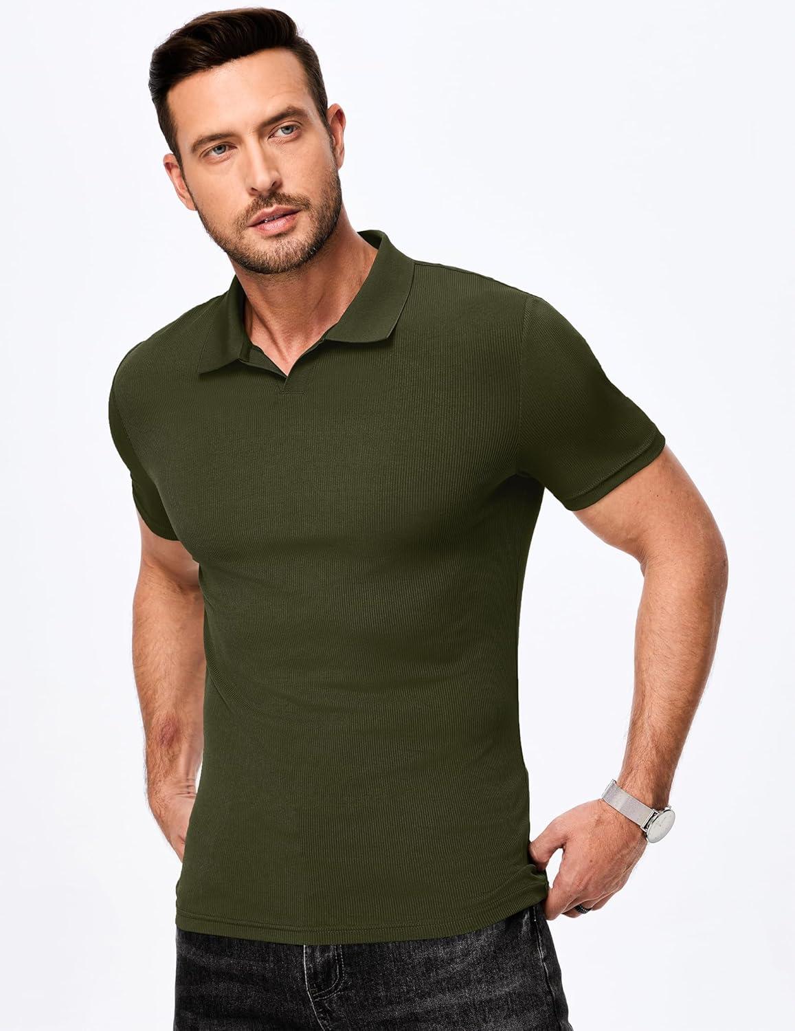 JMIERR Men’s Muscle V Neck Polo Shirts Casual Short Sleeve Slim Fit Ribbed Golf T Shirt Athletic Tee(Green)