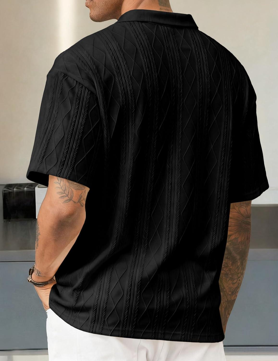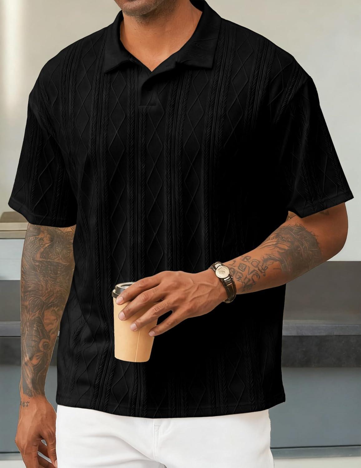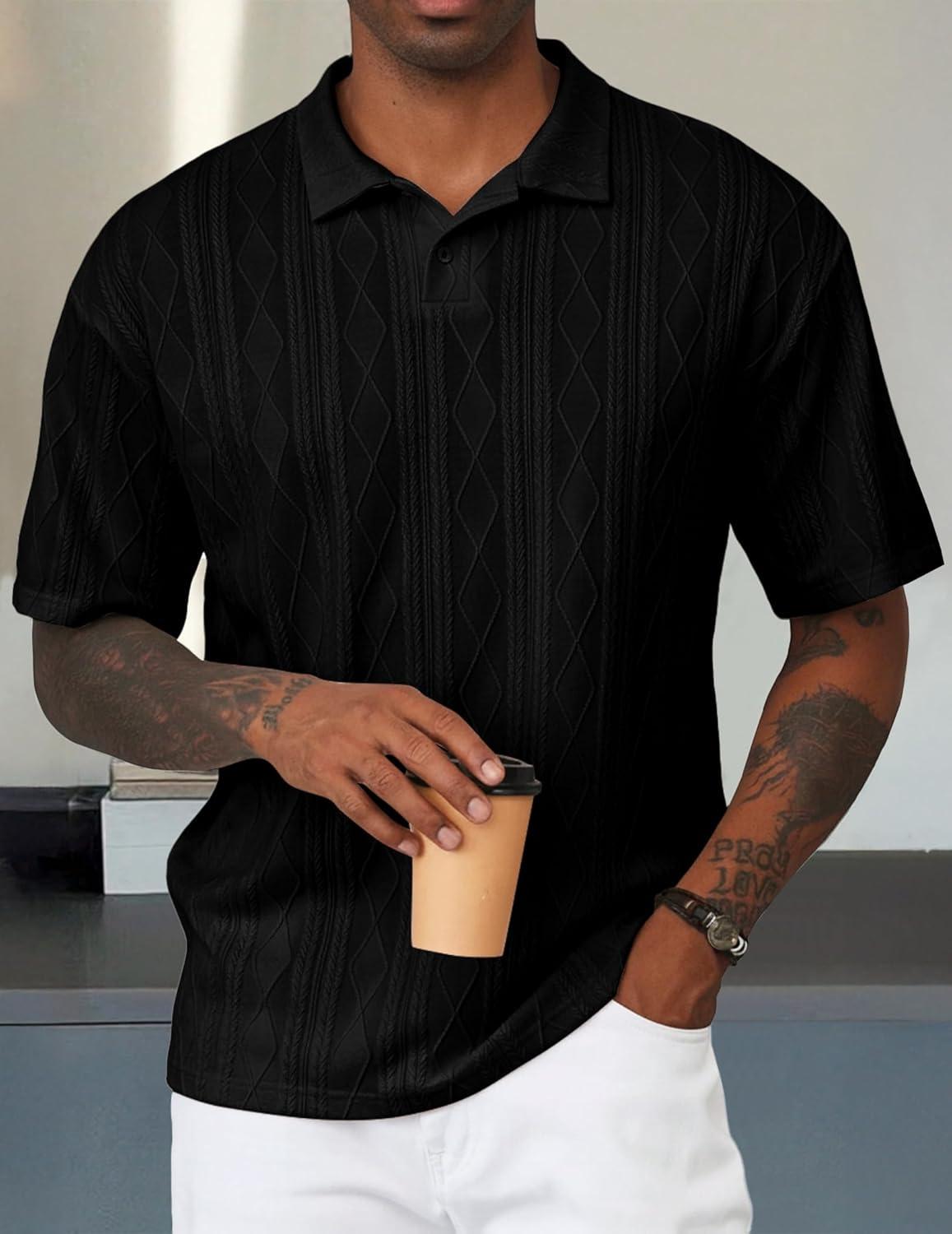 JMIERR Mens Polo Shirt Knit Button Casual Short Sleeve Summer Vacation Beach Stretchy Golf Shirts(Black)