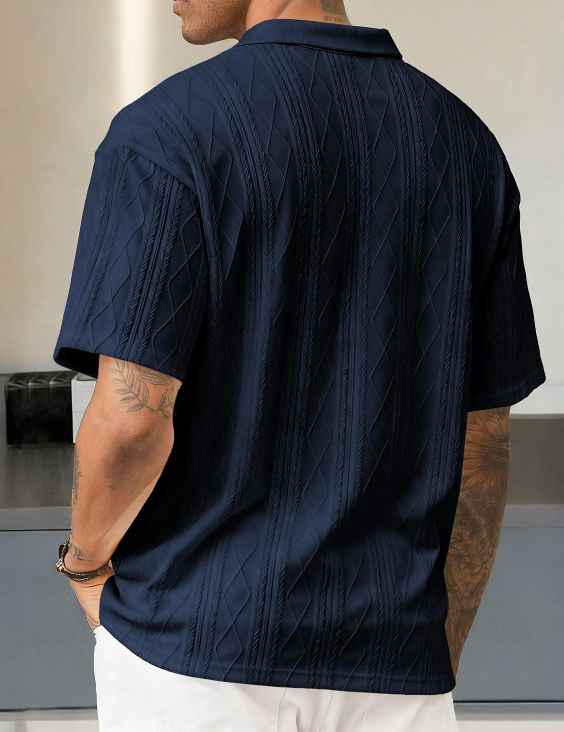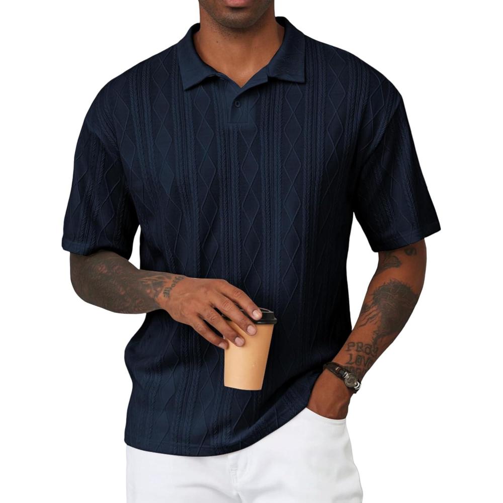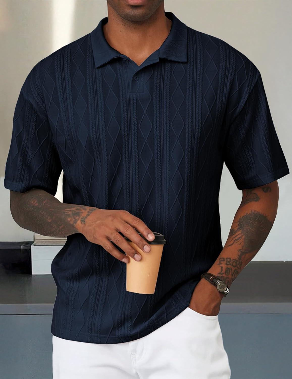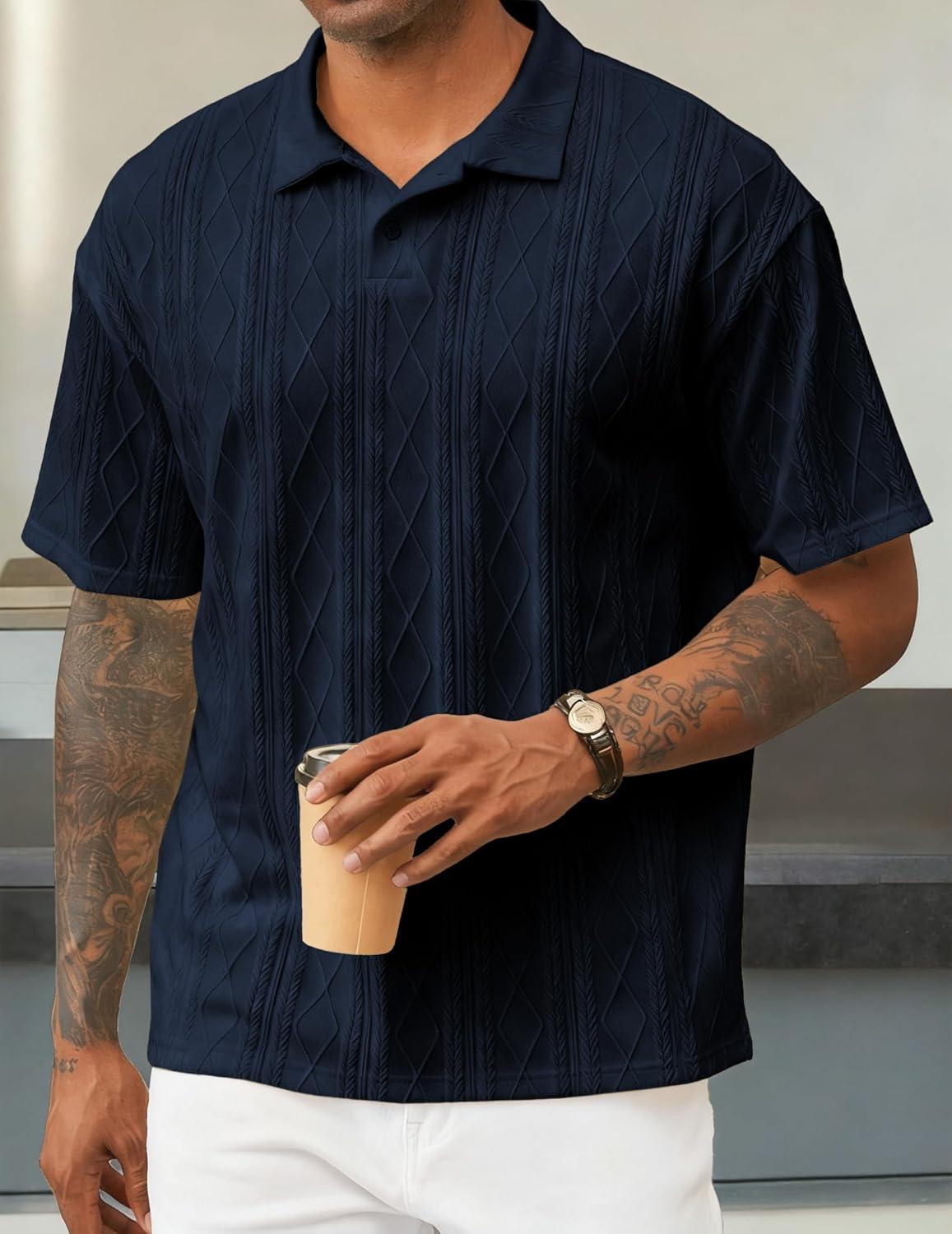 JMIERR Mens Polo Shirt Knit Button Casual Short Sleeve Summer Vacation Beach Stretchy Golf Shirts(Navy Blue)